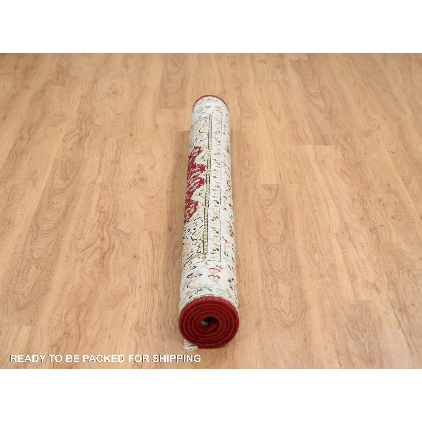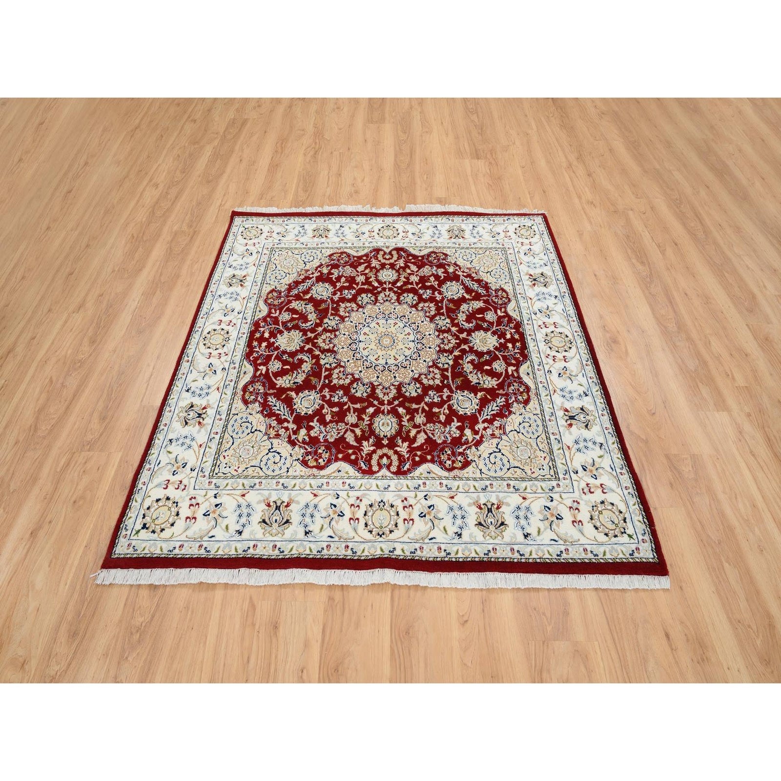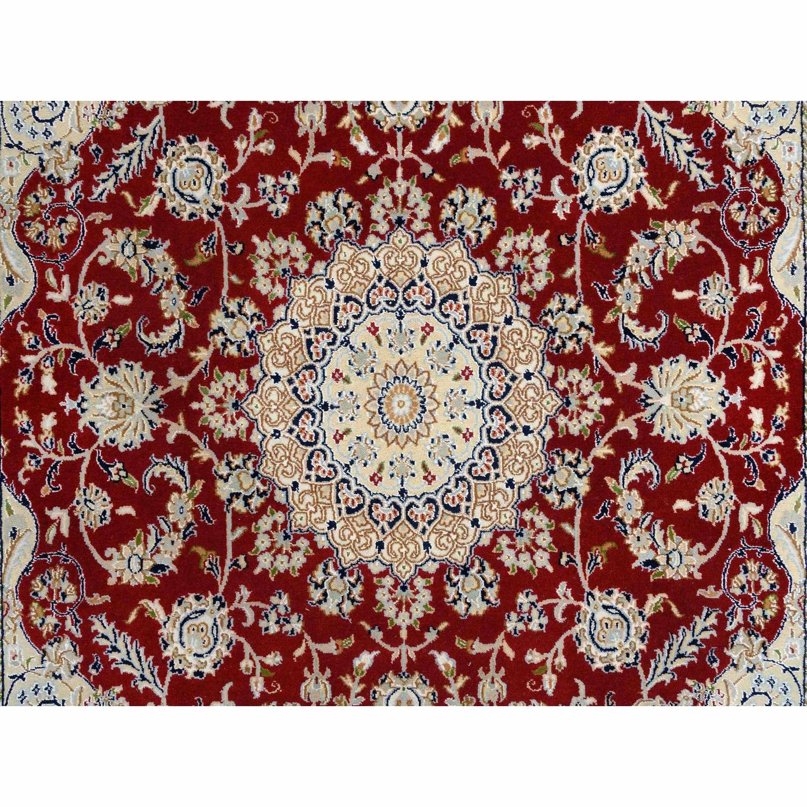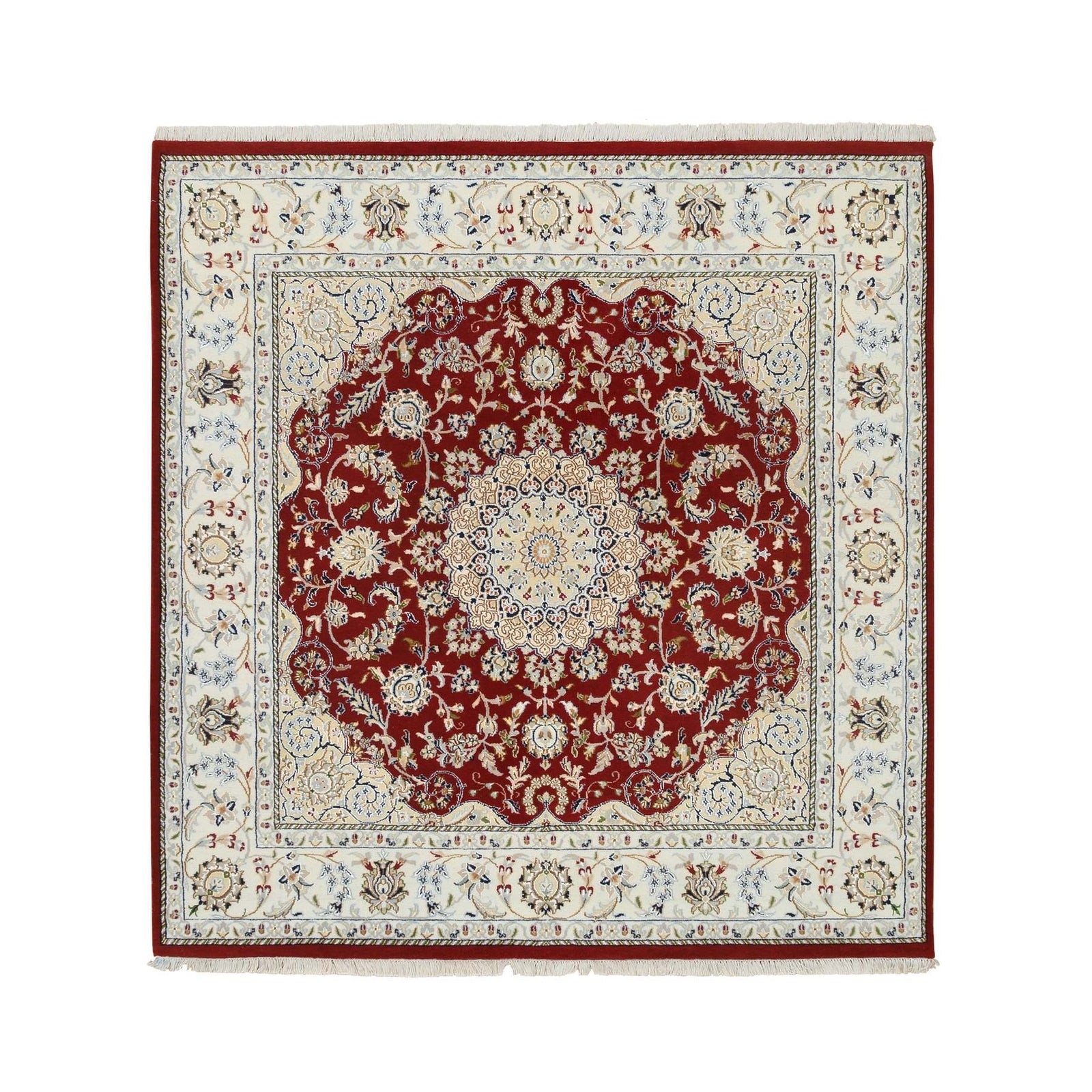6'X6' Red Nain Flower Design 250 Kpsi Pure Wool Hand Knotted Square Rug