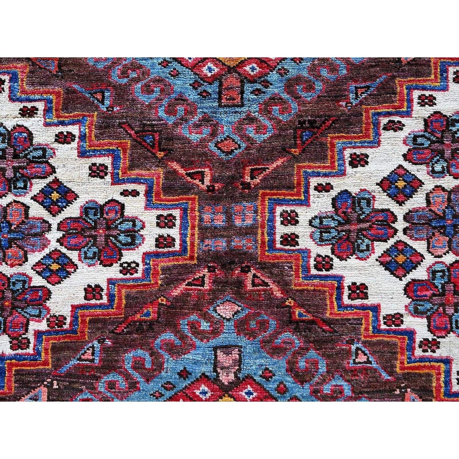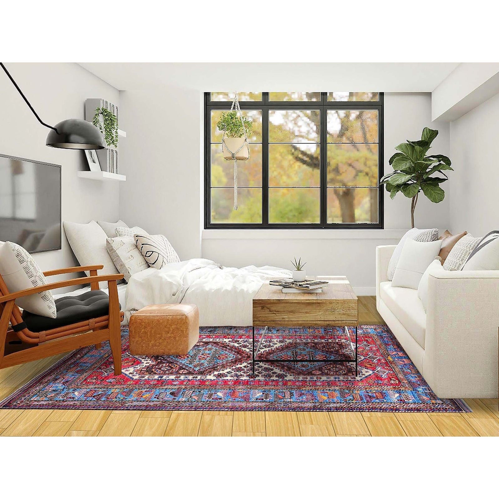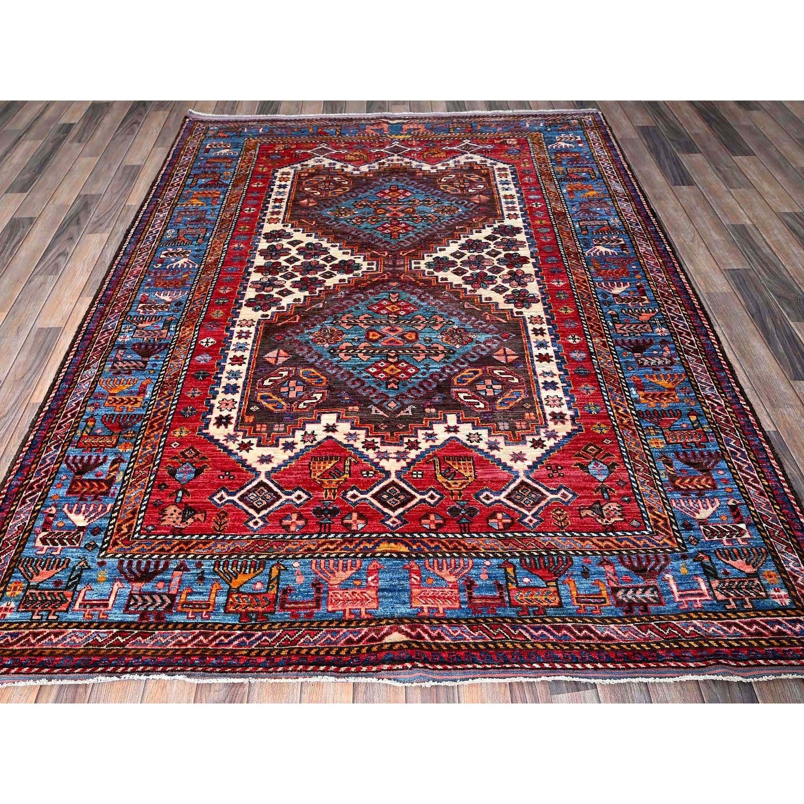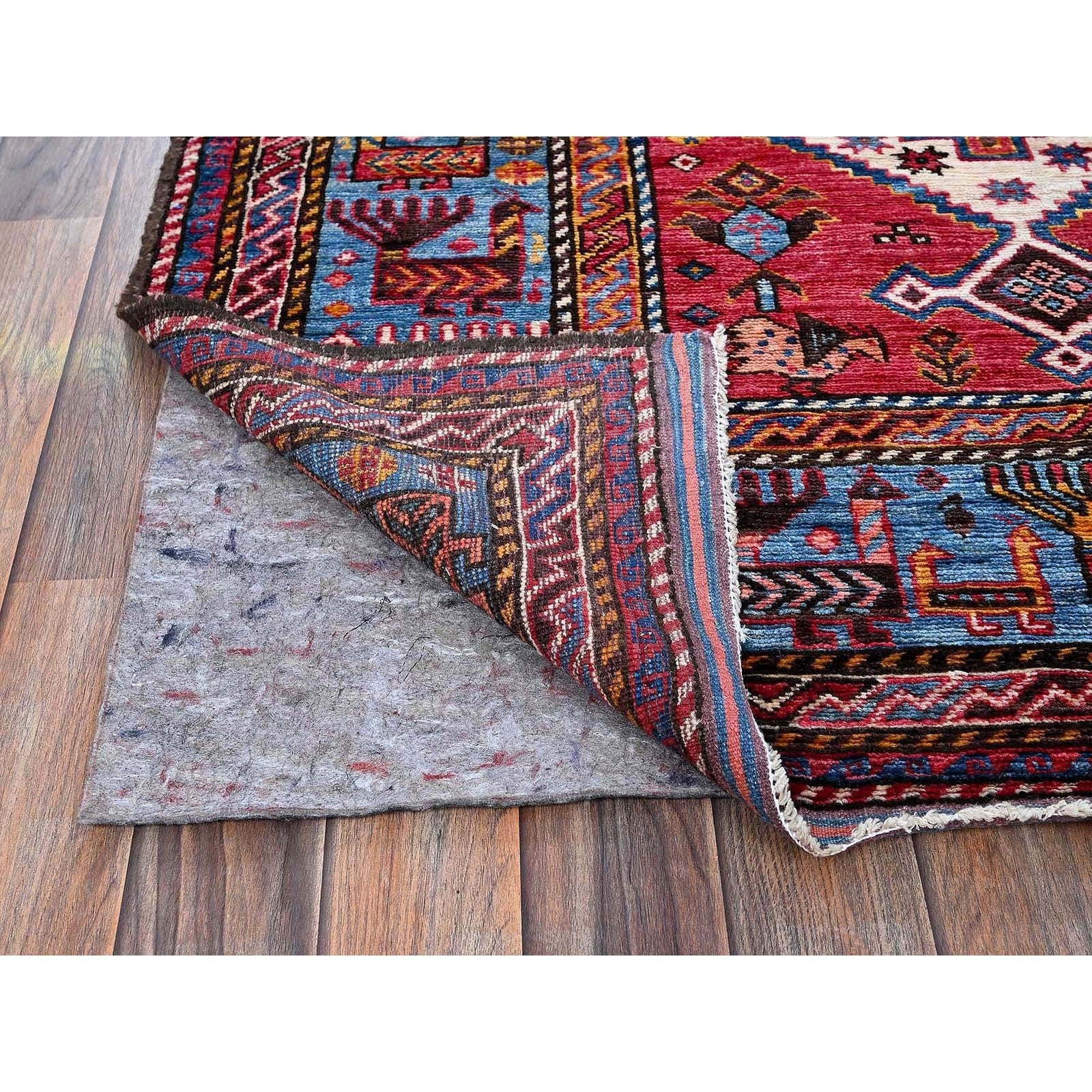 6'X7'8" Ivory Afghan Caucasian Design Revival Soft Wool Hand Knotted Rug