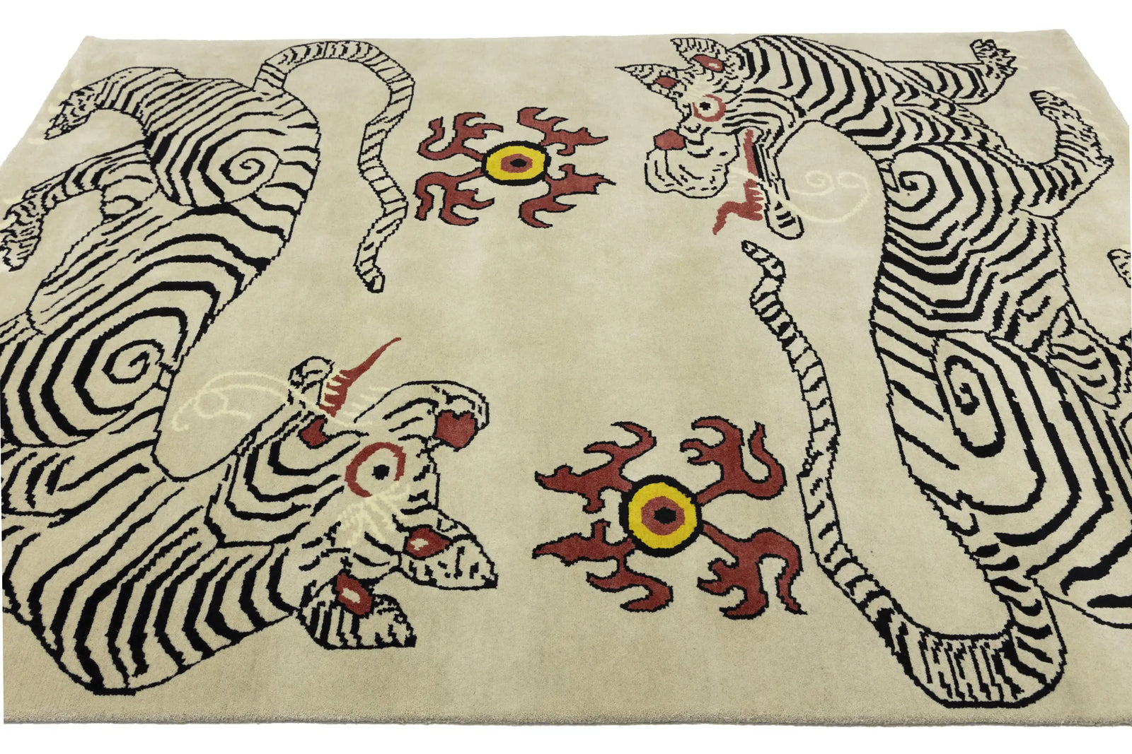 6X8 ft Nepali Oriental Rug Tribal Tiger Style