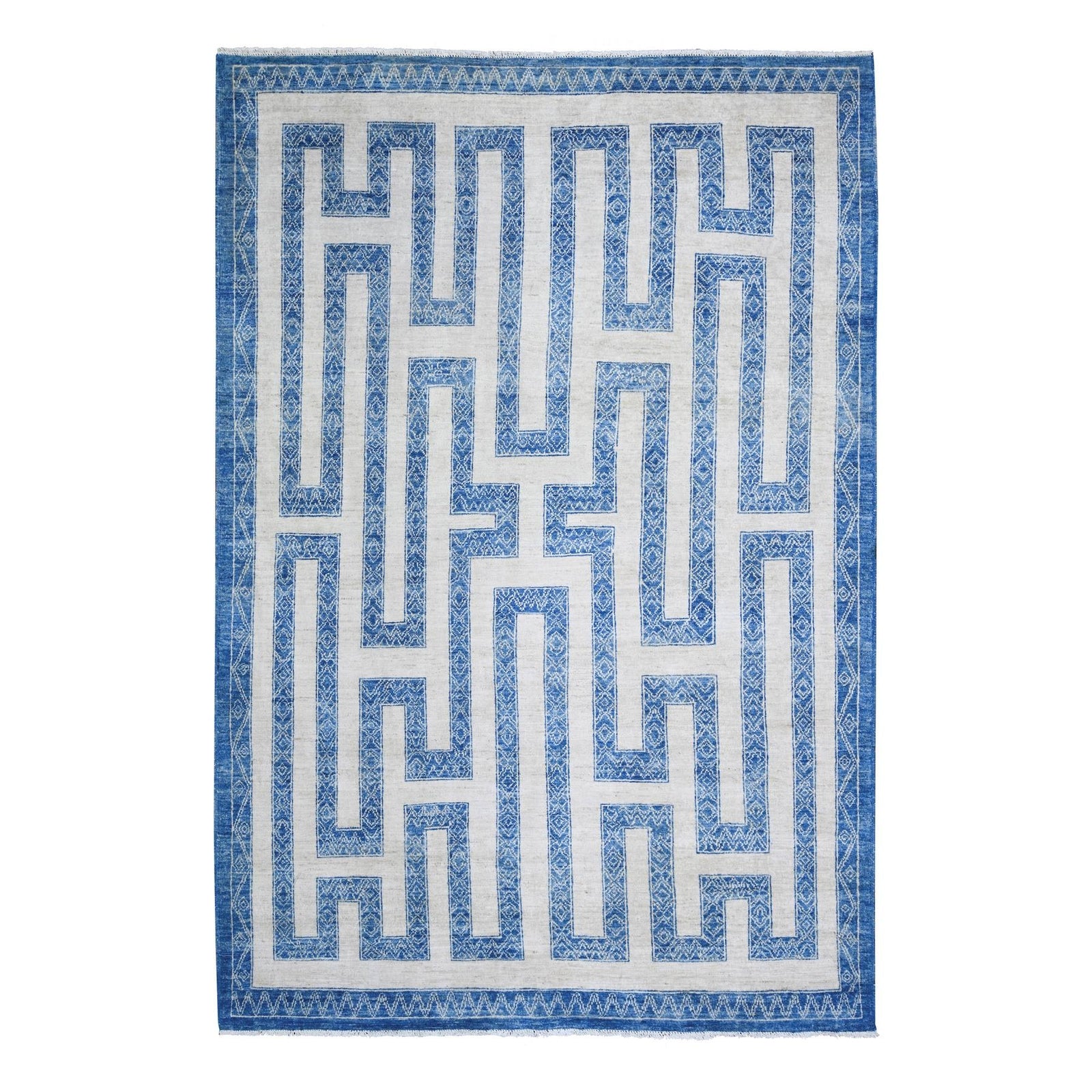 6'X8'7" Denim Blue Wool Hand Knotted Finer Peshawar Oriental Rug