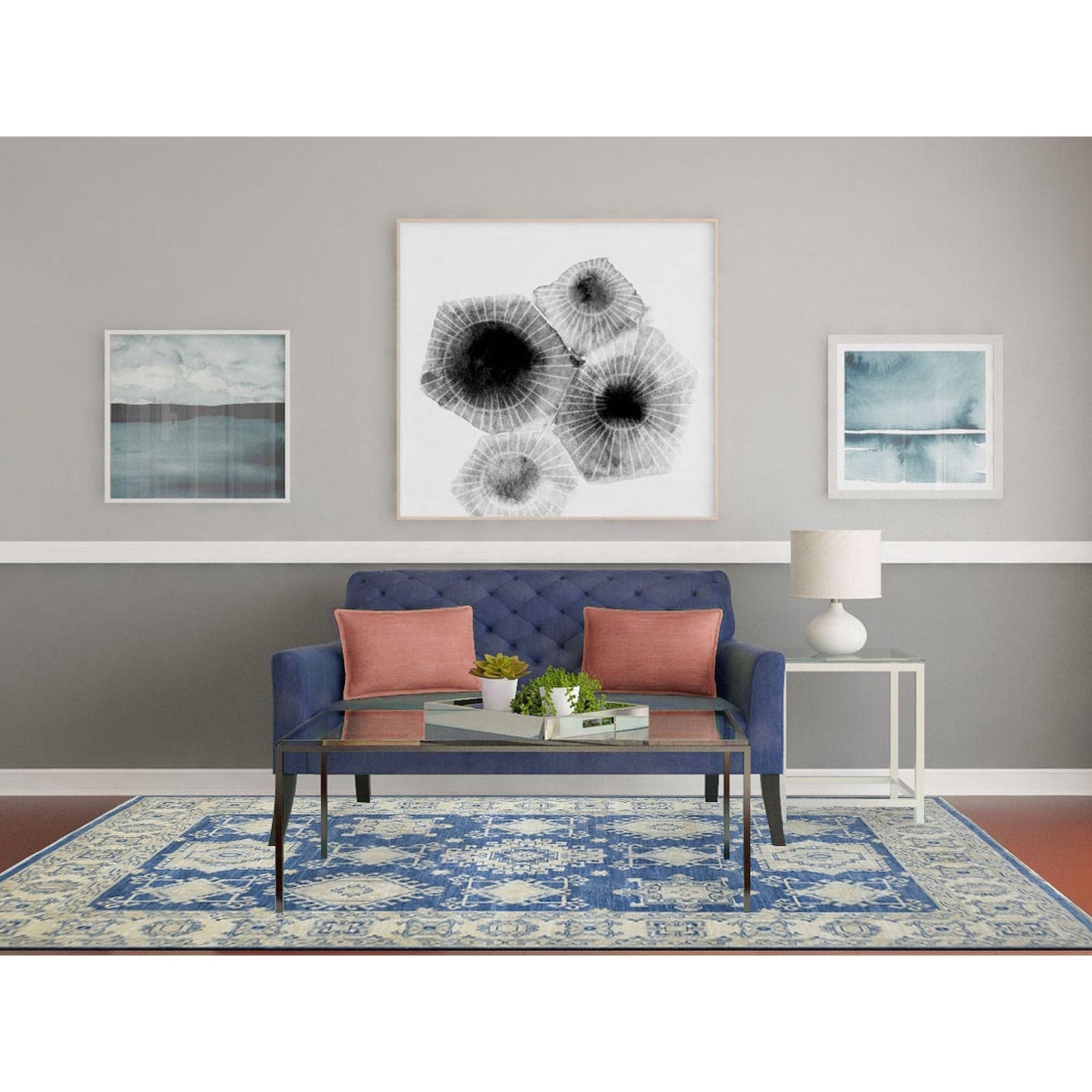 6'X8'8" Denim Blue Organic Wool Hand Knotted Fine Peshawar Oriental Rug