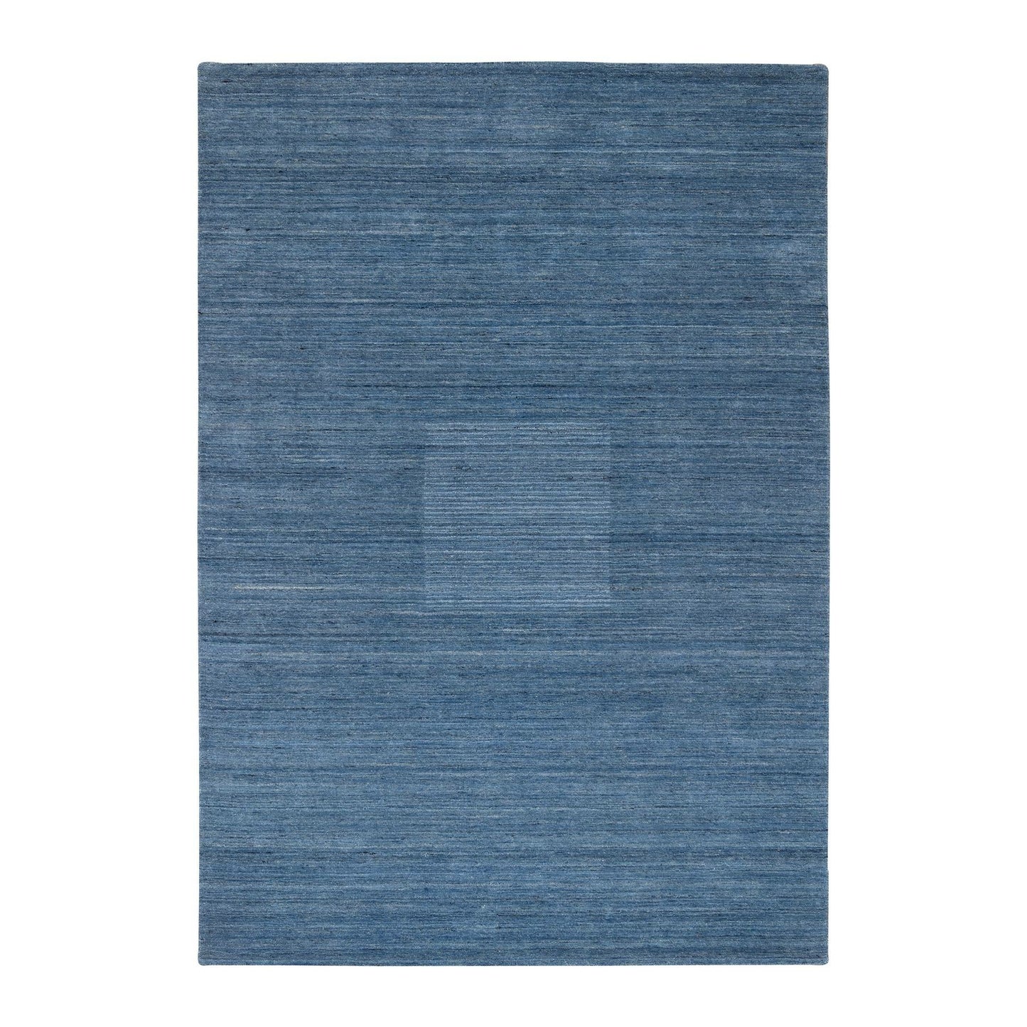 6'X9' Denim Blue Pure Wool Hand Loomed Modern Design Oriental Rug