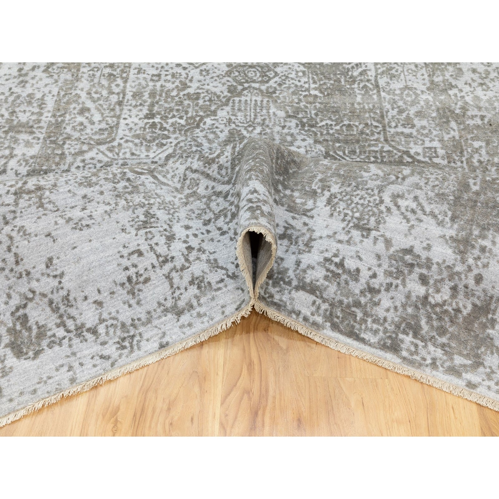 6'X9' Grey Broken Farsian Design Wool And Silk Hand Knotted Oriental Rug