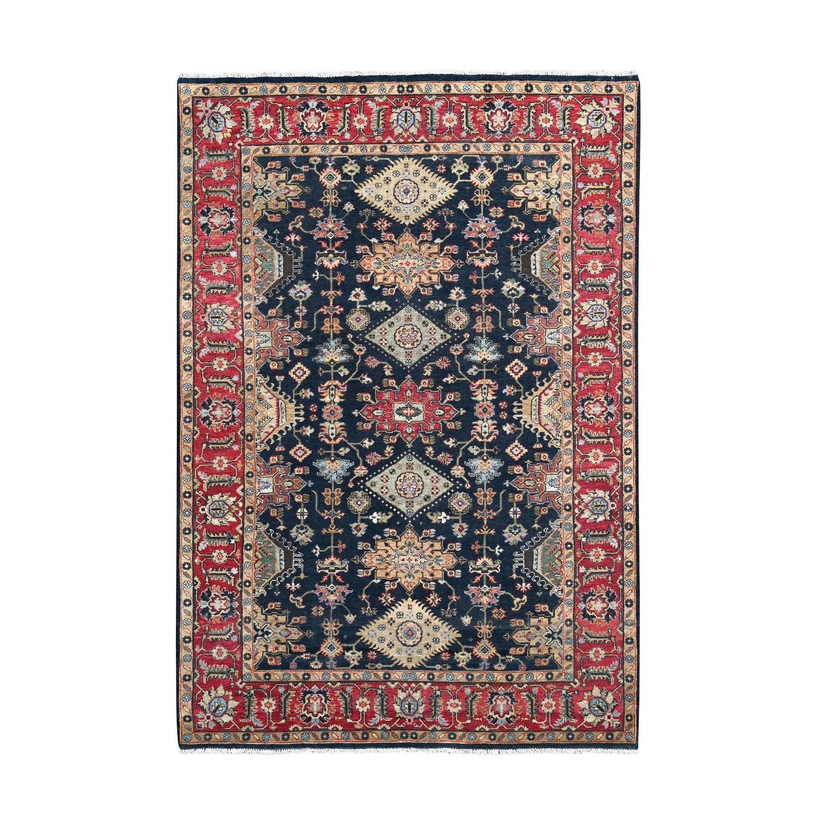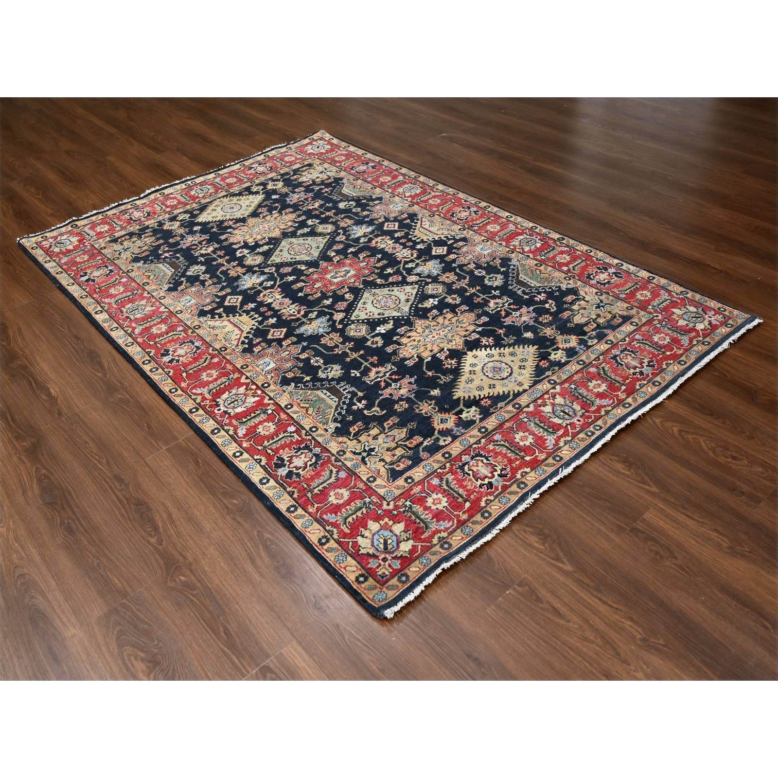 6'X9' Retro Black Hand Knotted Karjihooz Design Natural Wool Oriental Rug
