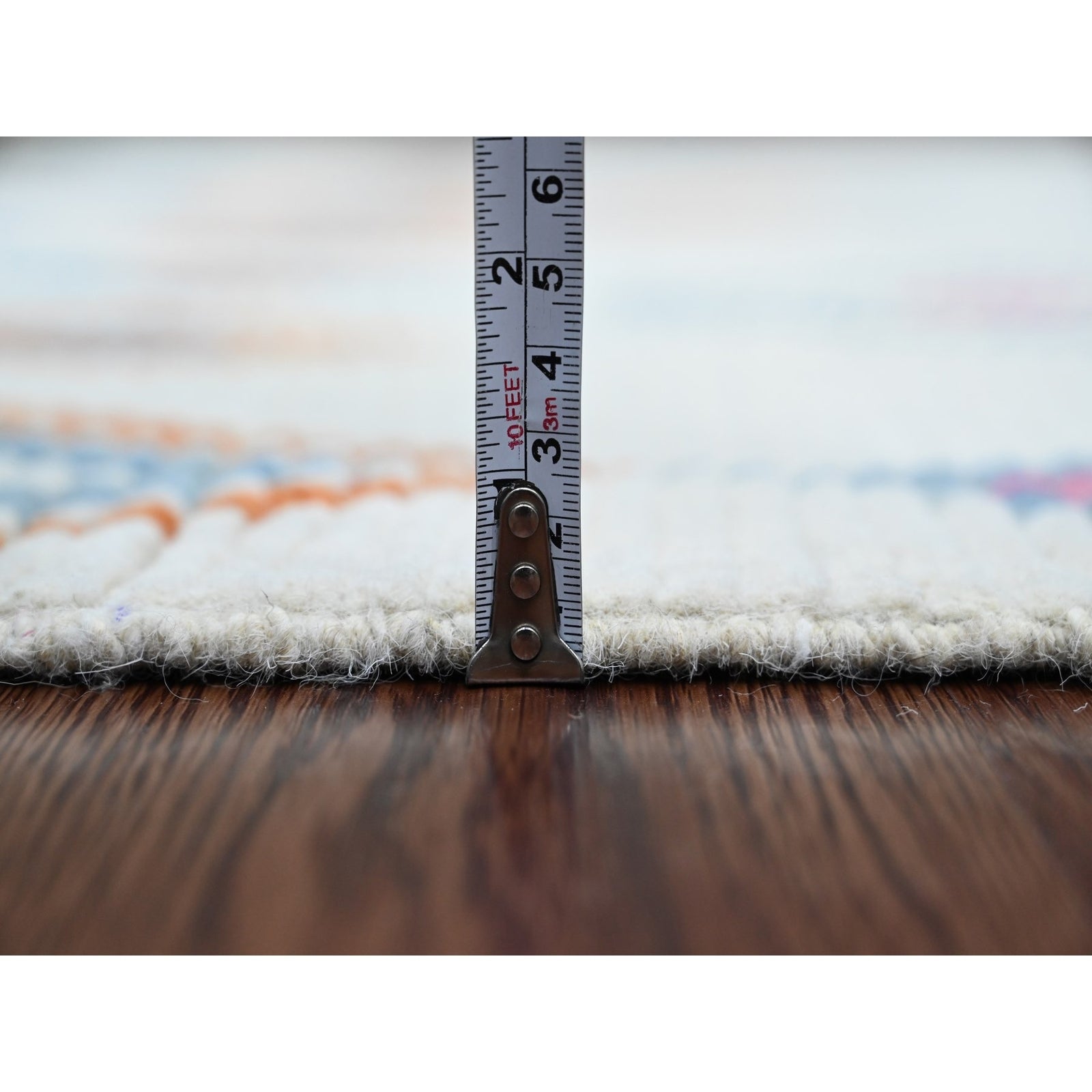 6'X9'3" White Moroccan Weave Geometric Pattern Hand Knotted Soft Wool Rug