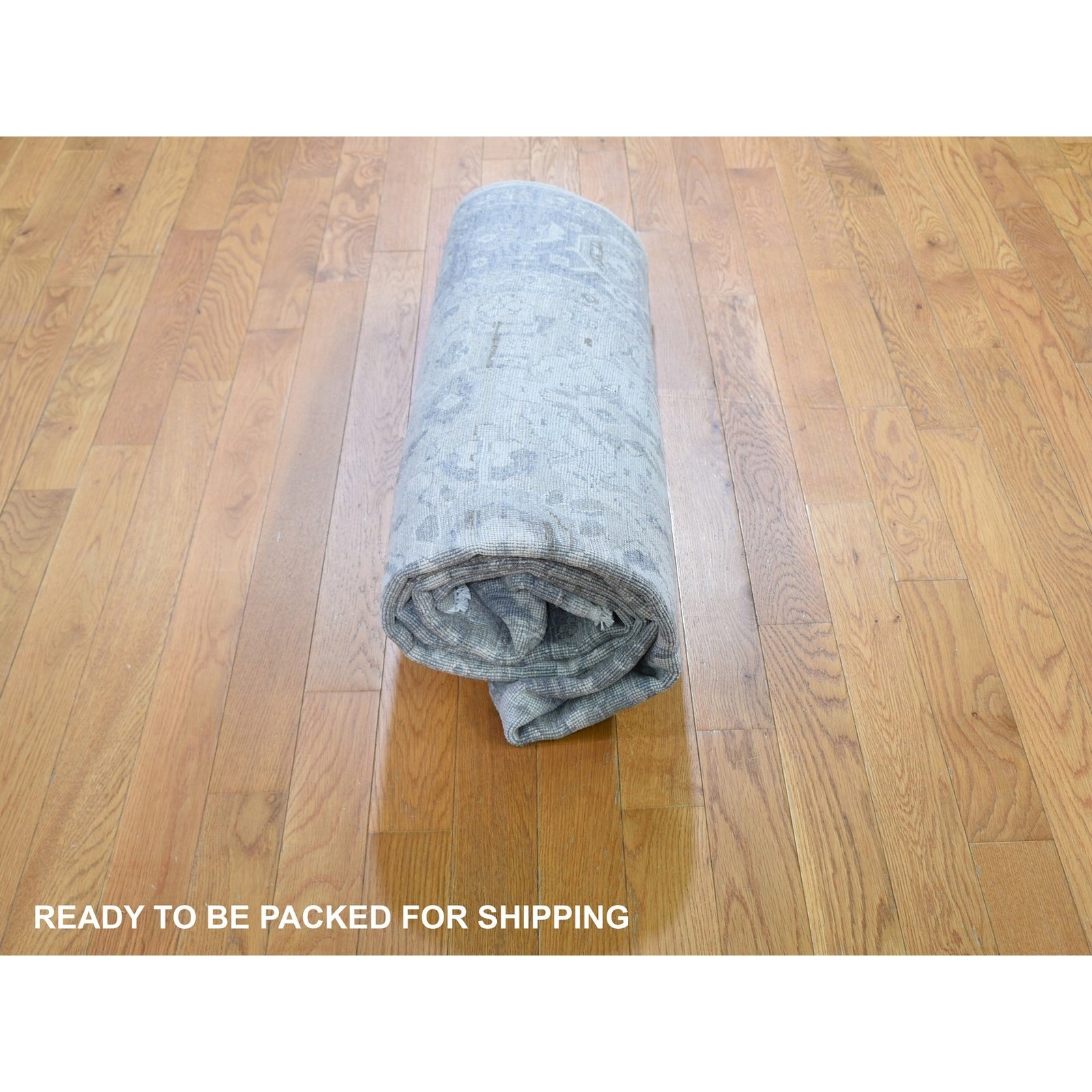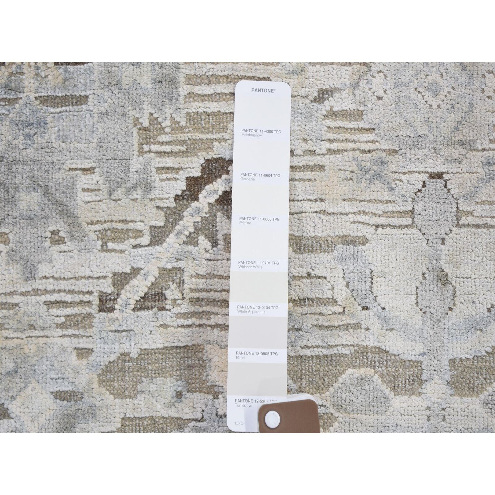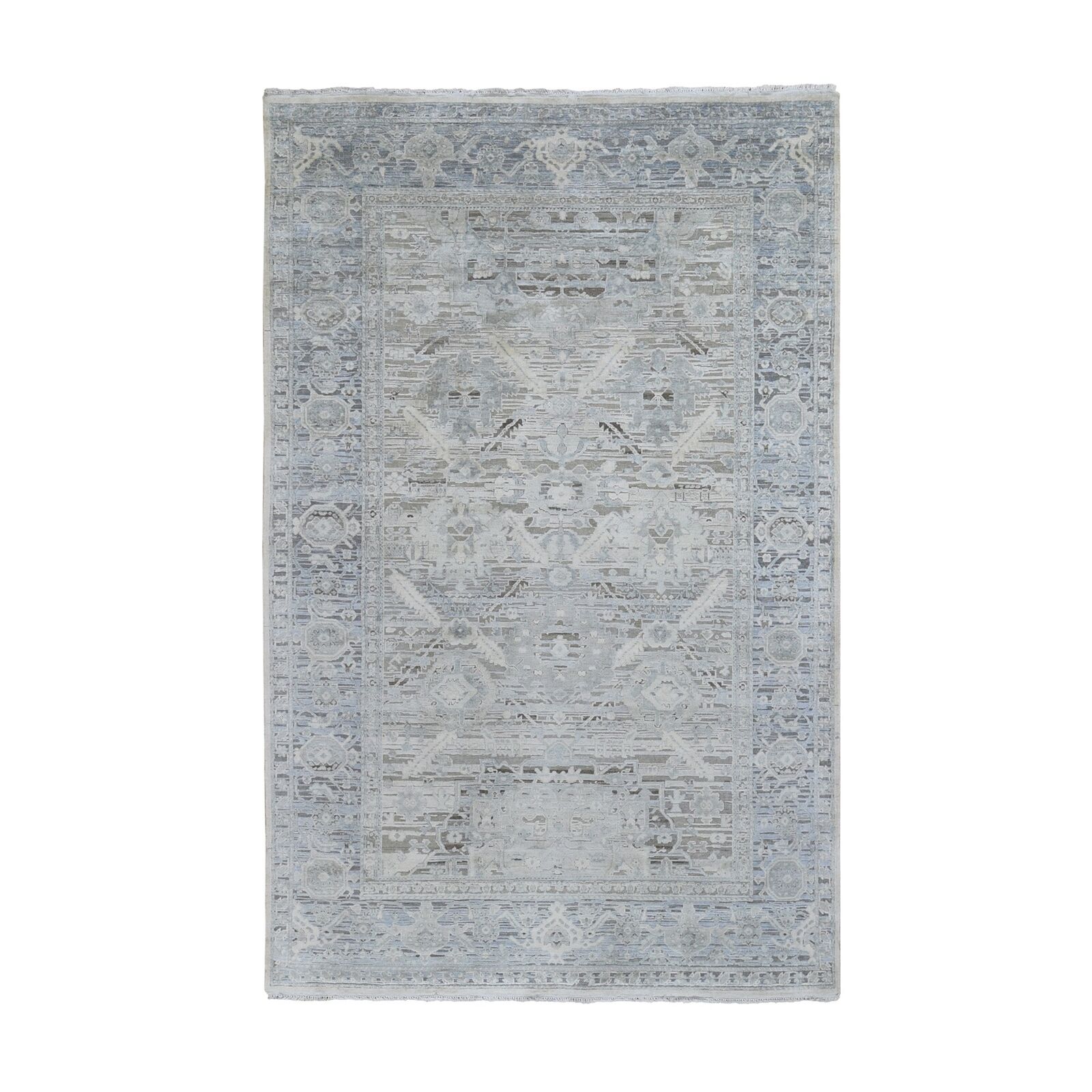 6'X9'5" Gray Pure Silk & Textured Wool Oushak Geometric Motif Rug
