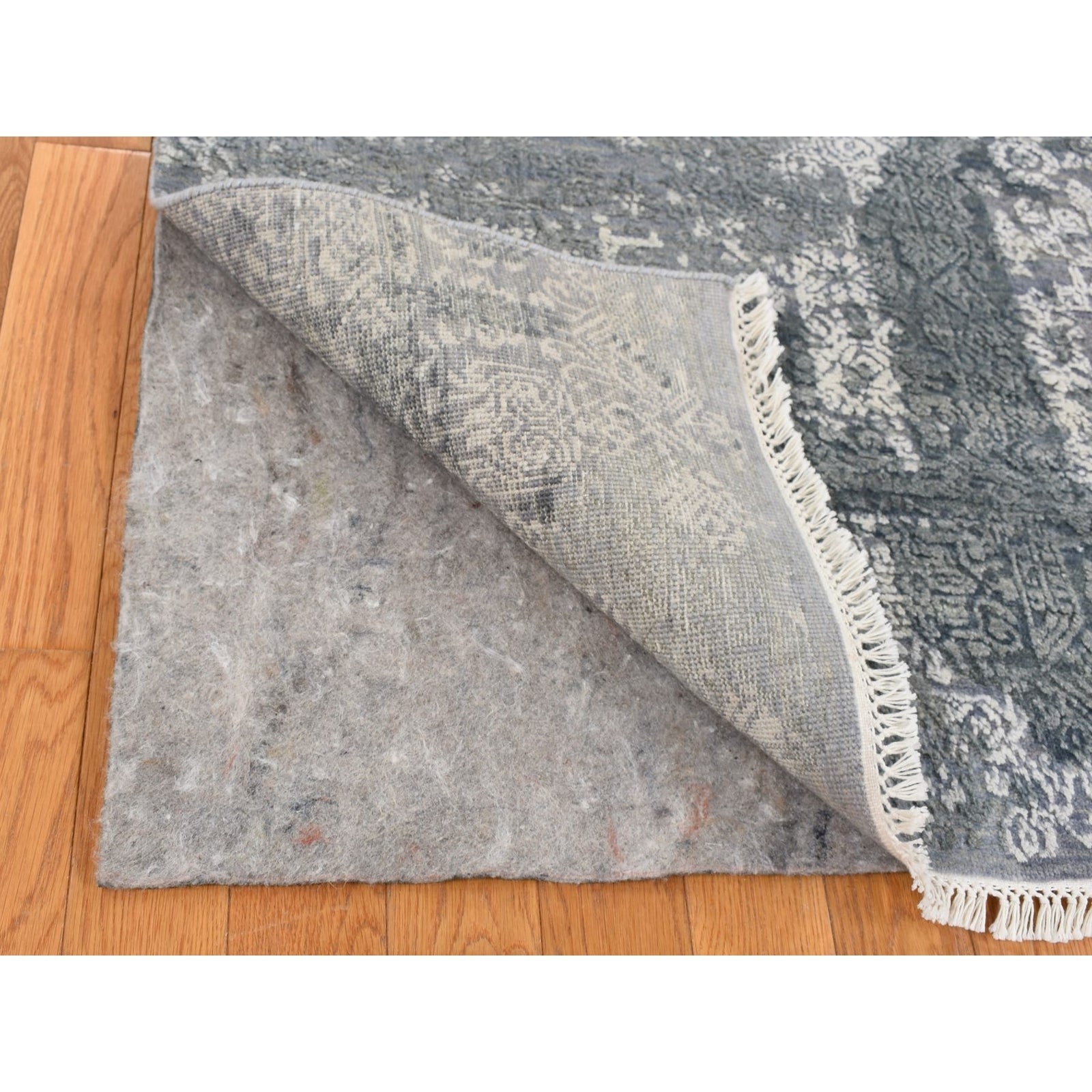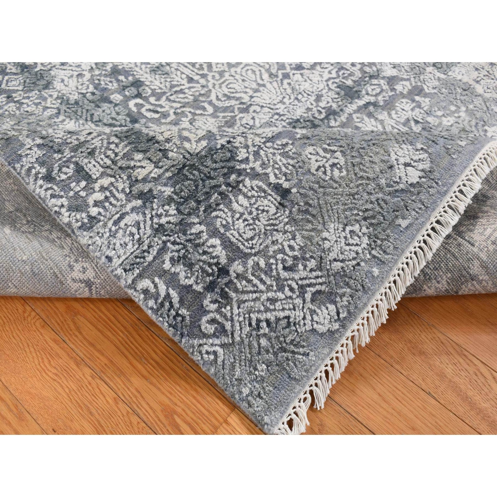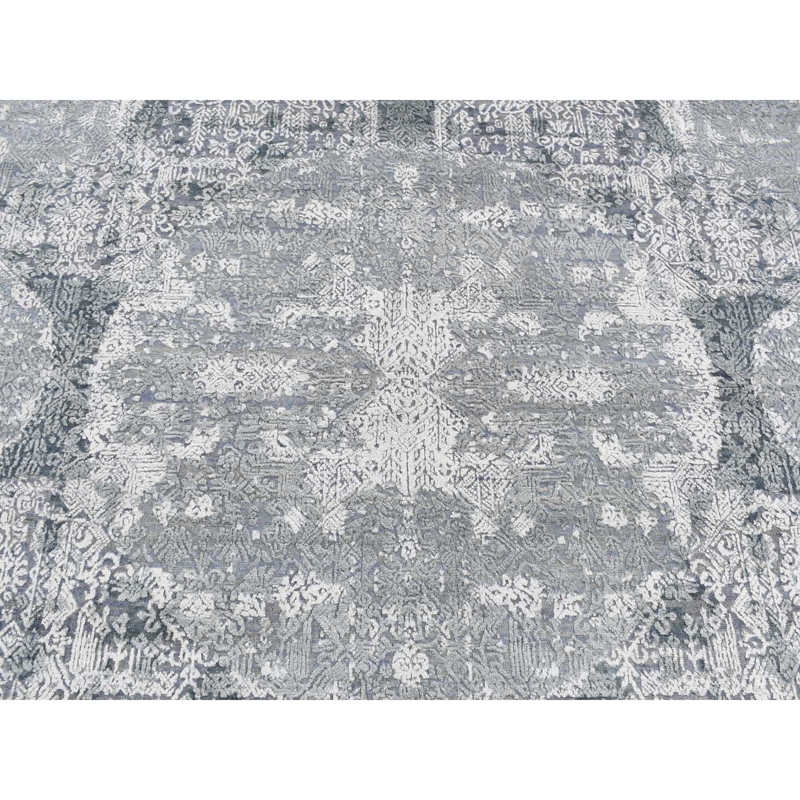 7'10"X10' Cloud Gray Wool And Pure Silk Jewellery Design Hand Knotted Rug