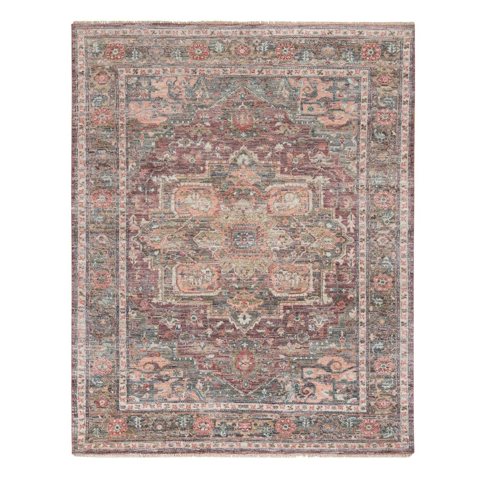 7'10"X10' Rosewood Red Hand Knotted Heris Revival Soft Wool Oriental Rug