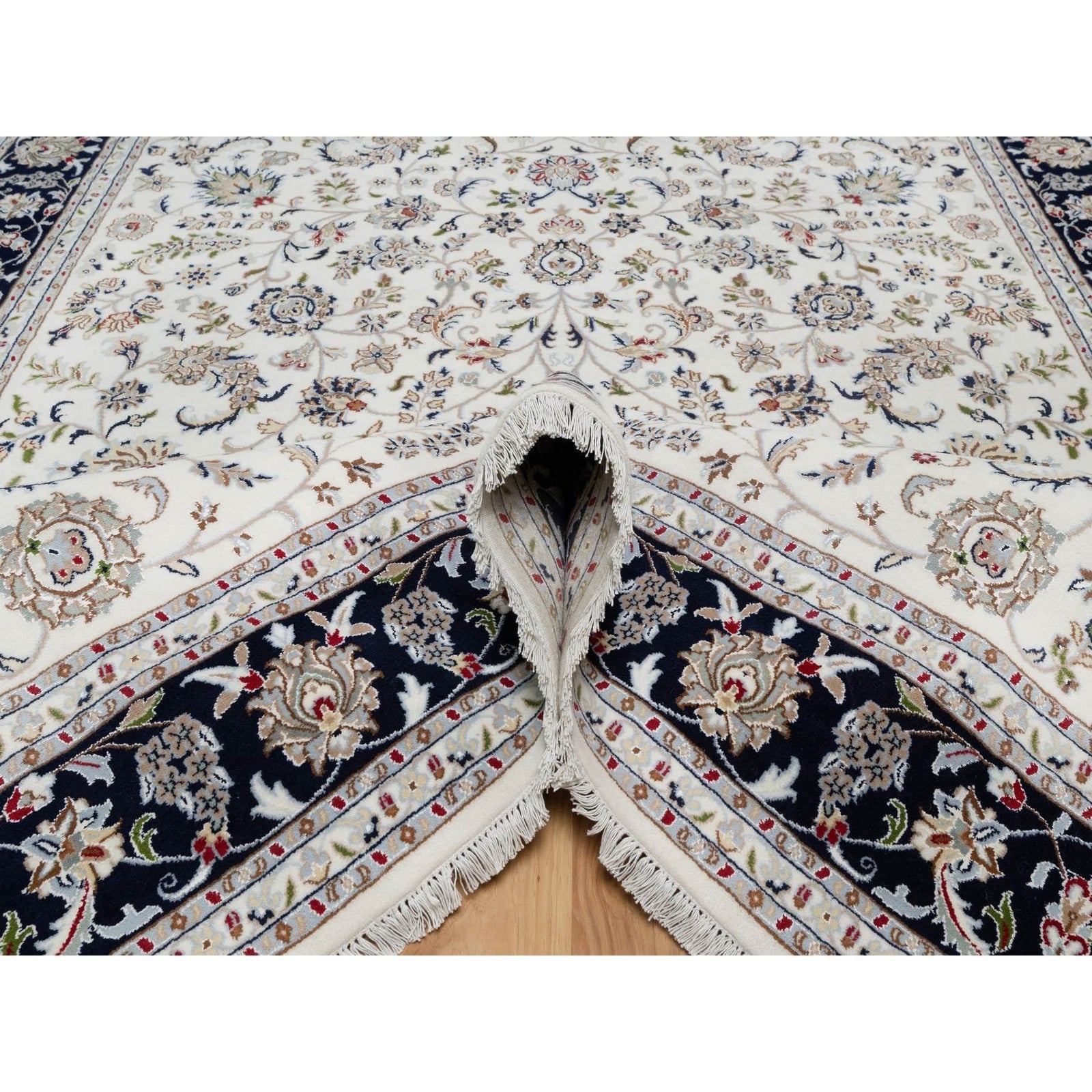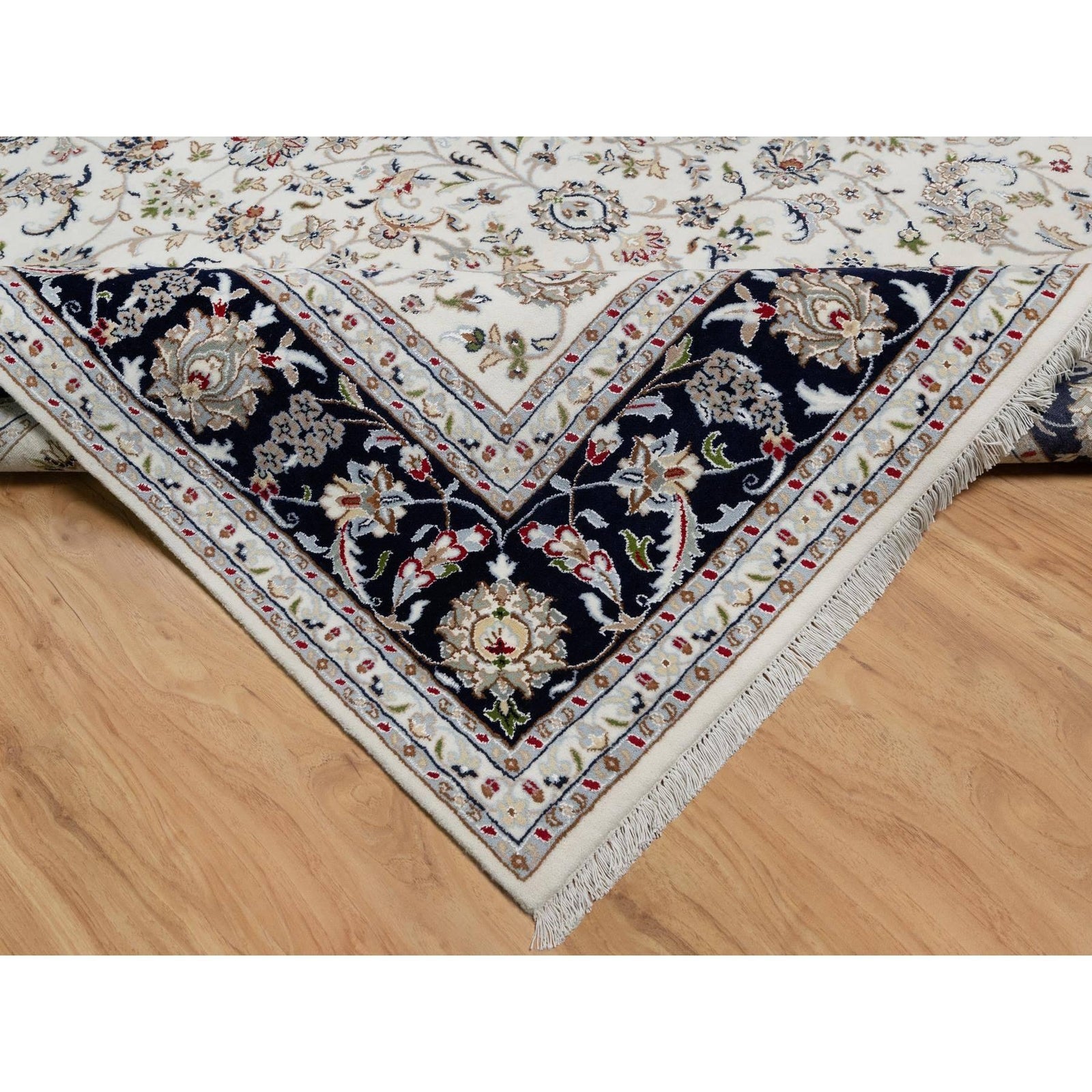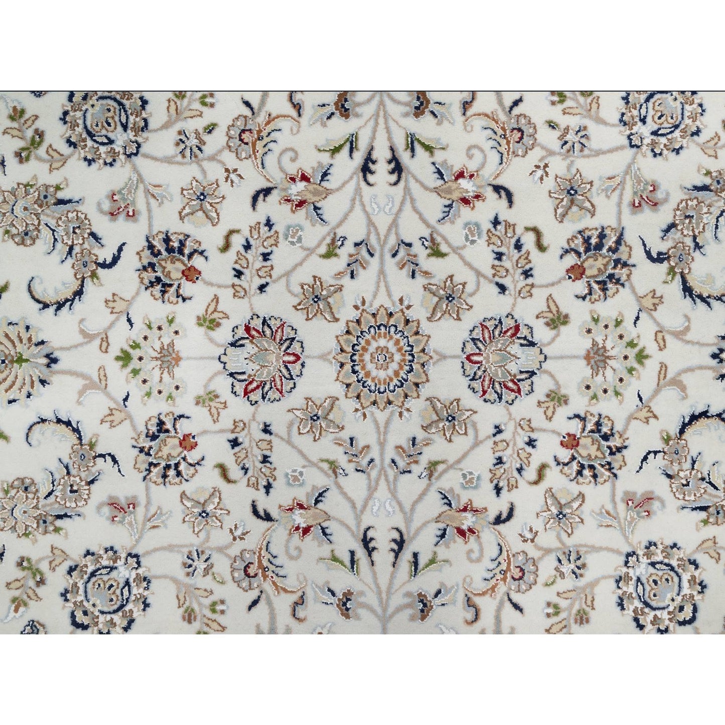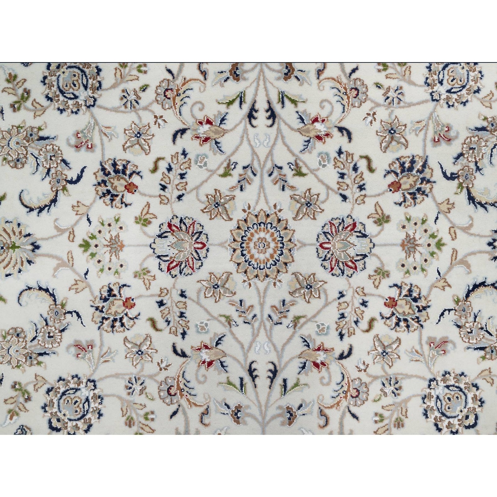 7'10"X10' White Hand Knotted Nain With Flower Design Wool And Silk Rug