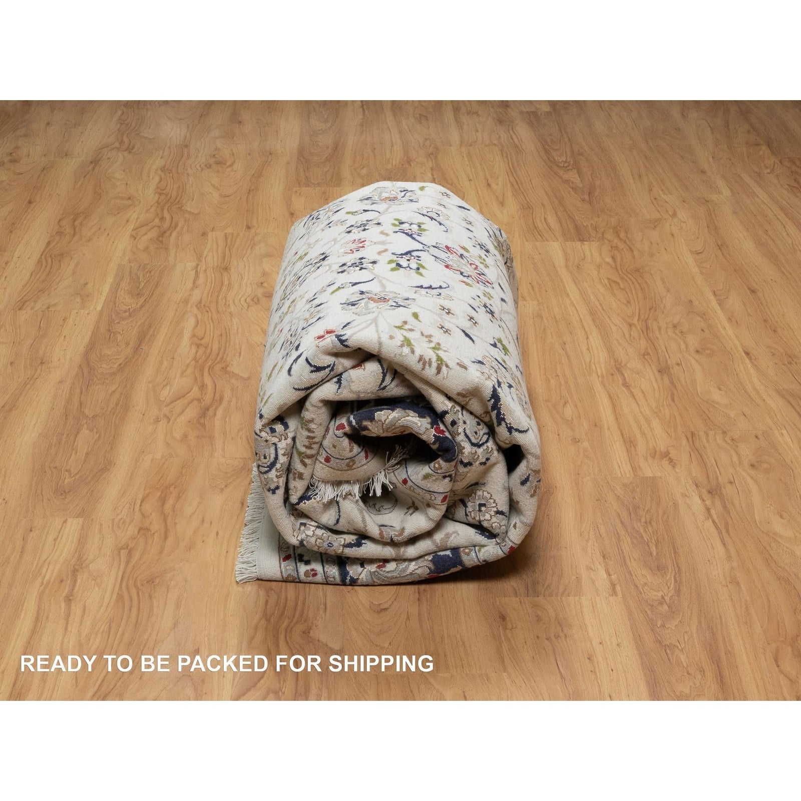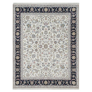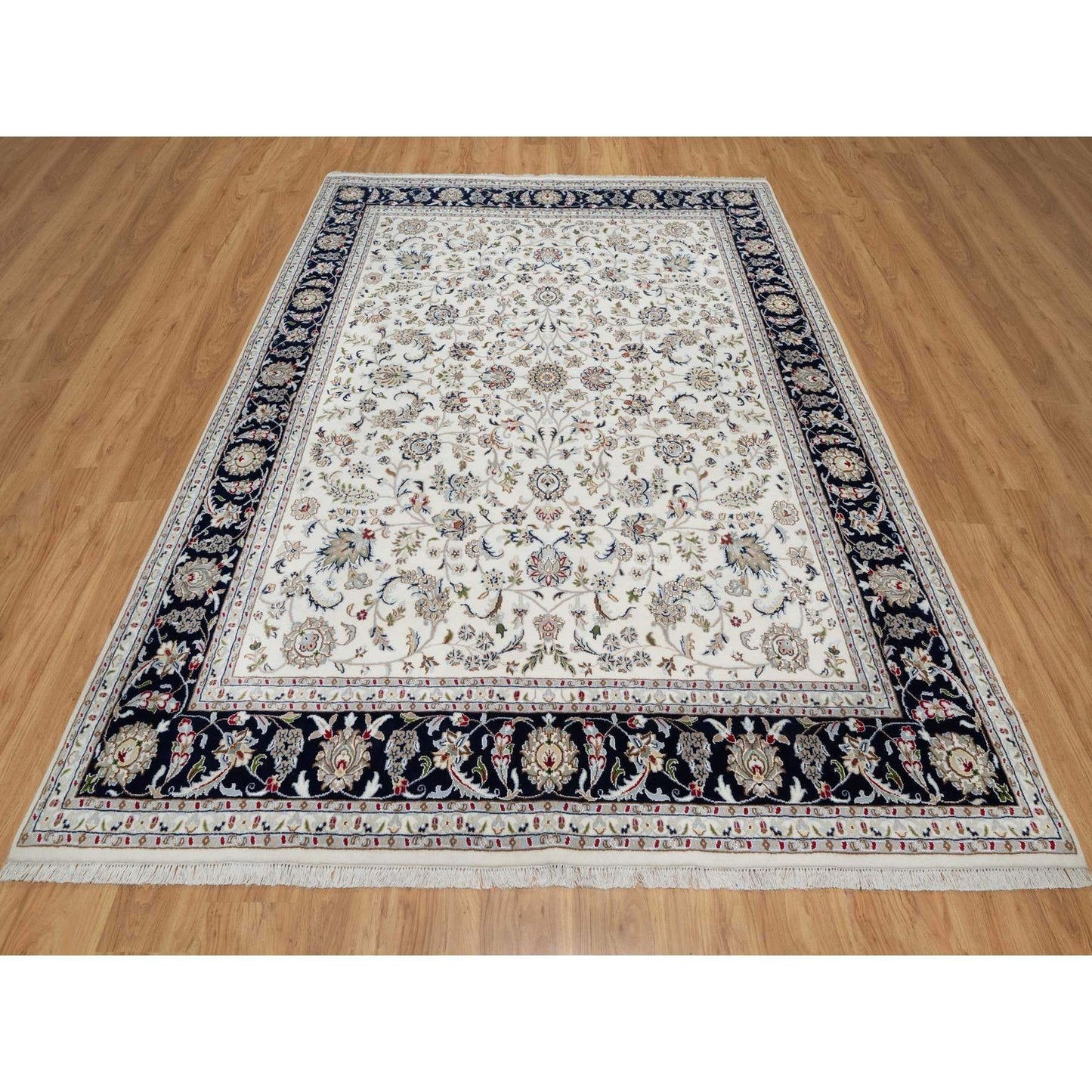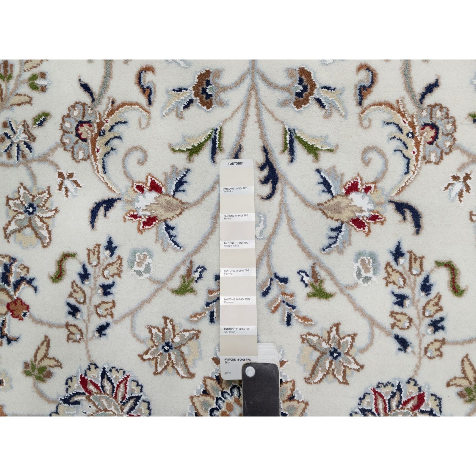 7'10"X10' White Hand Knotted Nain With Flower Design Wool And Silk Rug