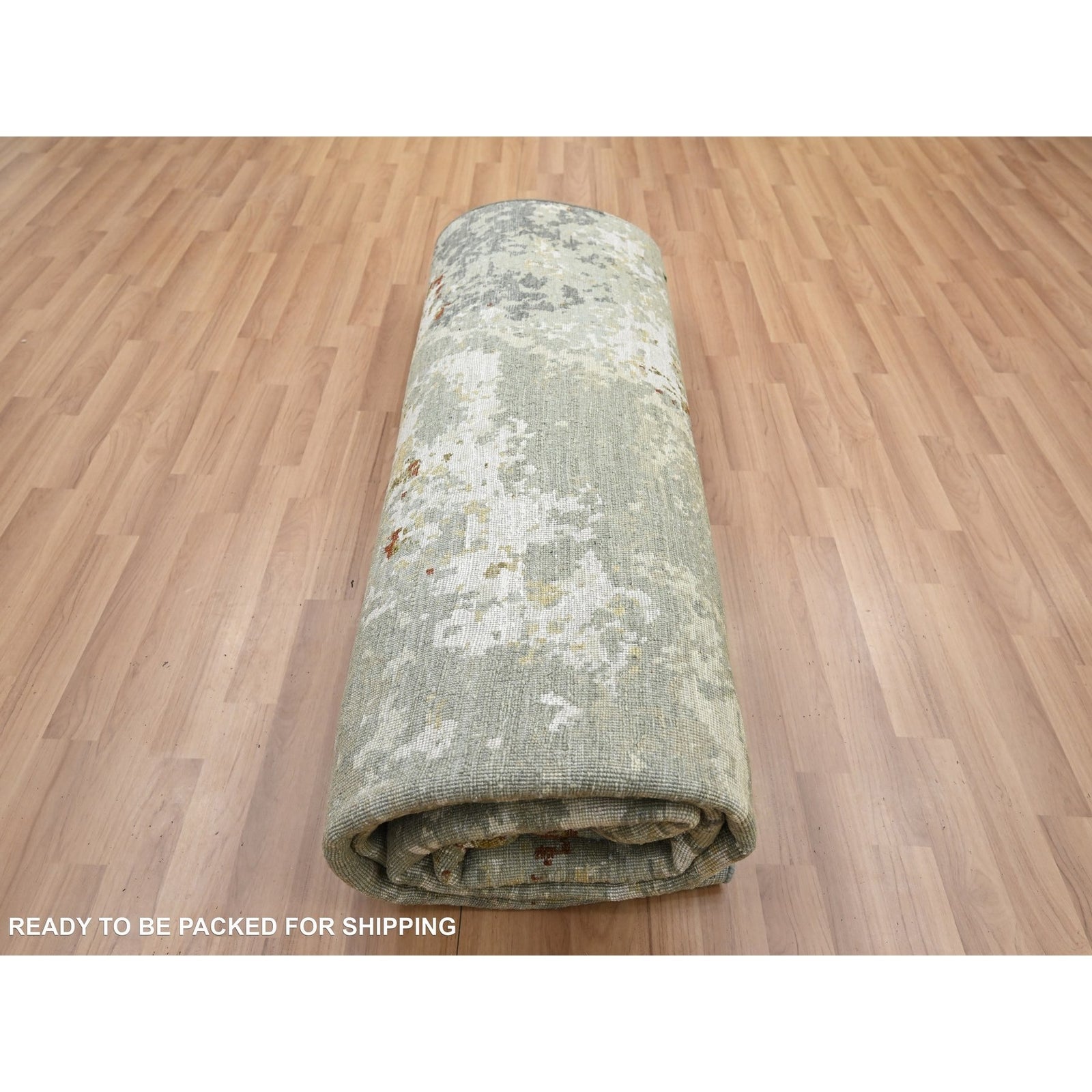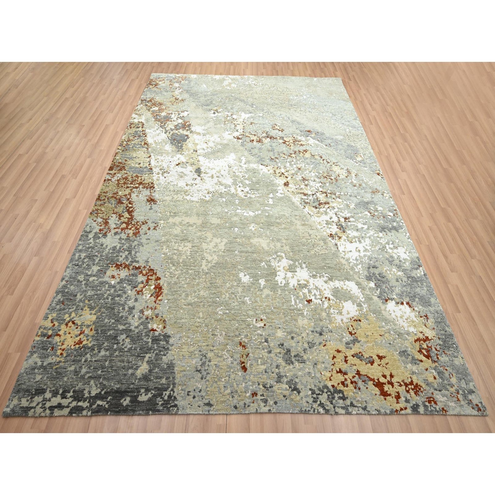 7'10"X10'1" Gray Abstract Design Pure Wool Hand Knotted Oriental Rug