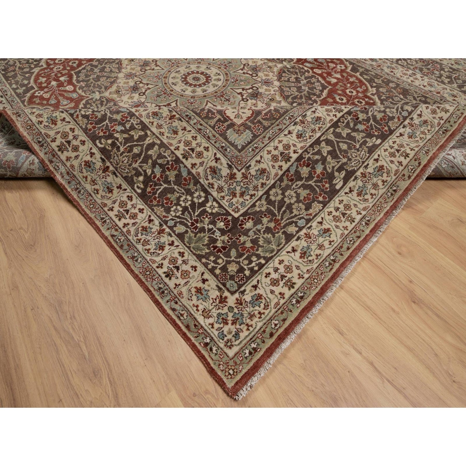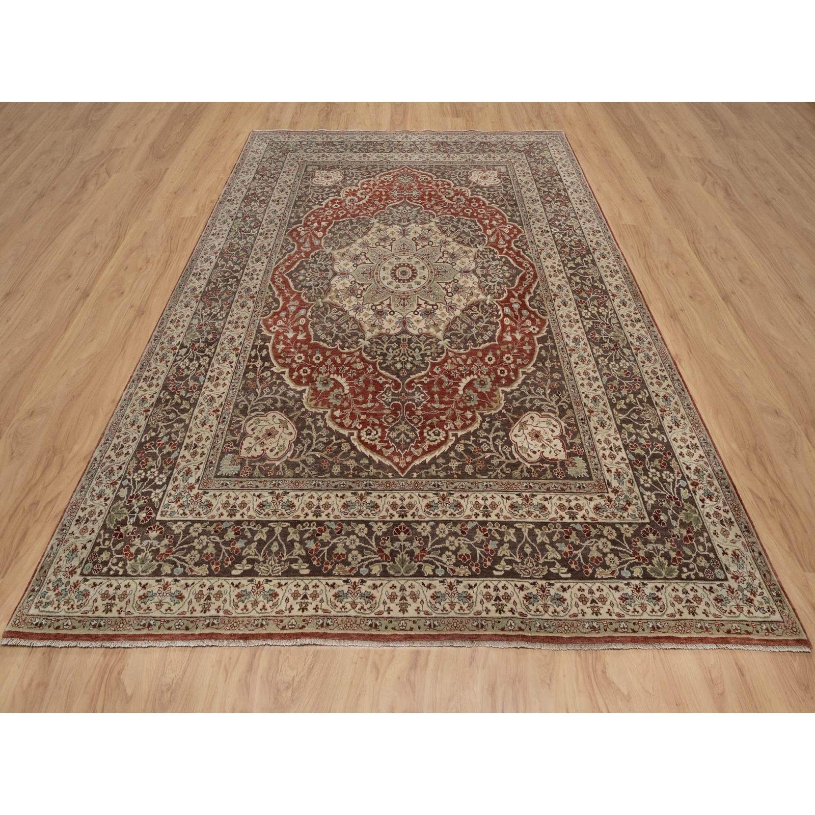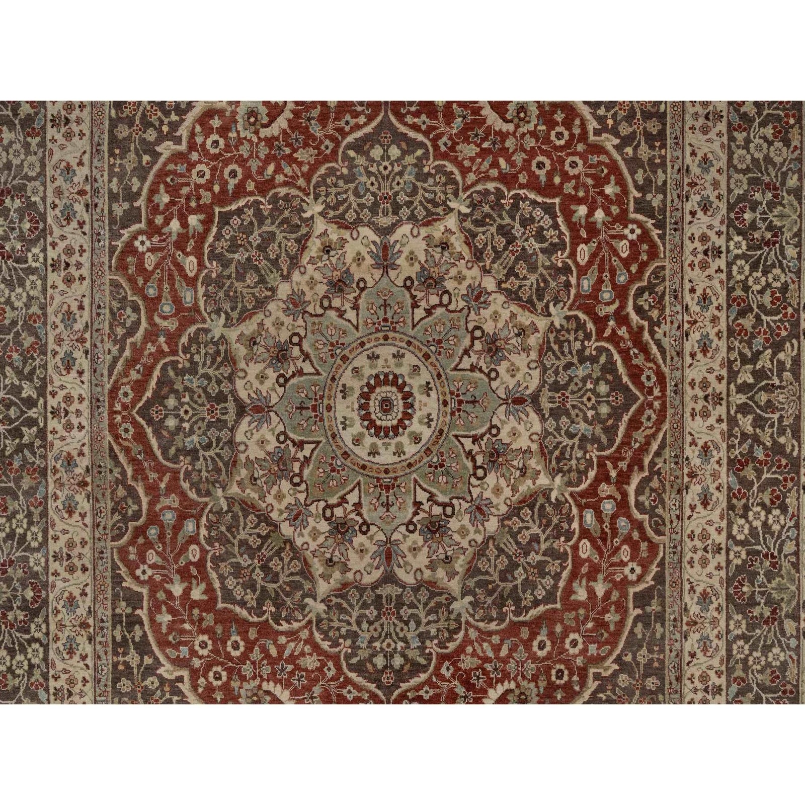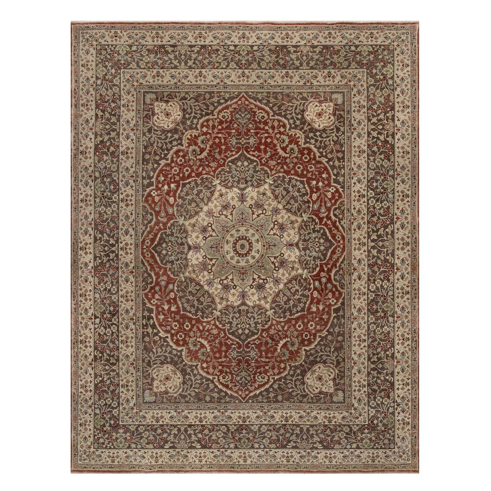 7'10"X10'1" Red Antiqued Fine Heris Re-Creation Hand Knotted Wool Rug