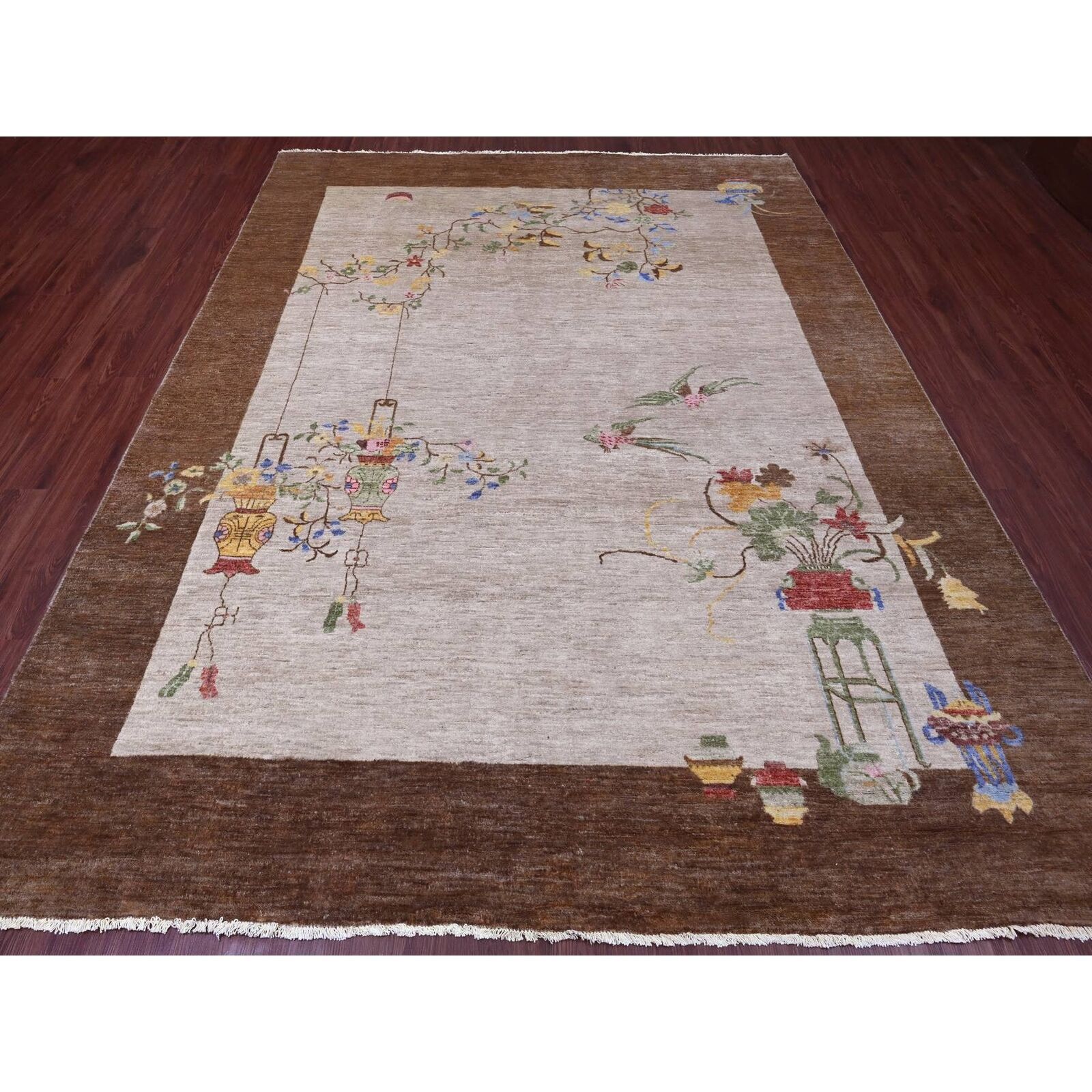 7'10"X10'1" White Chinese Art Deco Inspire Peshawar Hand Knotted Wool Rug
