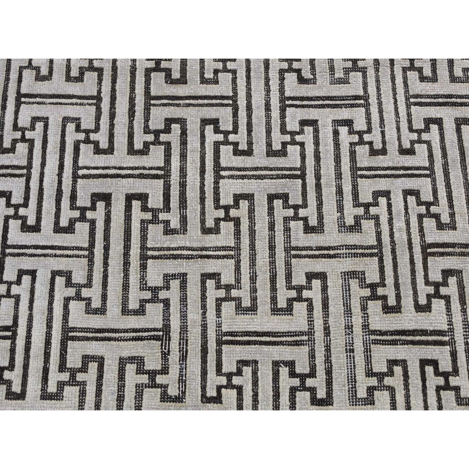 7'10"X10'3" Gray Pure Silk With Wool Roman Key Design Hand Knotted Rug