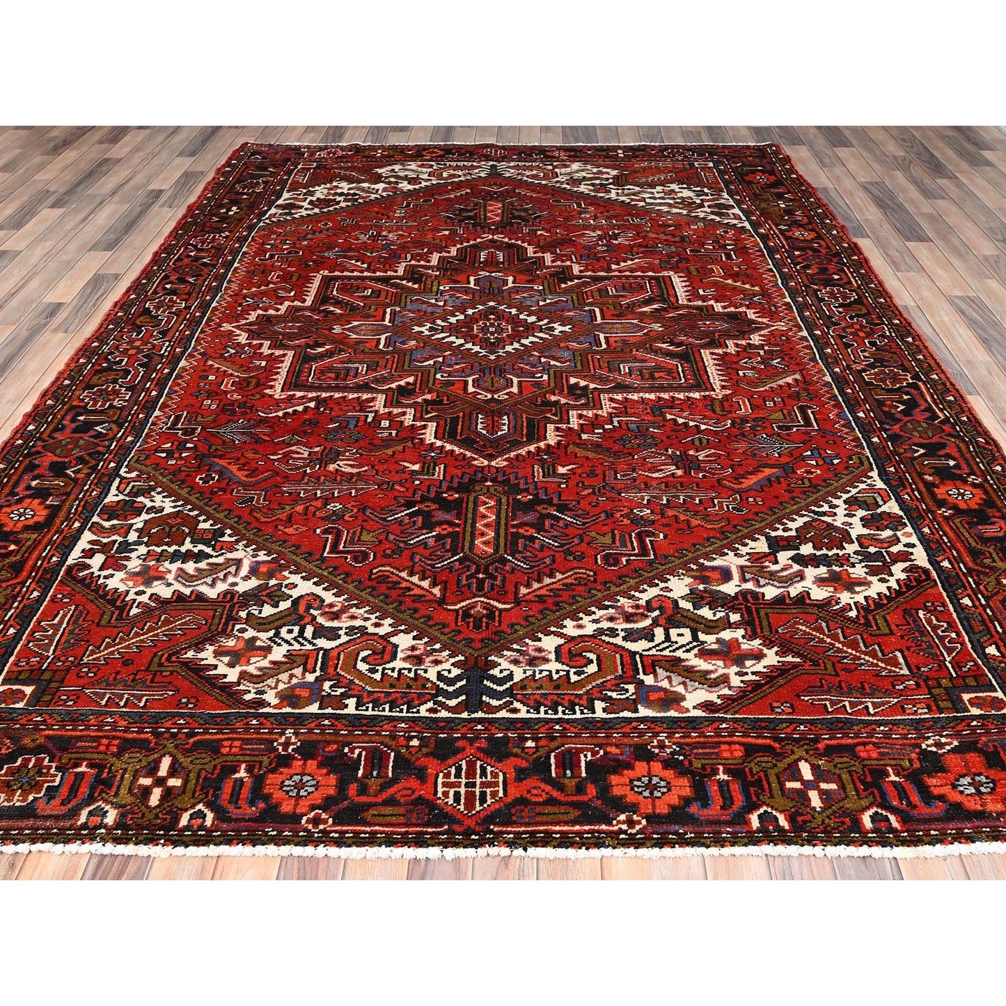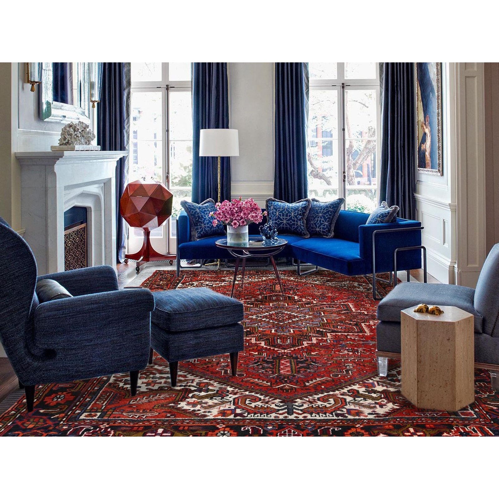7'10"X11' Rich Red Hand Knotted Vintage Zoroastrian Heris Pure Wool Rug