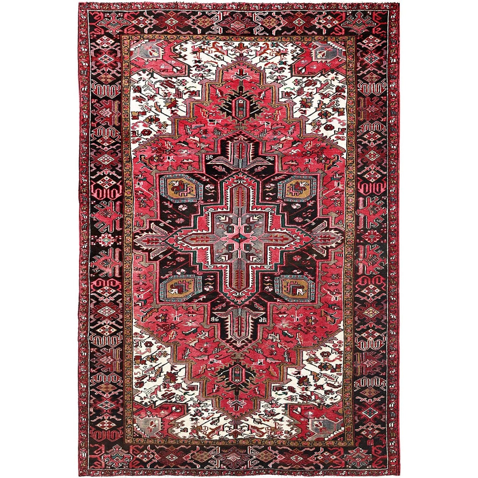 7'10"X11'5" Red Pure Wool Hand Knotted Antique Zoroastrian Heris Rug