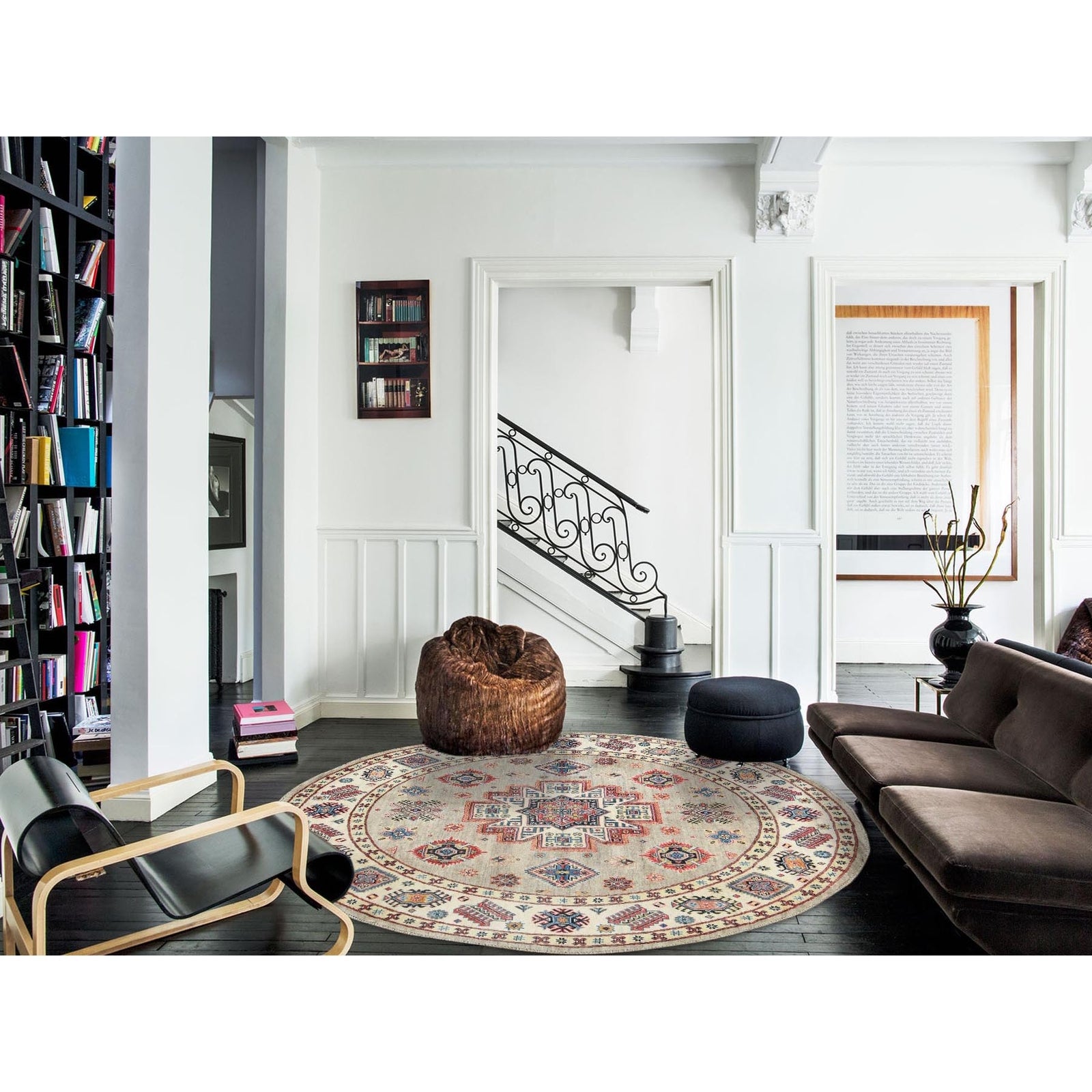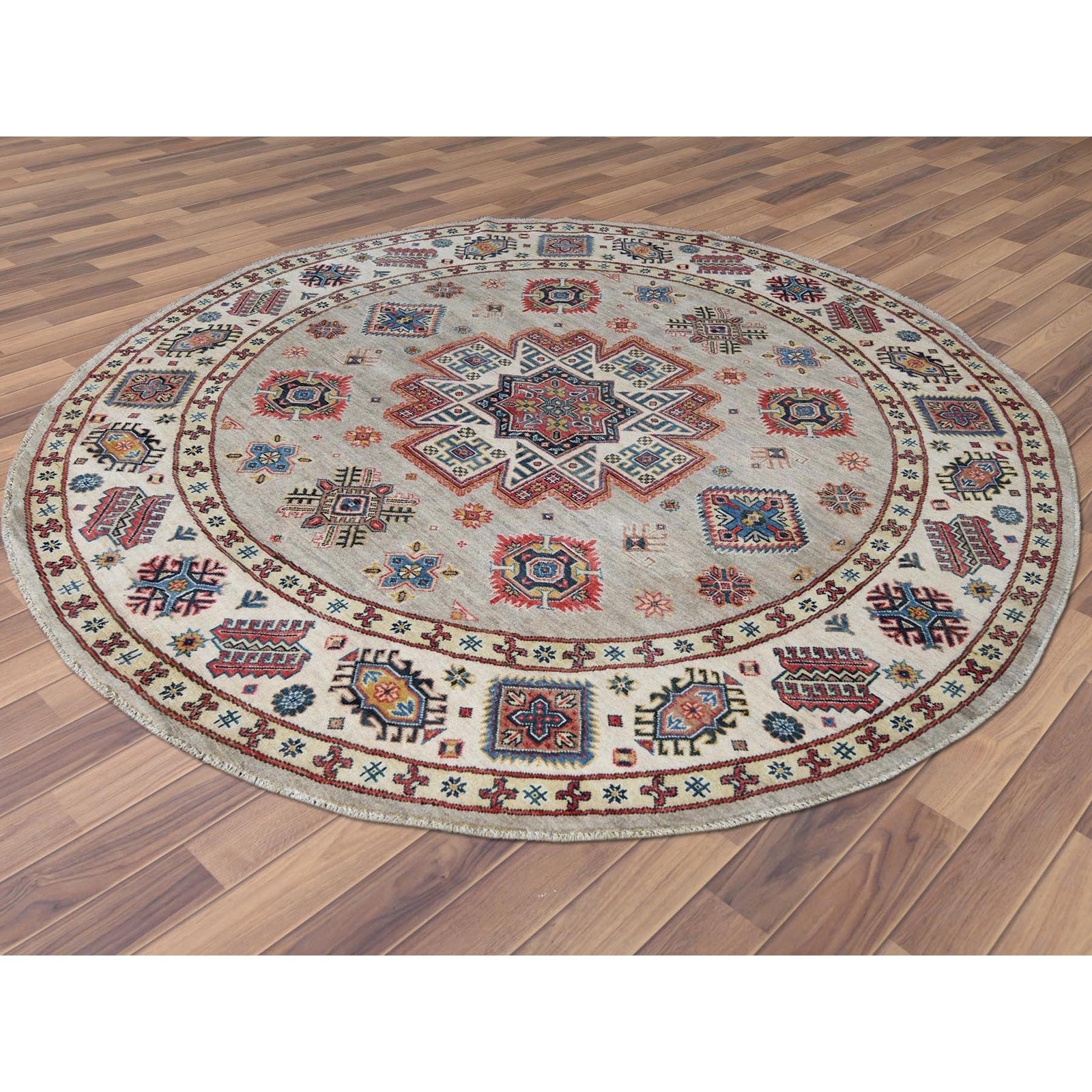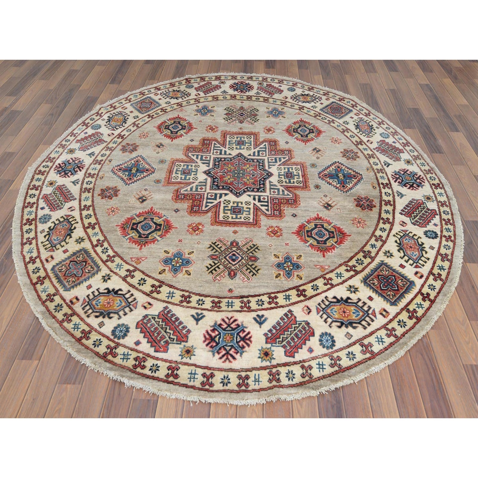 7'10"X7'10" Caucasian Afghan Special Kazak Hand Knotted Round Wool Rug