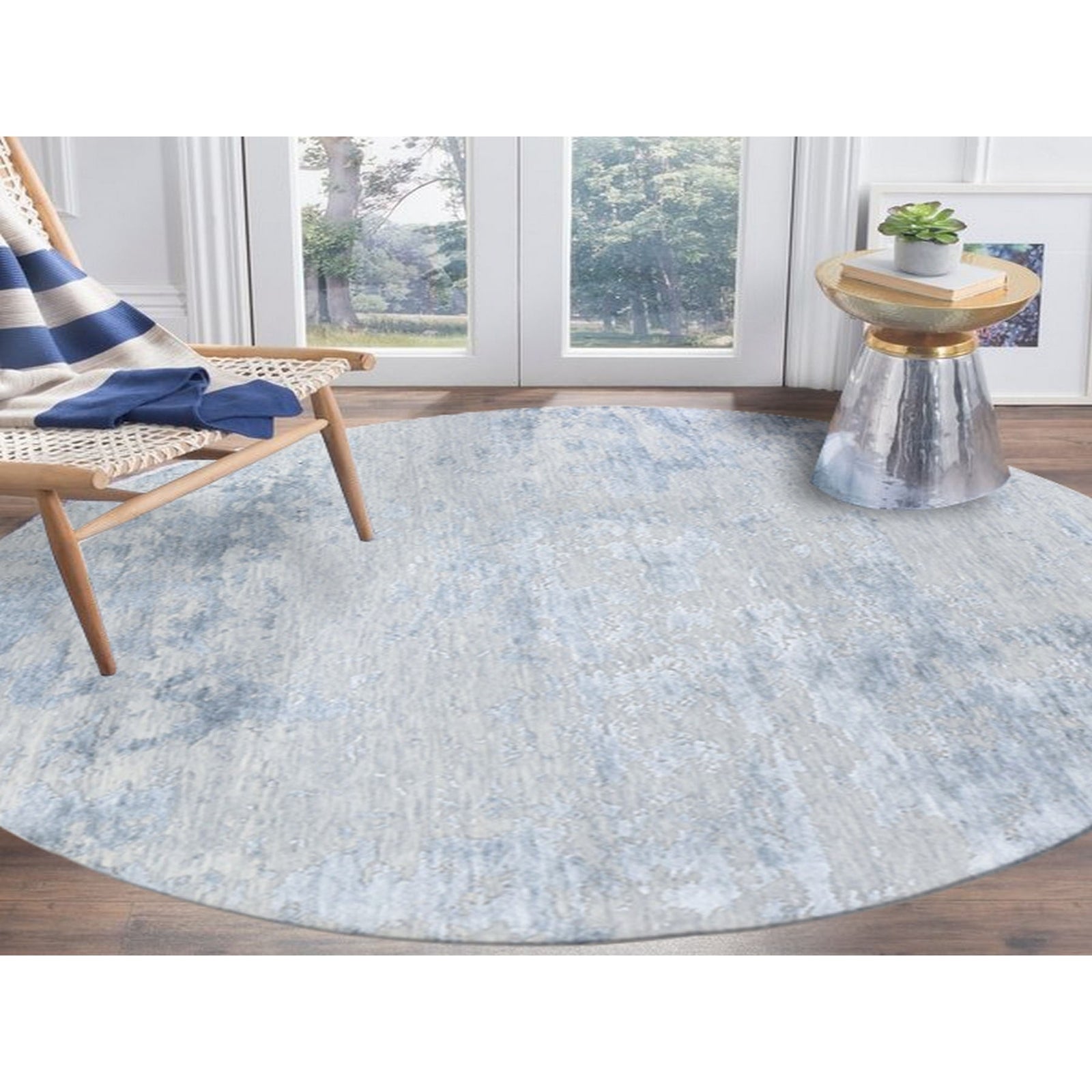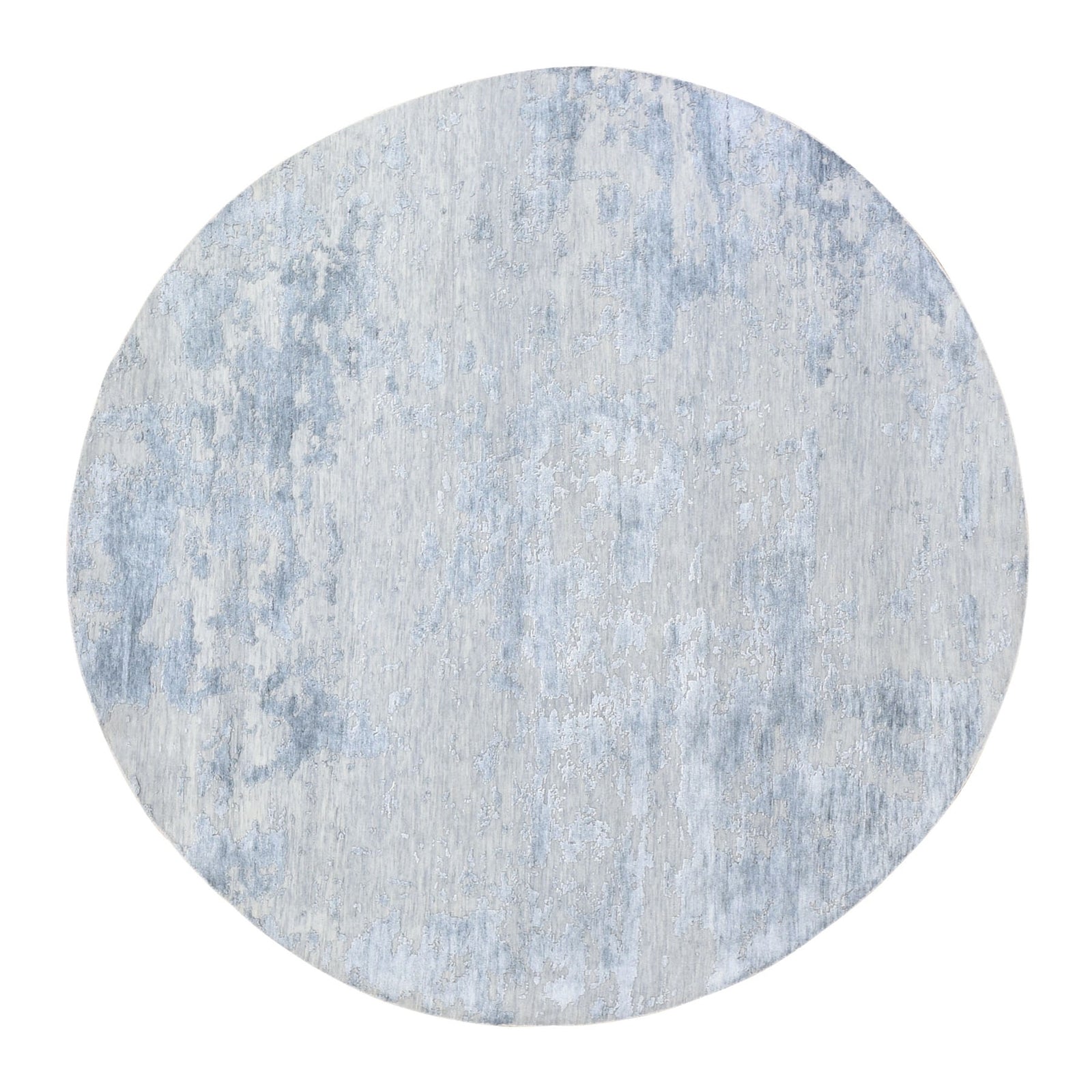 7'10"X7'10" Round Abstract Wool & Silk Denser Weave Hand Knotted Rug