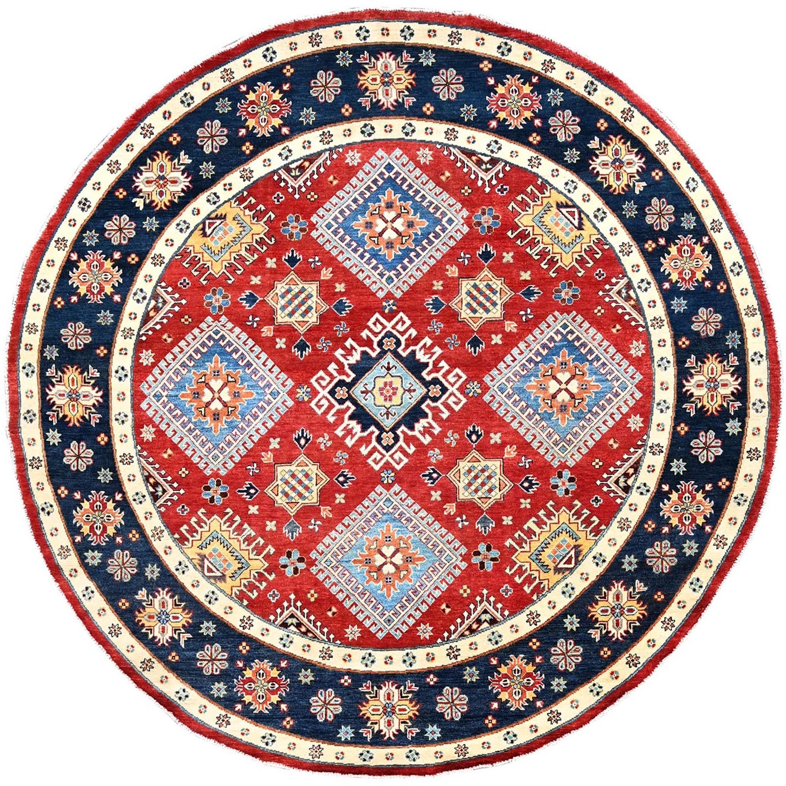 7'10"X7'9" Red Soft Wool Special Kazak Hand Knotted Round Oriental Rug