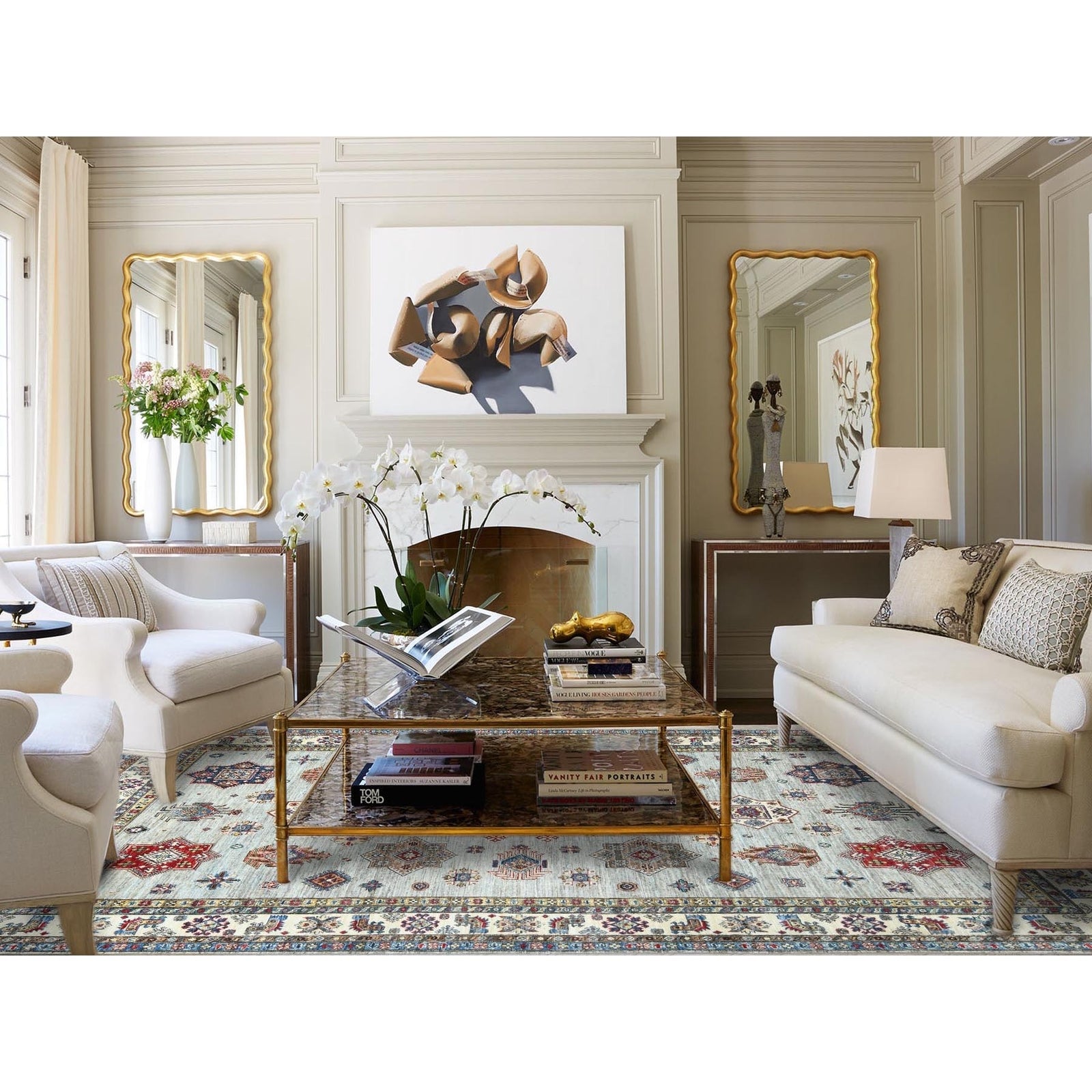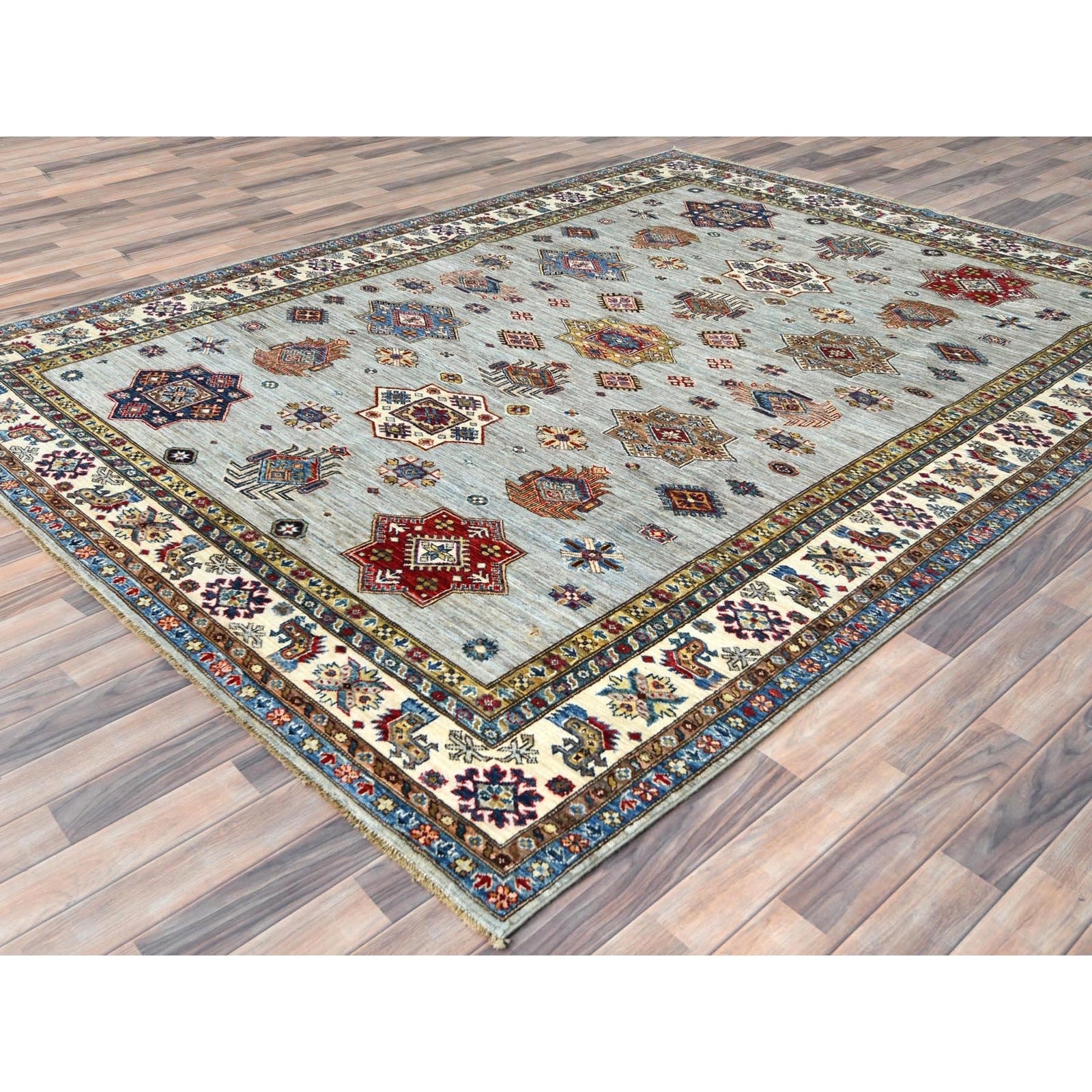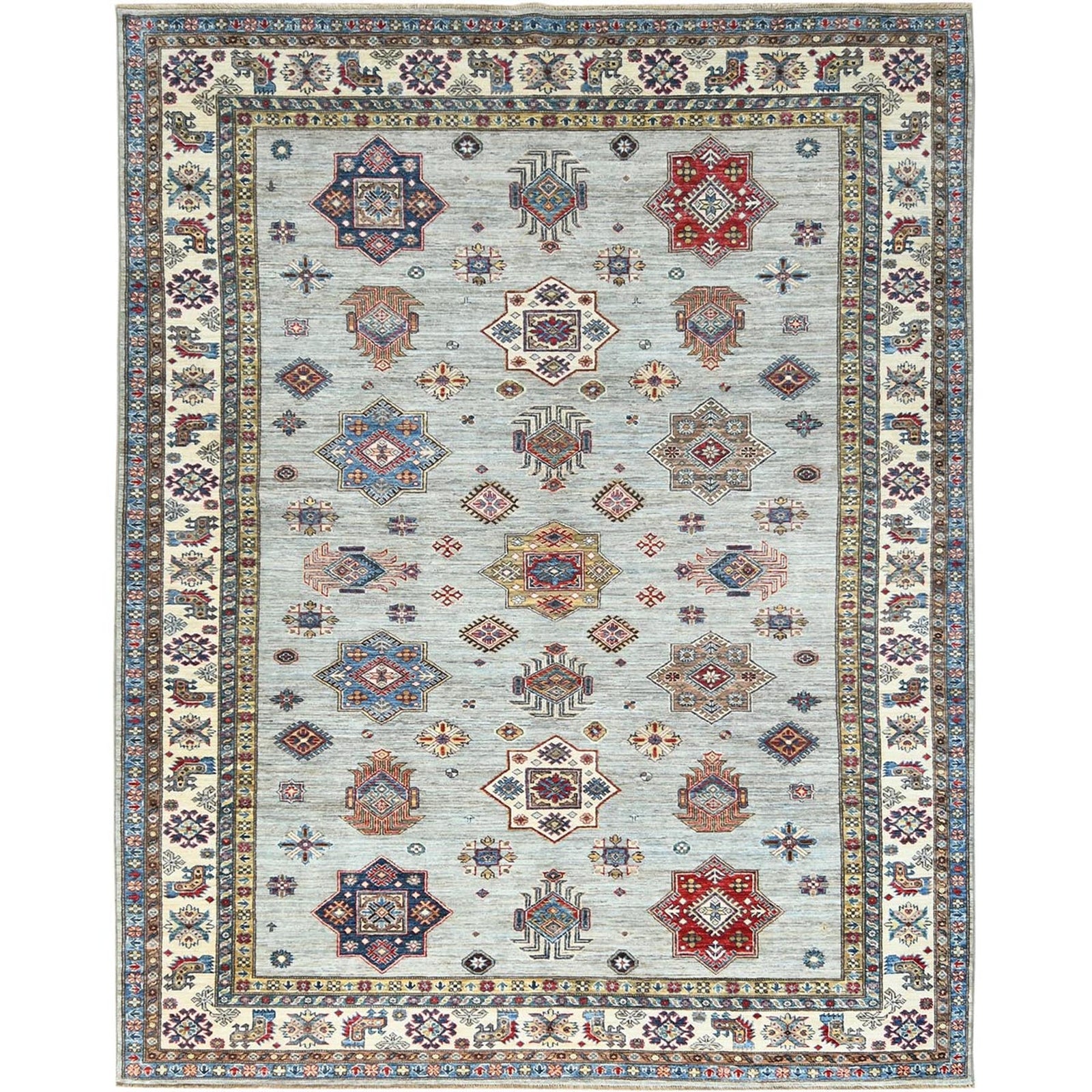 7'10"X9'10" Silver Blue Afghan Super Kazak Natural Wool Hand Knotted Rug
