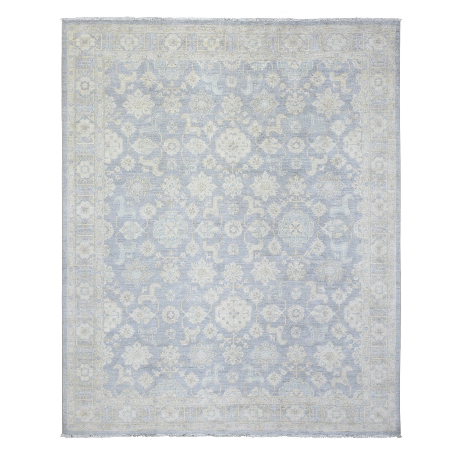 7'10"X9'7" Cloud Gray White Wash Peshawar Natural Wool Hand Knotted Rug