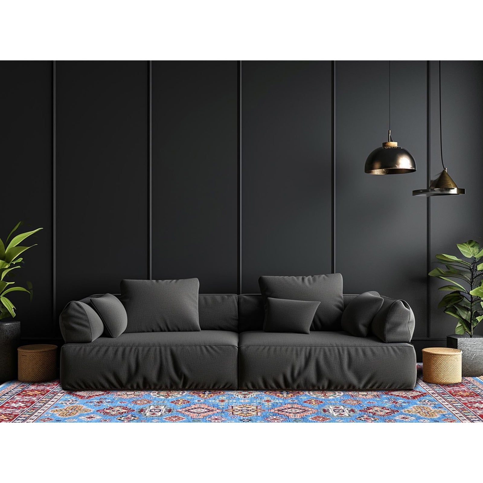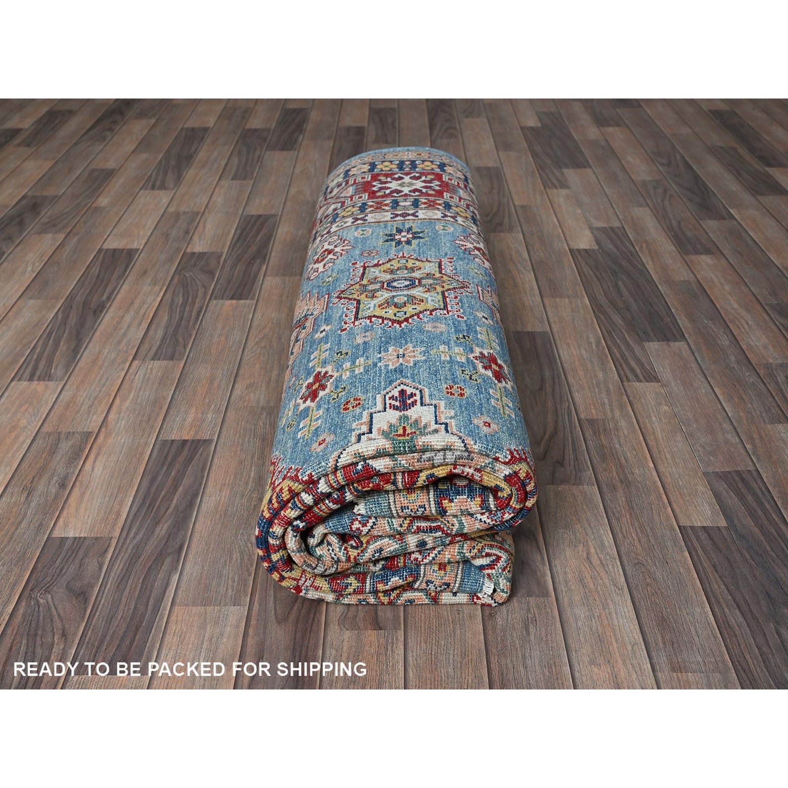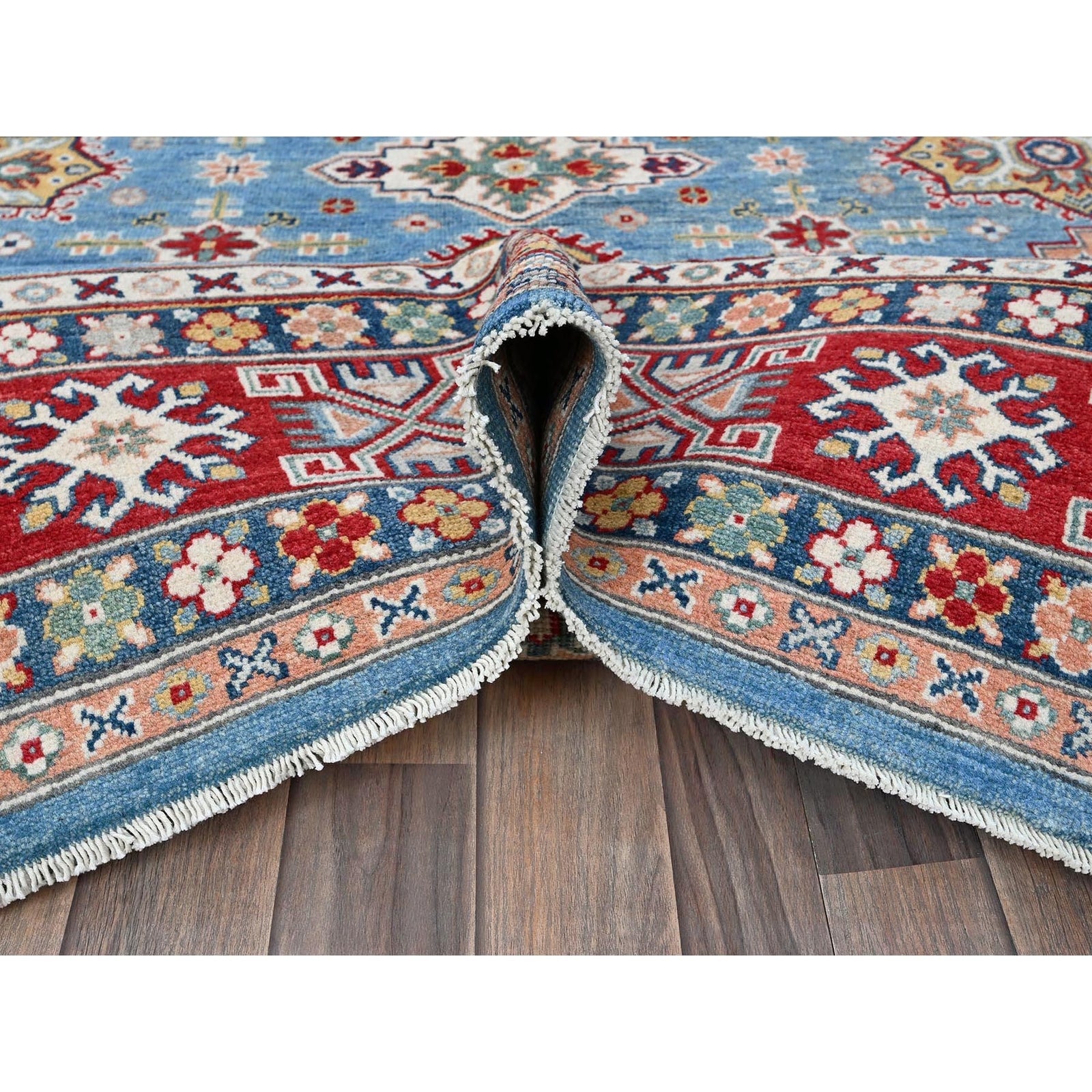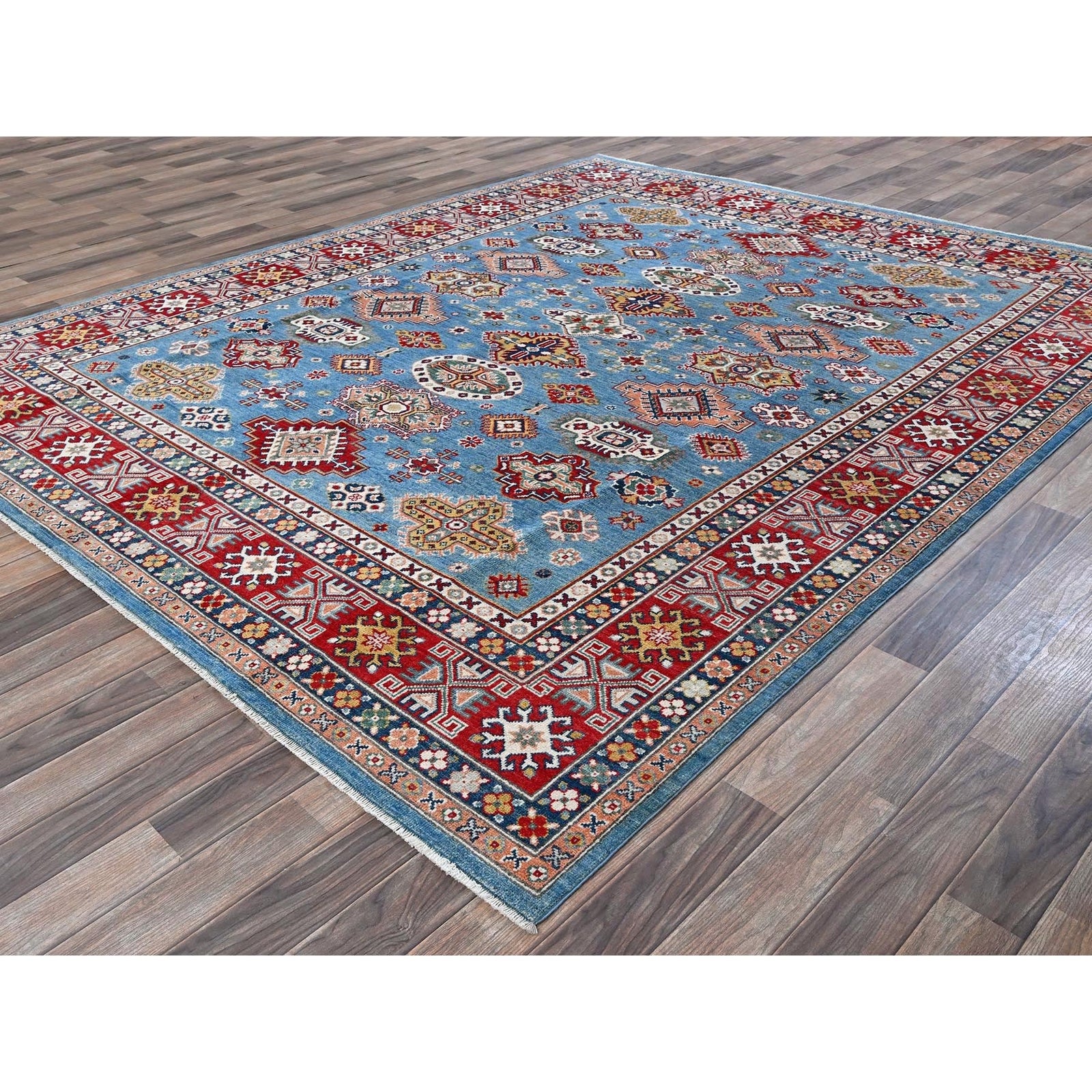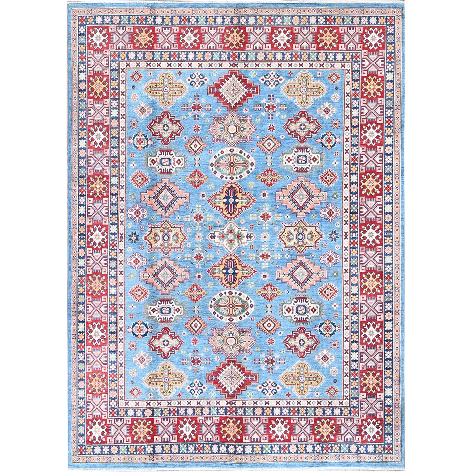 7'10"X9'8" Blue Kazak Tribal Medallions Design Hand Knotted Soft Wool Rug