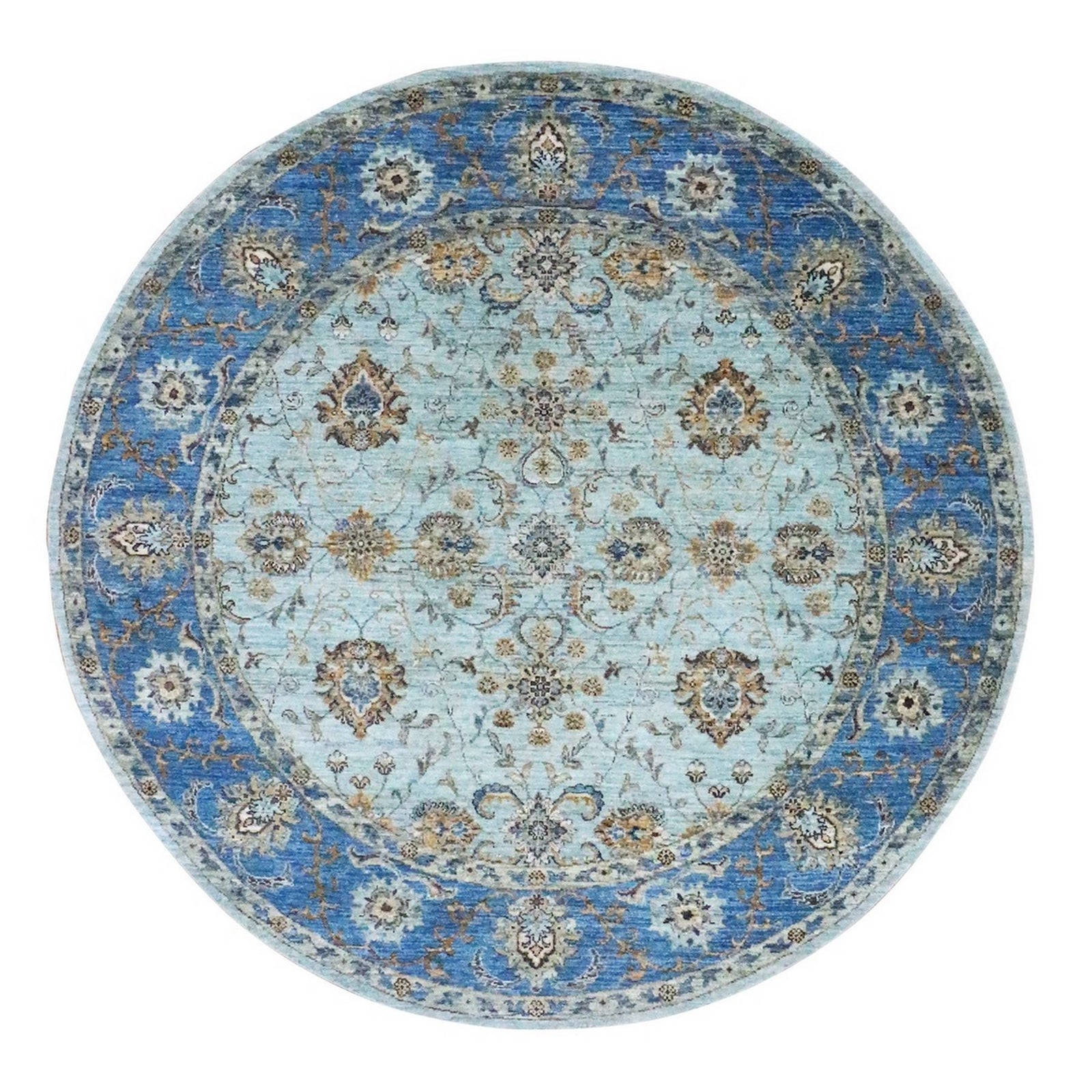 7'1"X7'1" Blue Shah Abbas Flower Design Pure Wool Hand Knotted Round Rug