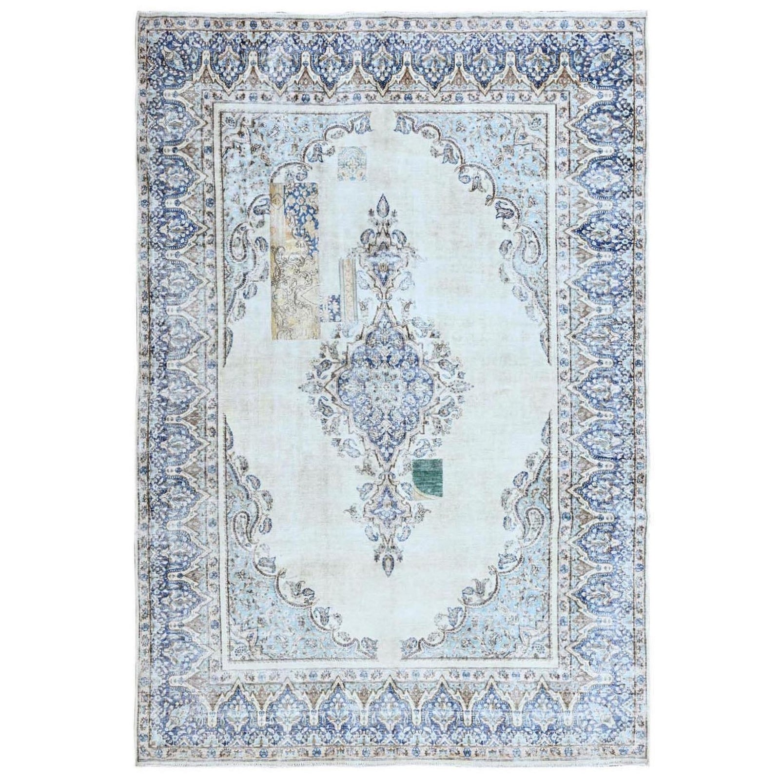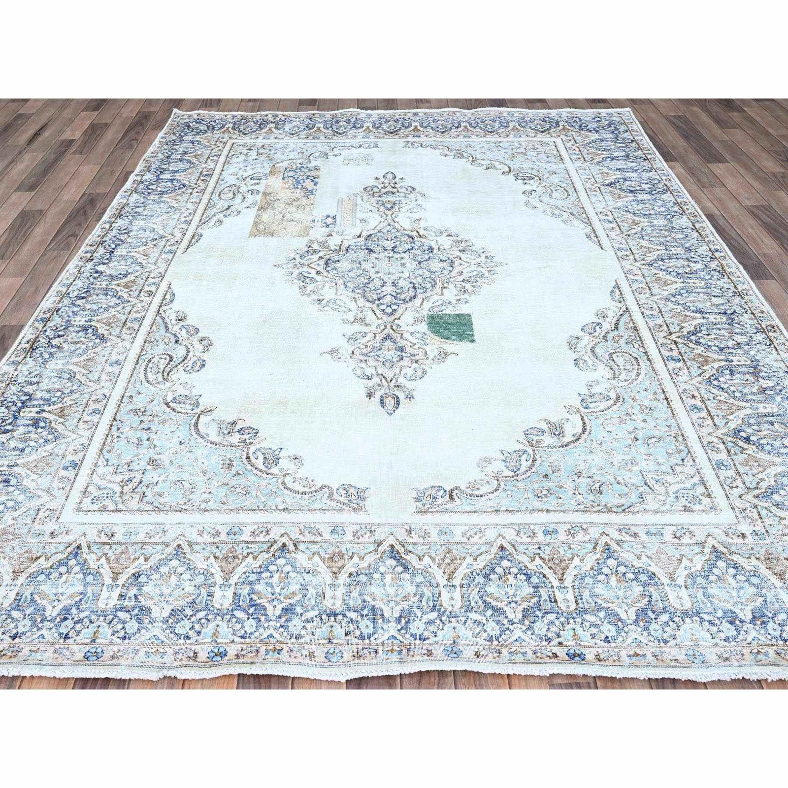 7'2"X10'1" Blue Vintage Zoroastrian Karman Worn Down Wool Hand Knotted Rug