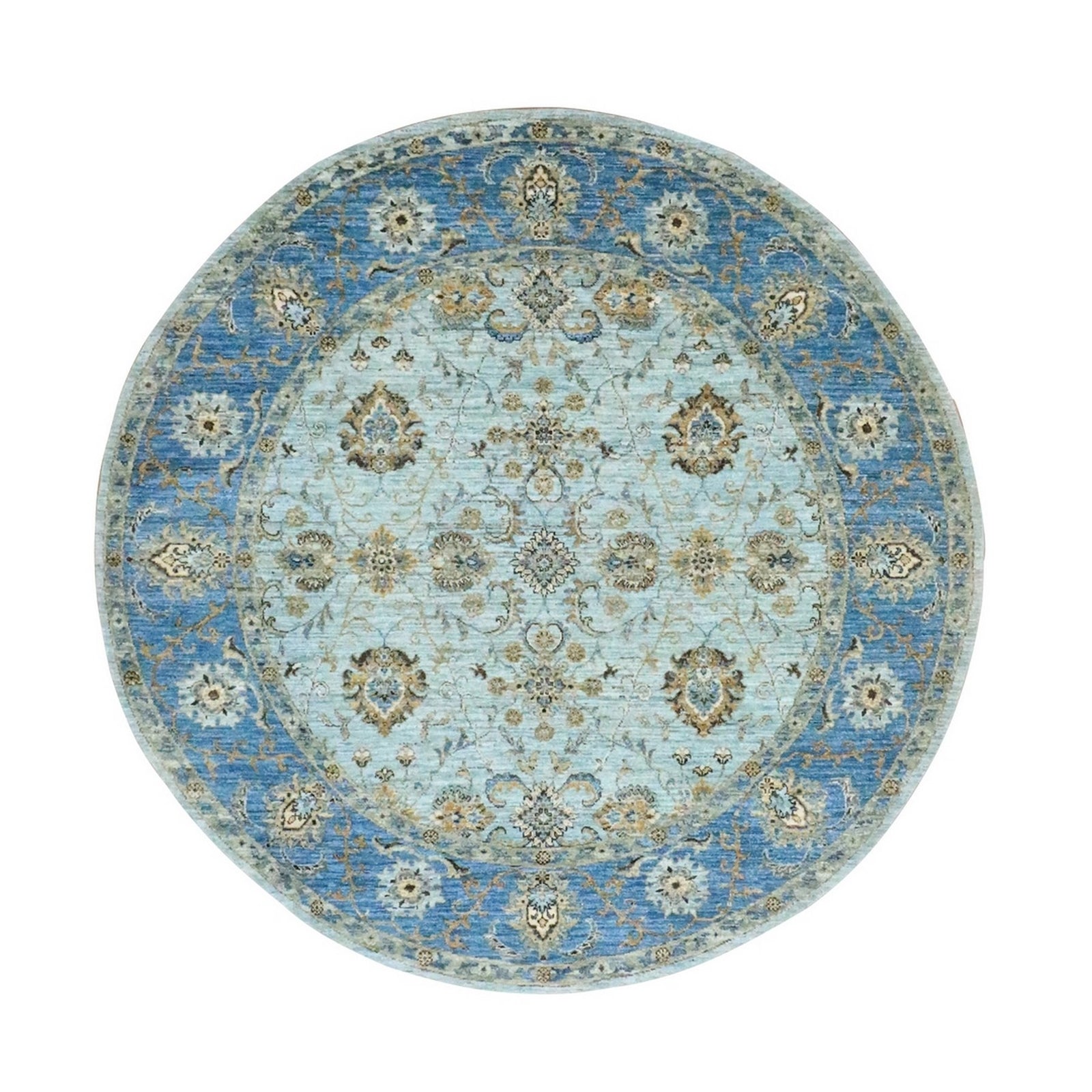 7'2"X7'2" Blue All Over Flower Design Pure Wool Hand Knotted Round Rug