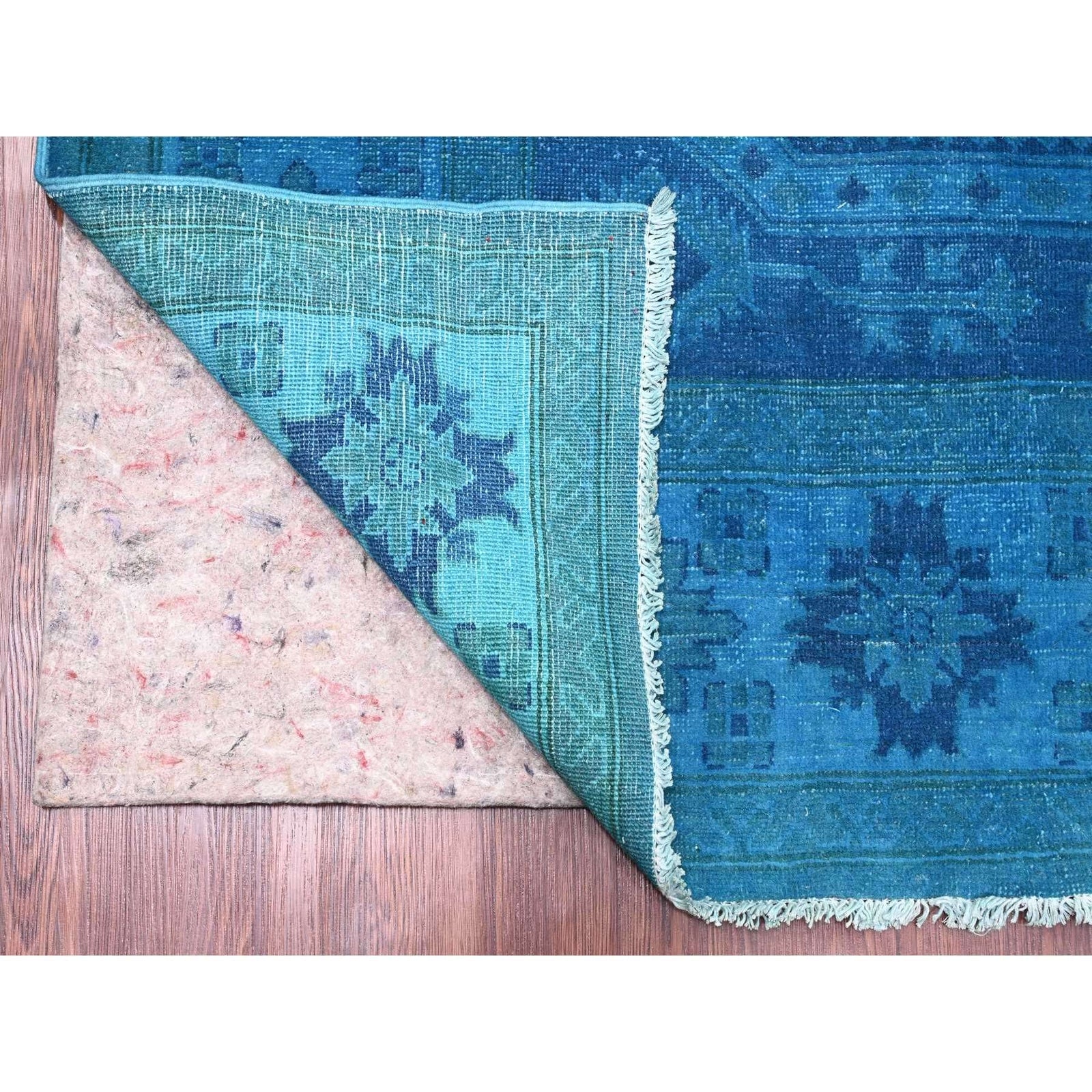 7'8"X10'1" Blue Hand Knotted Overdyed Kazak Geometric Design All Wool Rug