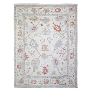 7'8"X10'2" Ivory, Hand Knotted Afghan Angora Oushak, Pure Wool, Rug