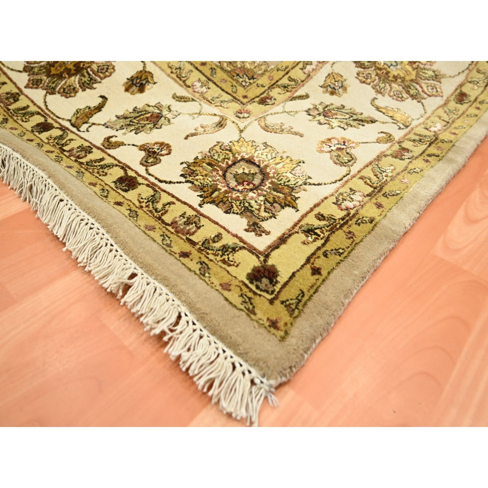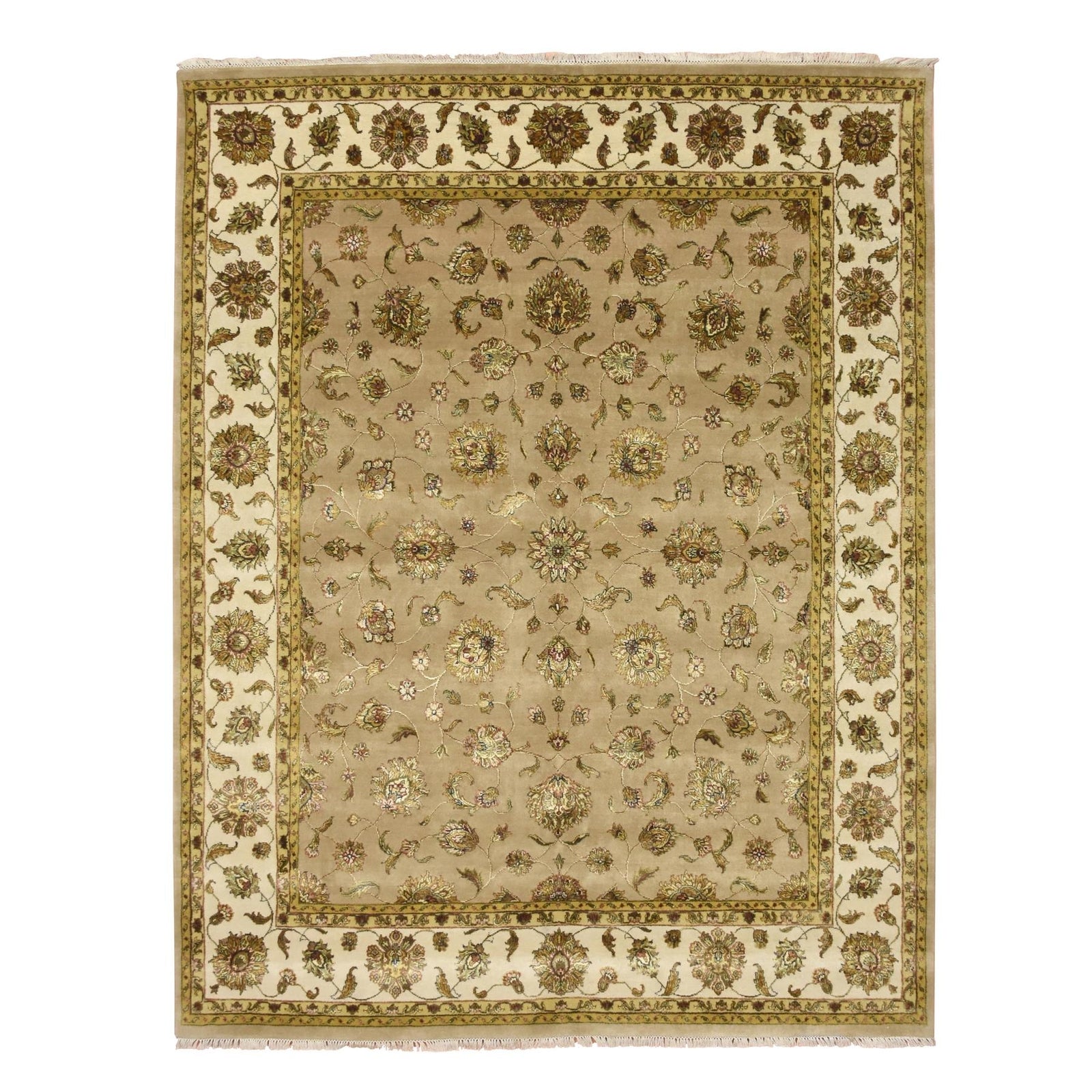7'8"X9'10" Brown Rajasthan Leaf Design Hand Knotted Wool And Silk Rug