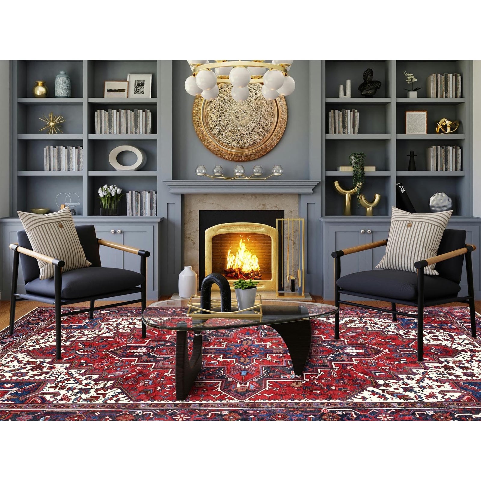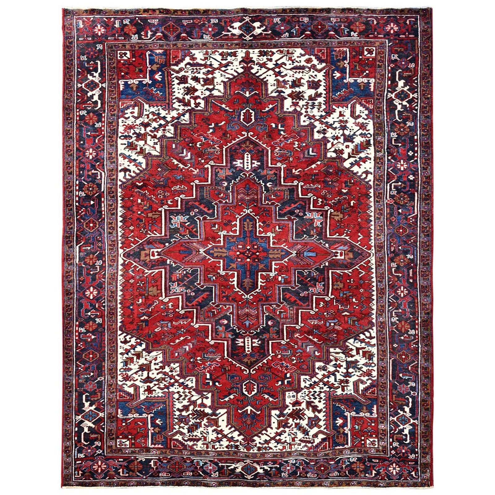 7'9"X10' Scarlet Red Vintage Zoroastrian Heris Wool Hand Knotted Clean Rug