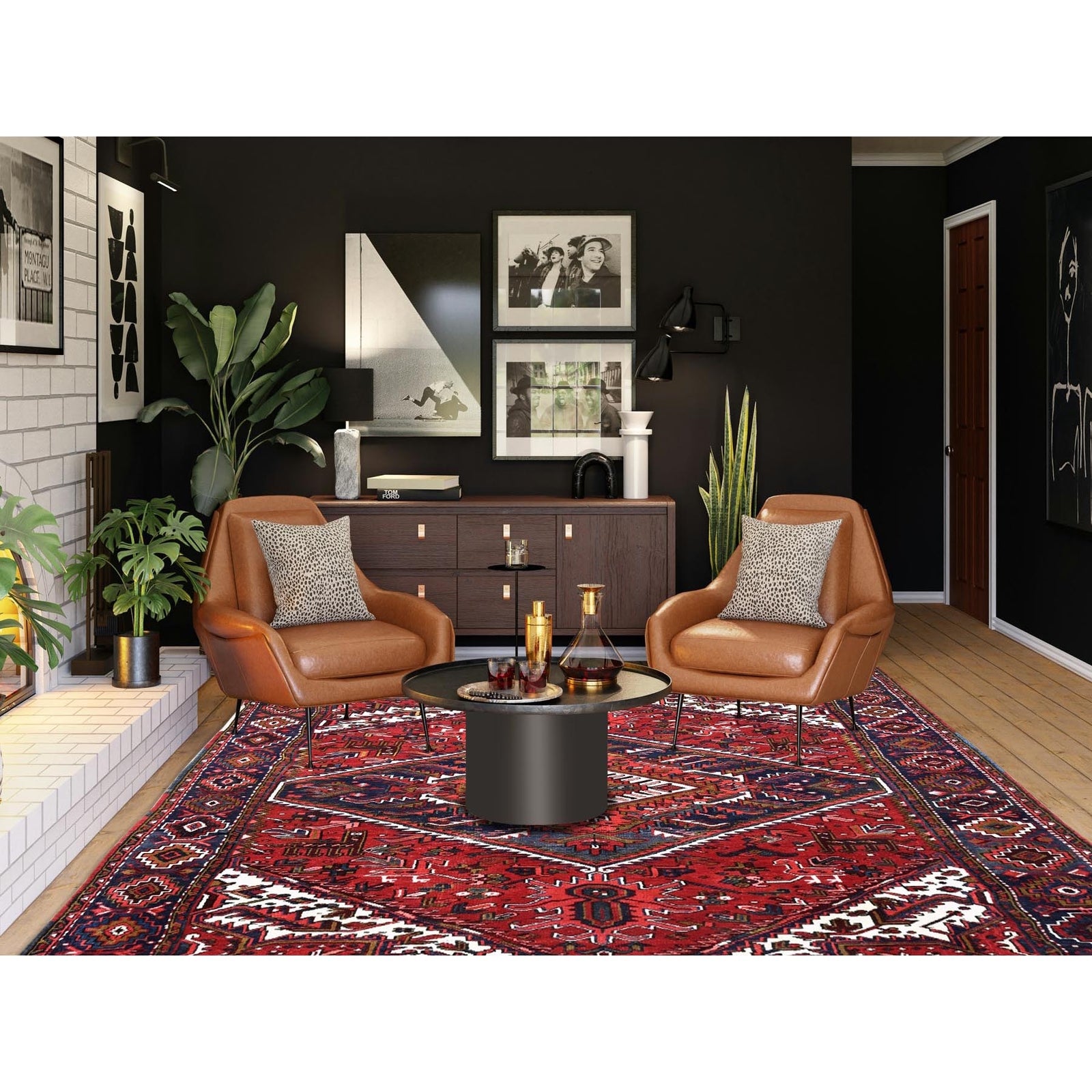 7'9"X10'4" Ajax Red Vintage Zoroastrian Heris Wool Hand Knotted Clean Rug