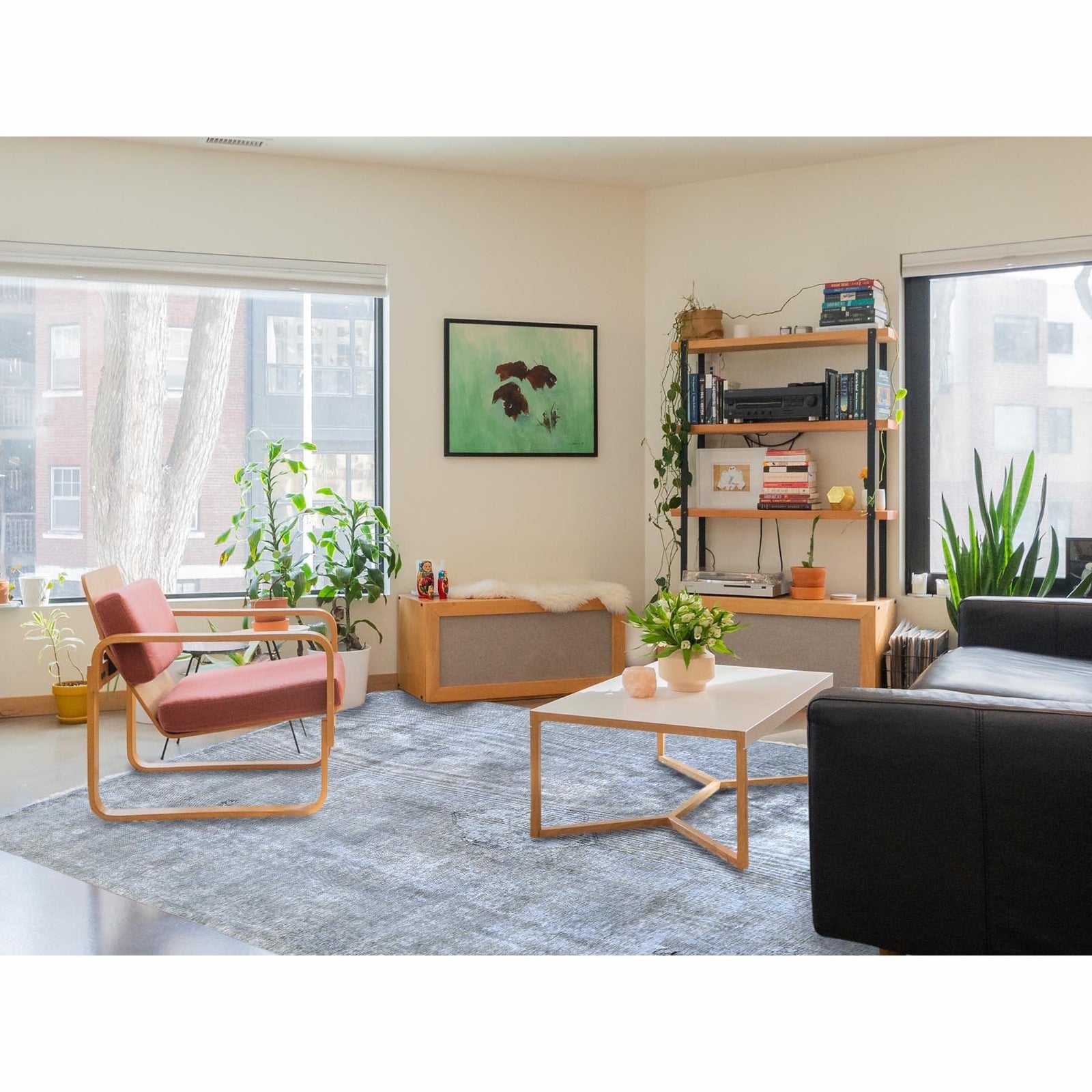 7'9"X11' Gray Worn Wool Vintage Hand Knotted Farsian Tebraz Rug