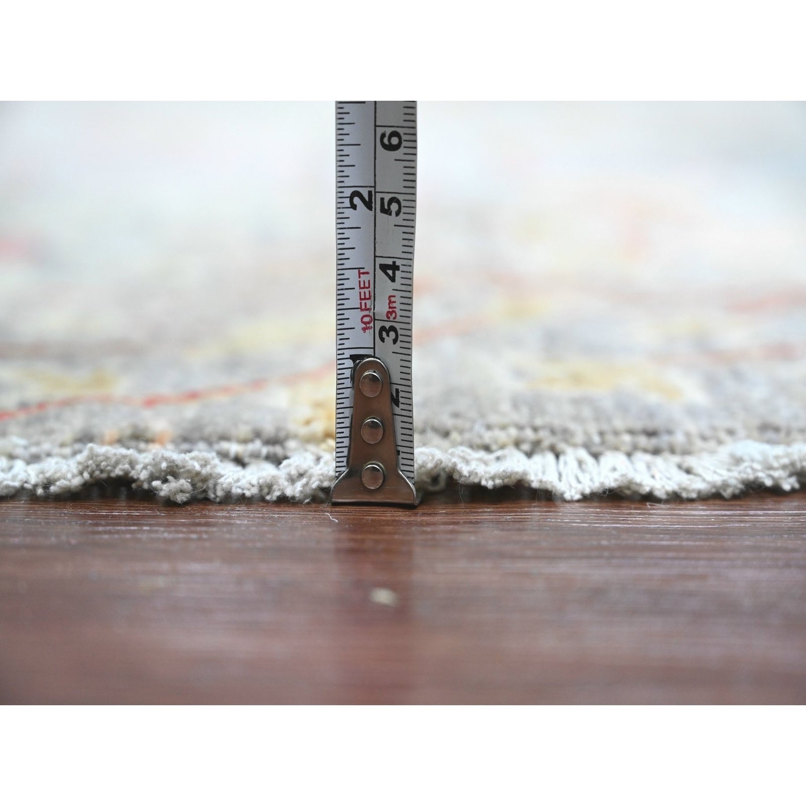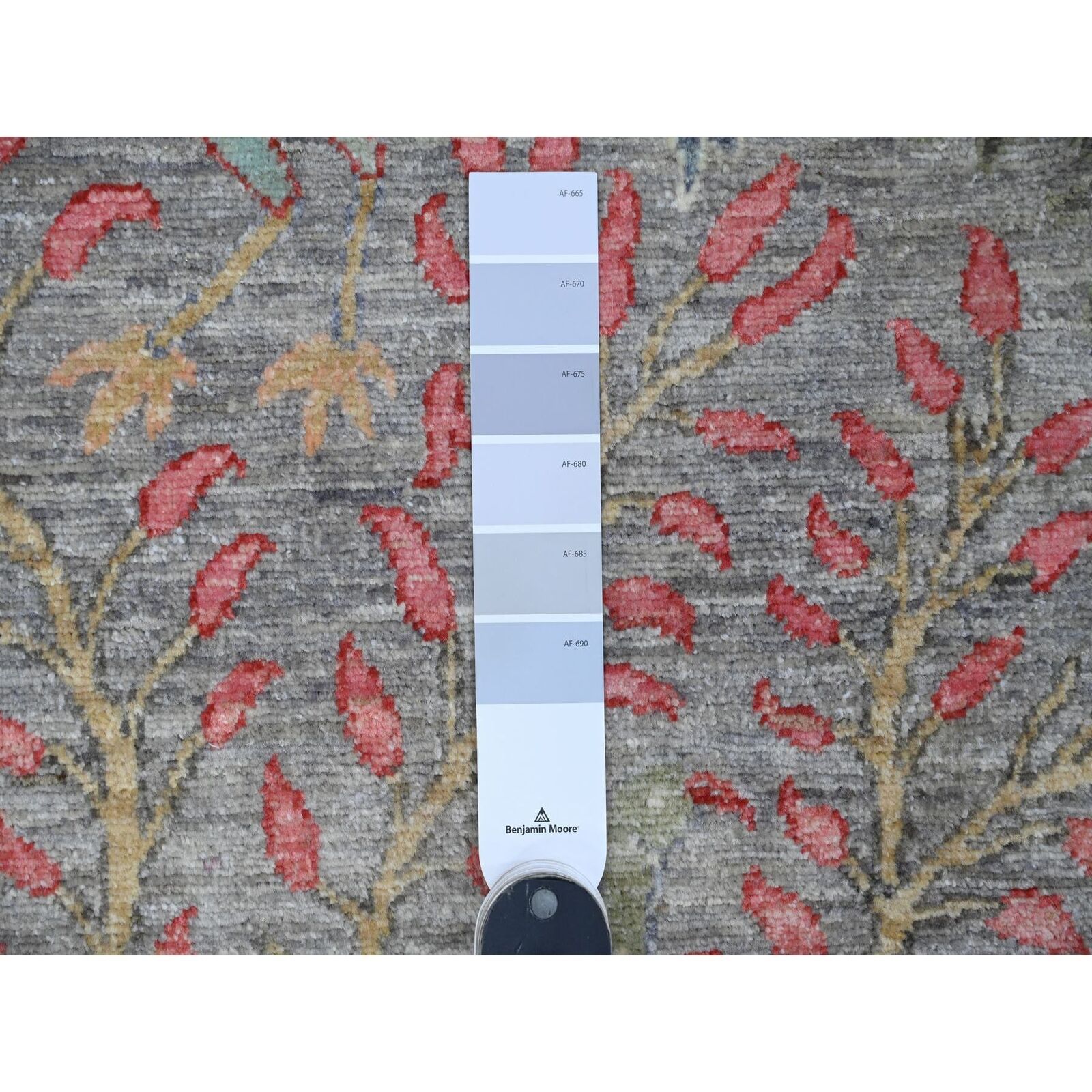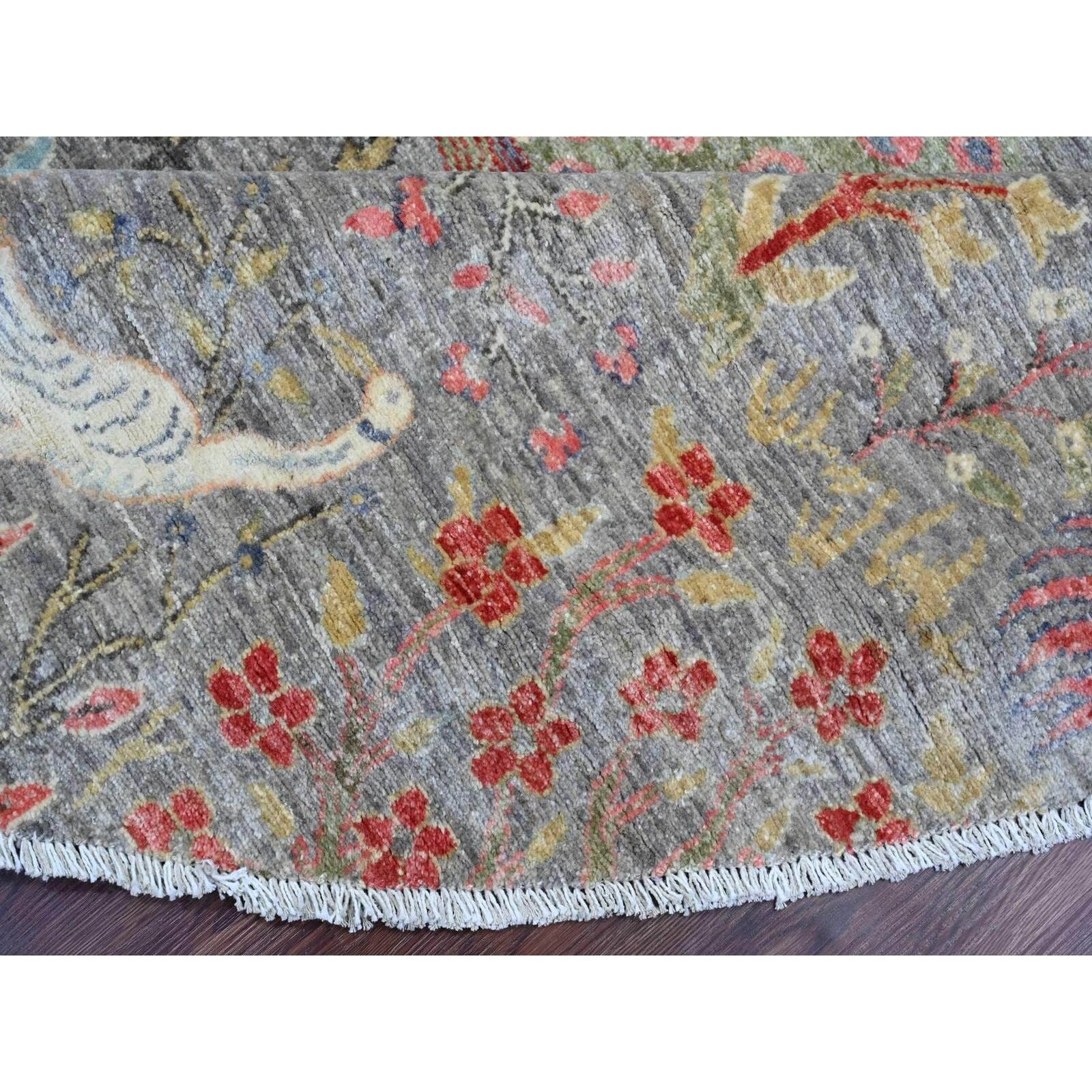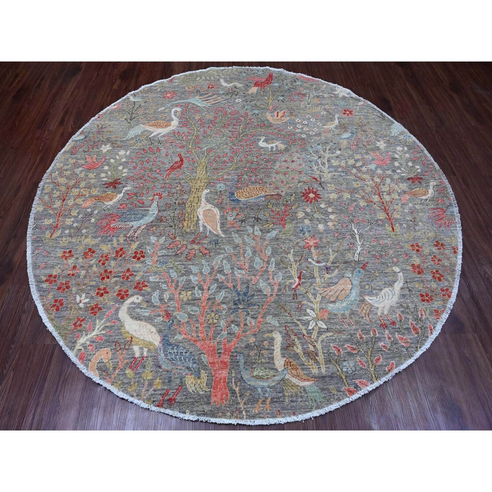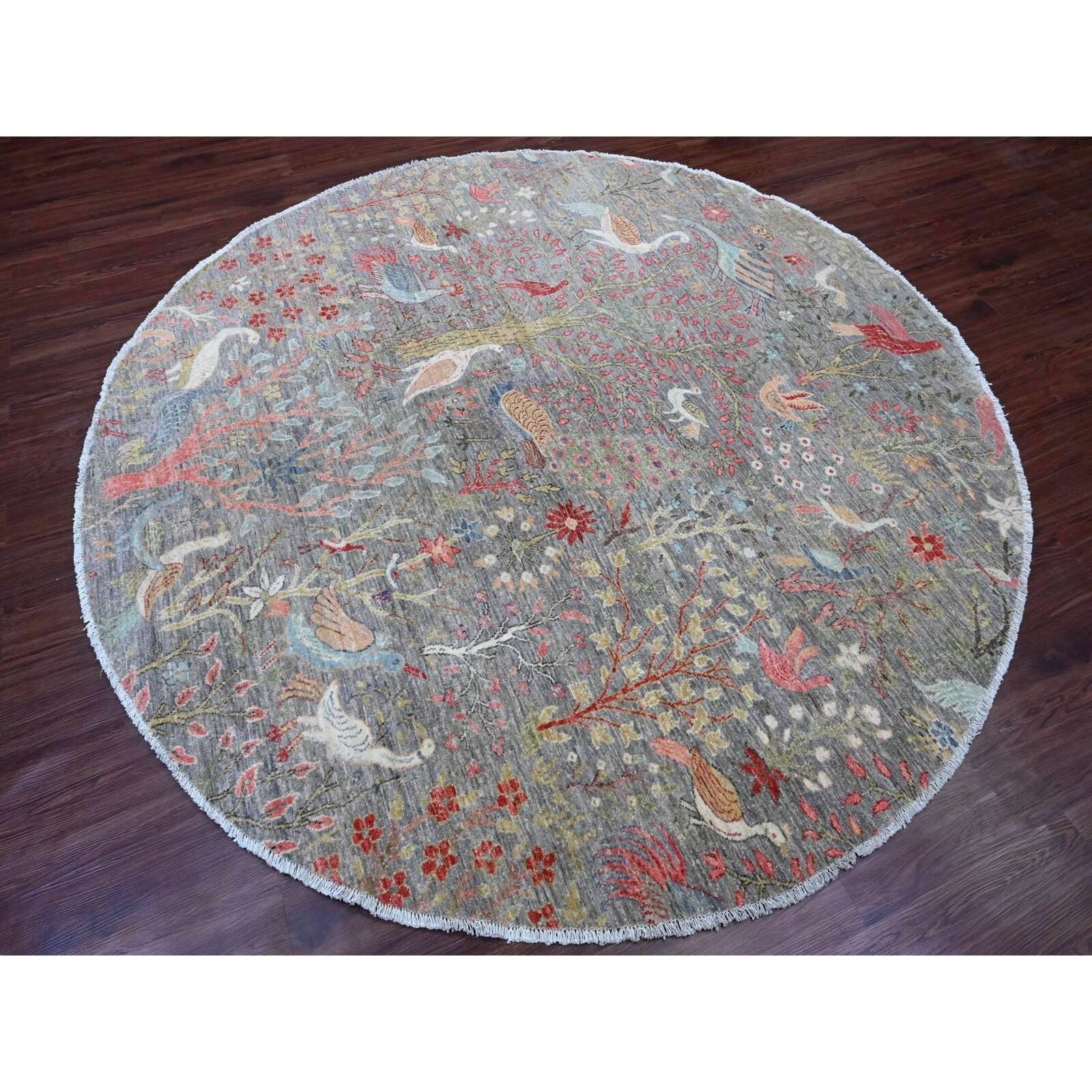 7'9"X7'9" Gray Birds Of Paradise Design Hand Knotted Soft Wool Round Rug
