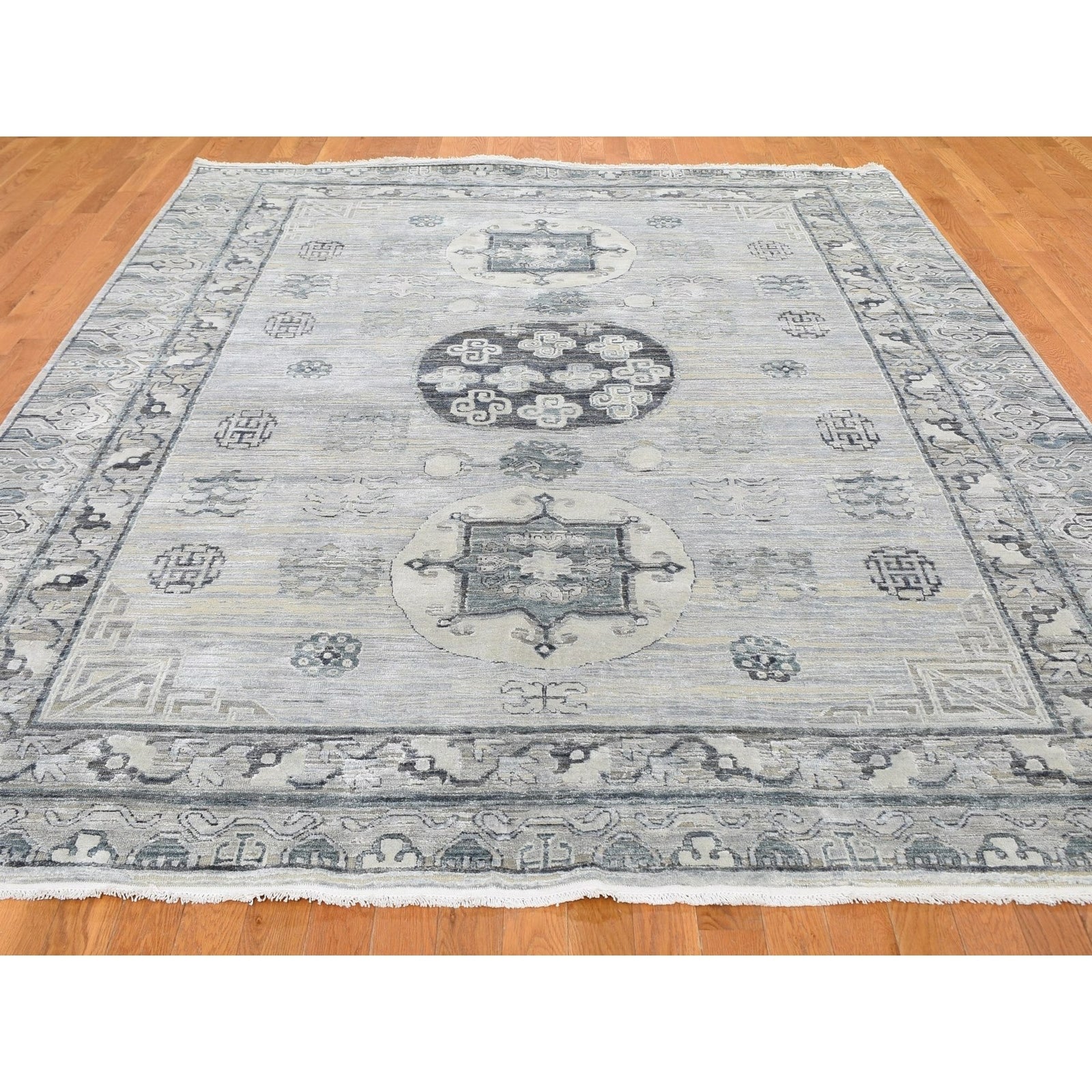 7'9"X9'10" Pure Silk With Textured Wool Khotan Design Hand Knotted Rug