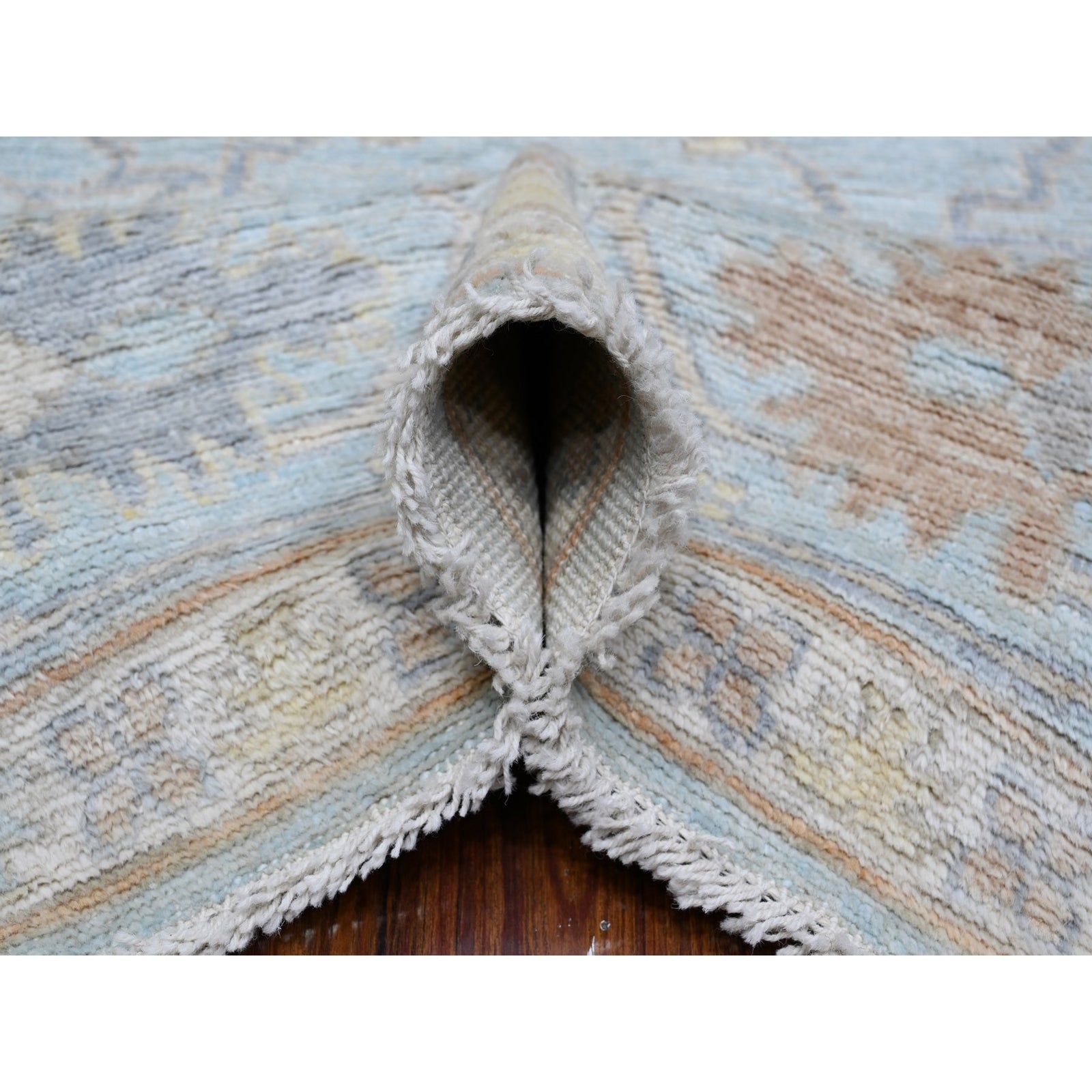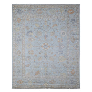 7'9"X9'9" Beau Blue Faded Out Angora Oushak Wool Weft Oriental Rug