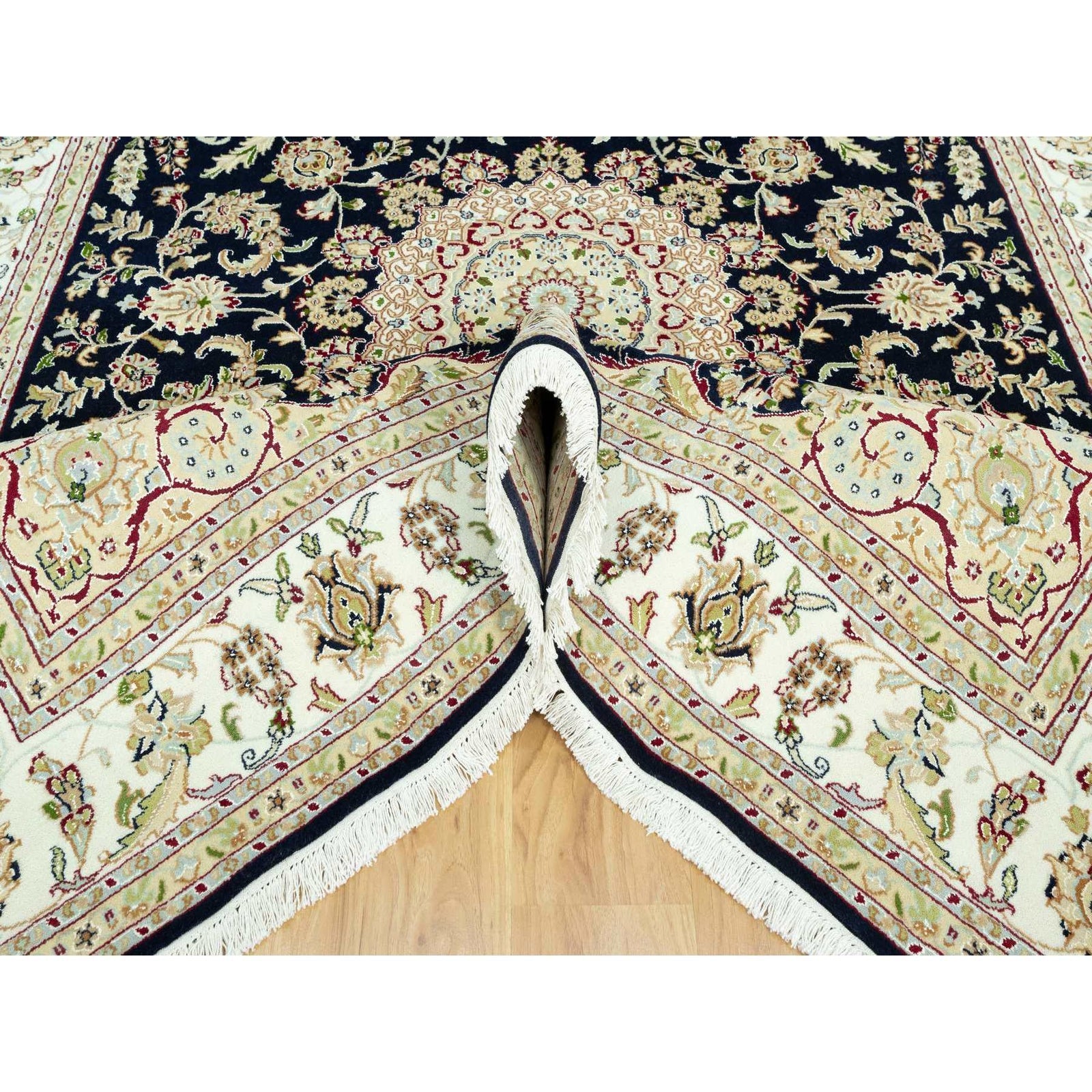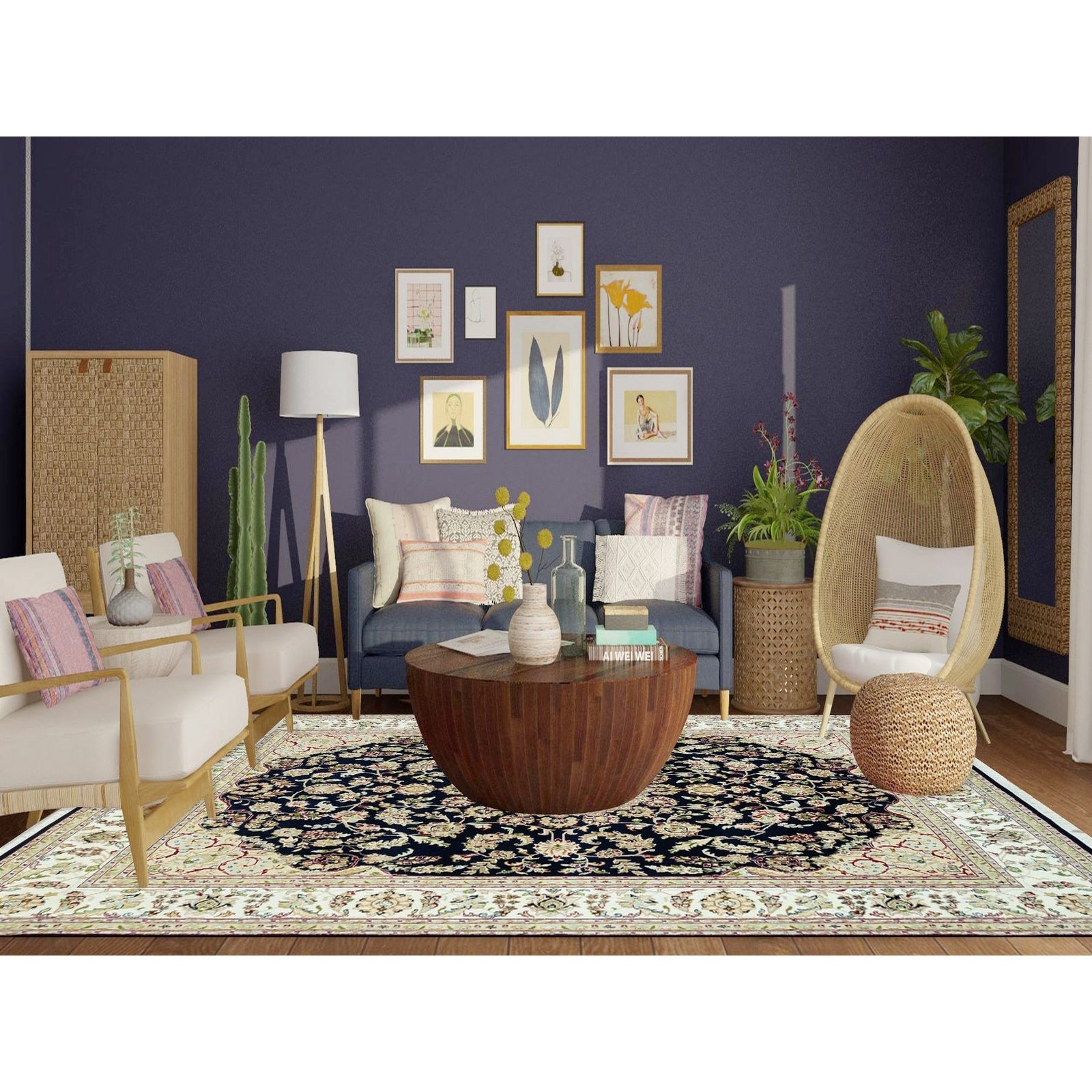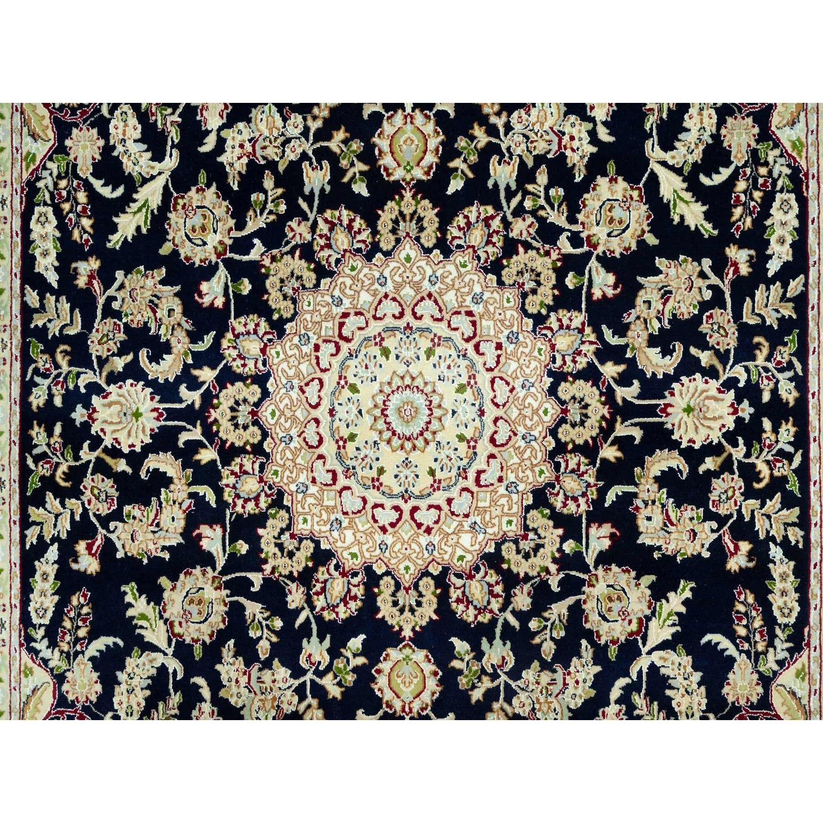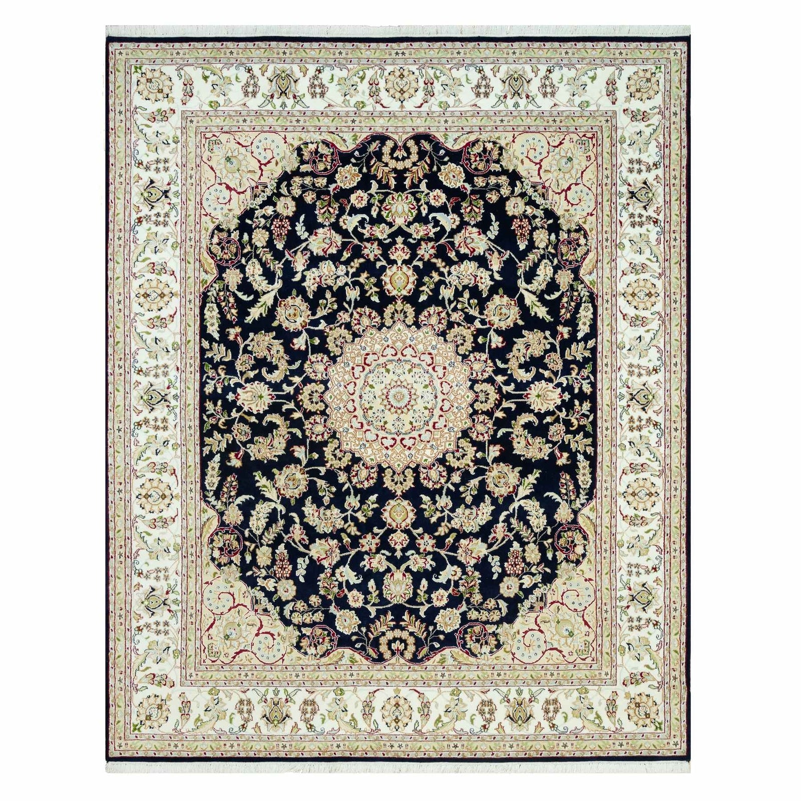 7'9"X9'9" Dark Night Blue Nain Floral Design 250 Kpsi Hand Knotted Rug