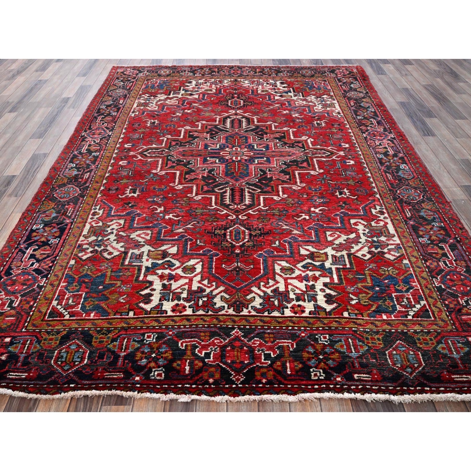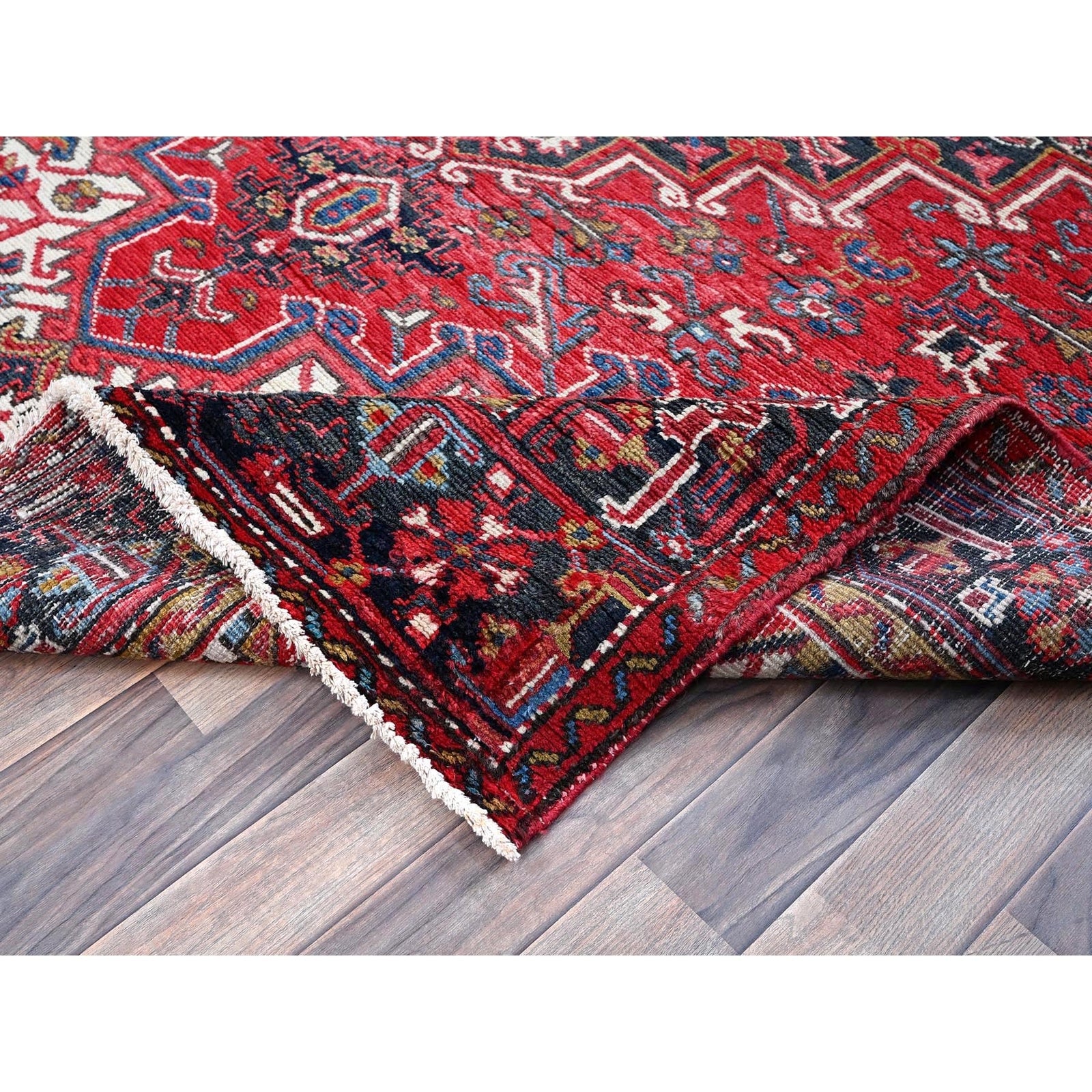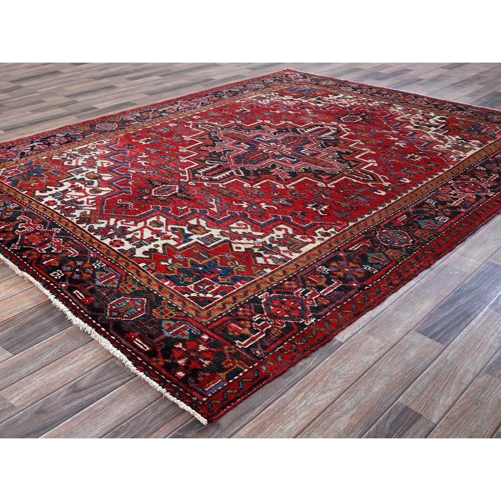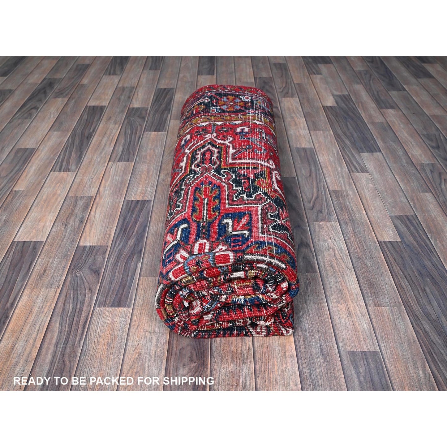 7'X9' Red Vintage Zoroastrian Heris Shaved Low 100% Wool Hand Knotted Rug