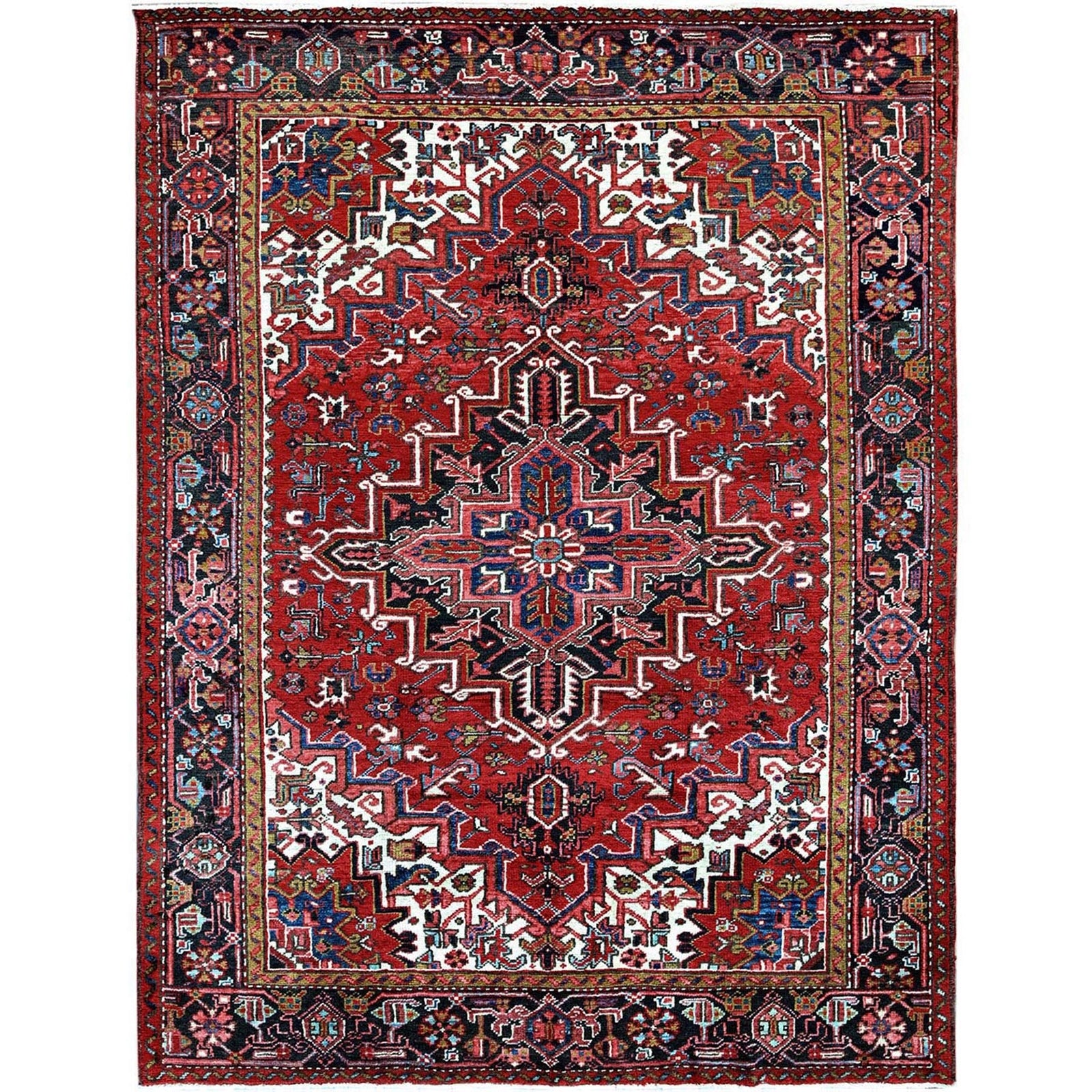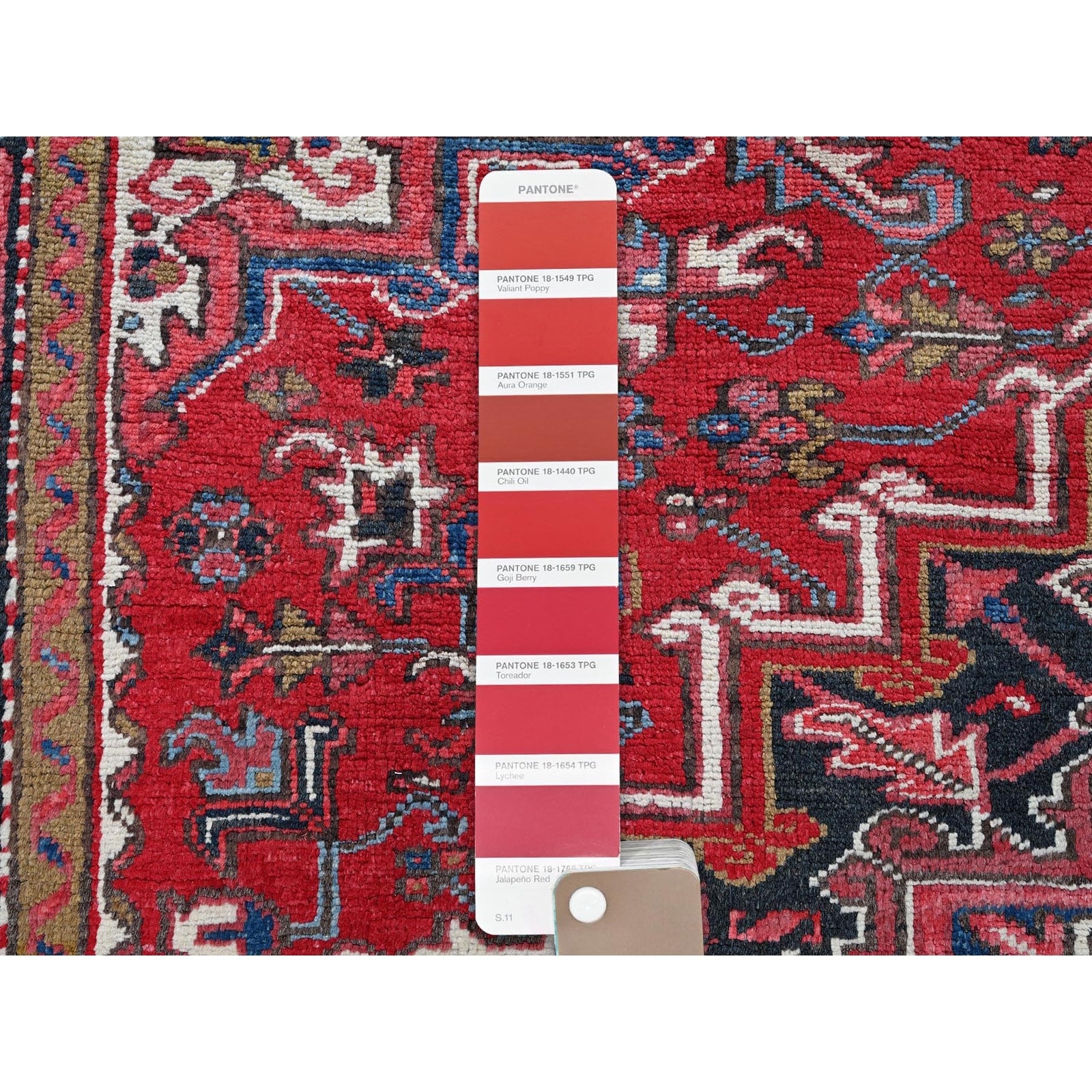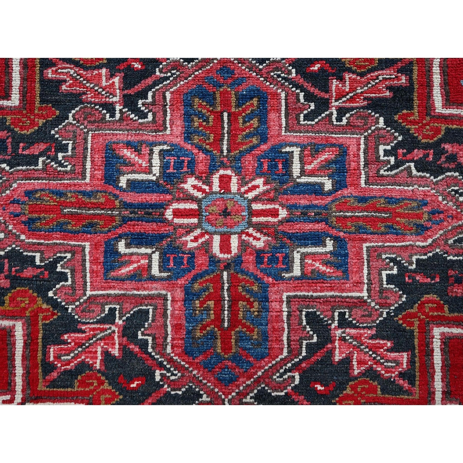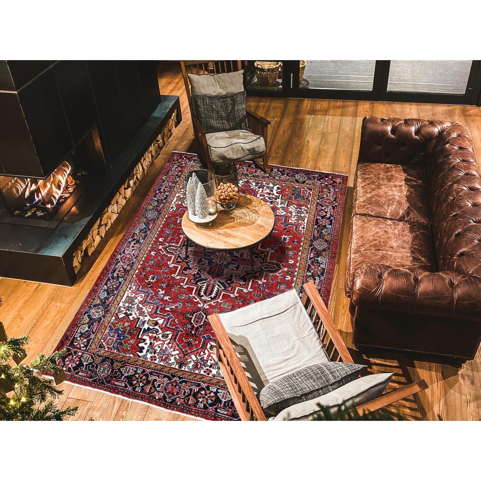 7'X9' Red Vintage Zoroastrian Heris Shaved Low 100% Wool Hand Knotted Rug