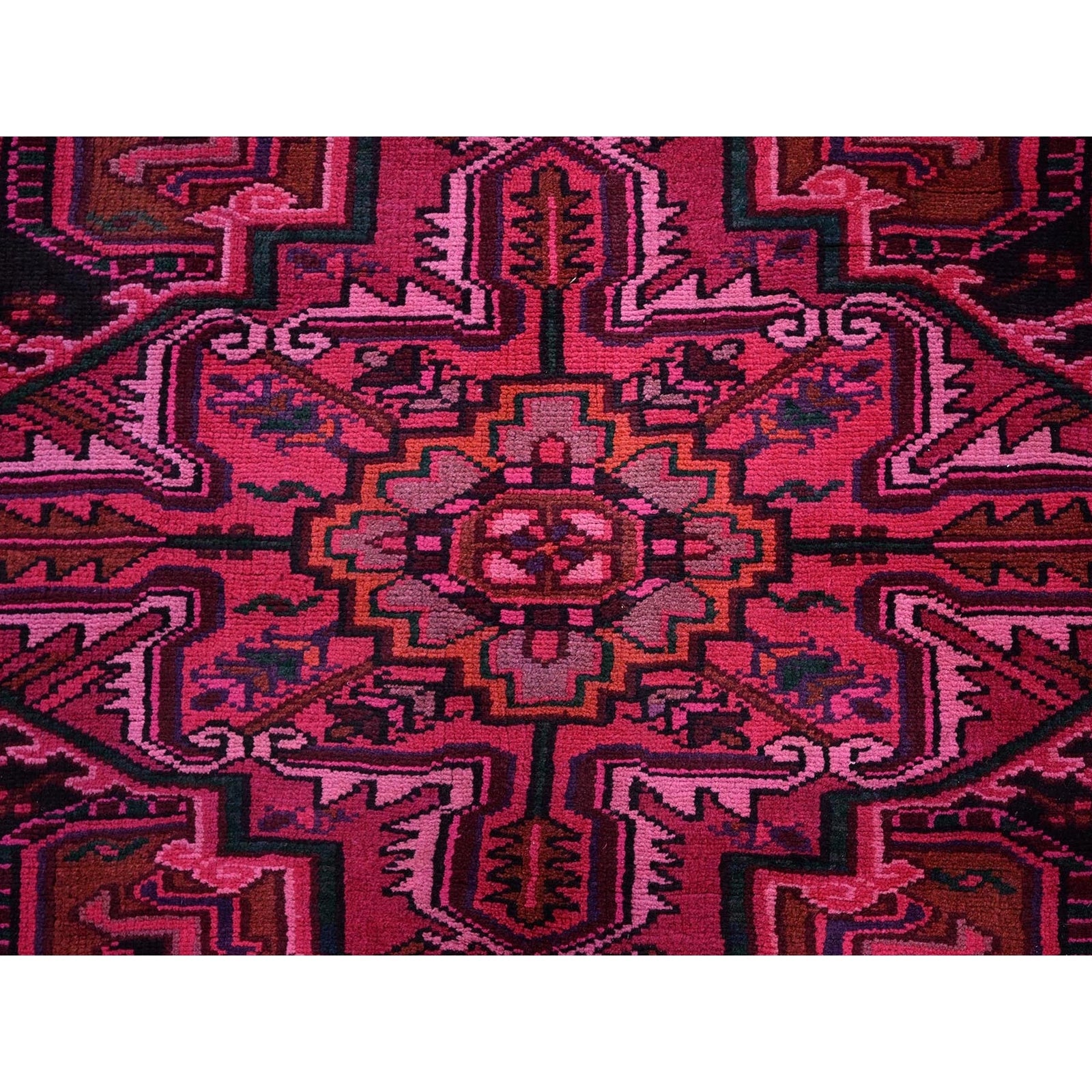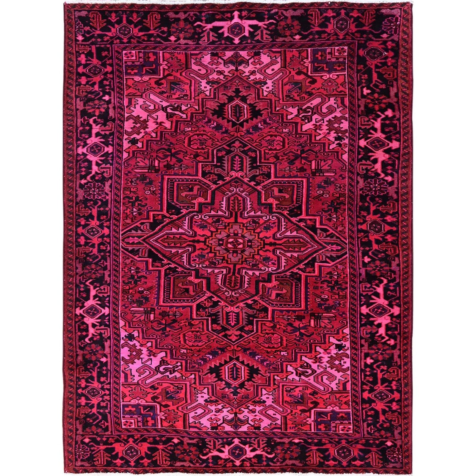 7'X9'5" Red Overdyed Semi Antique Zoroastrian Heris Hand Knotted Wool Rug