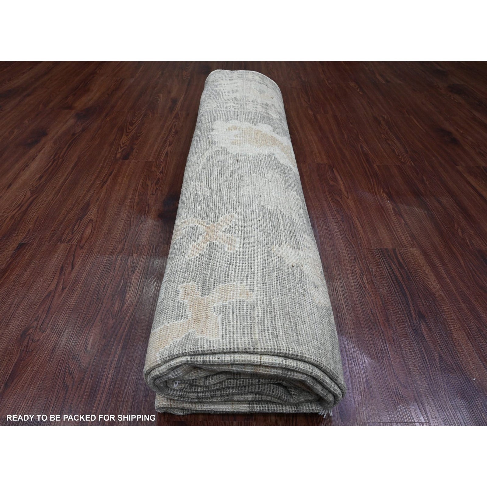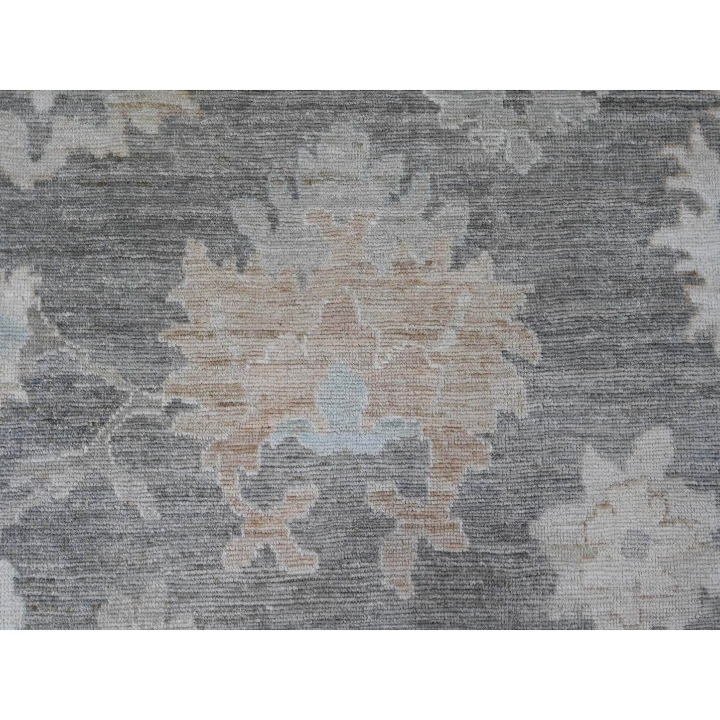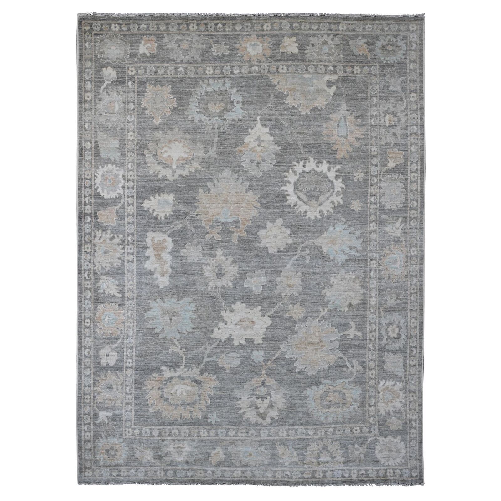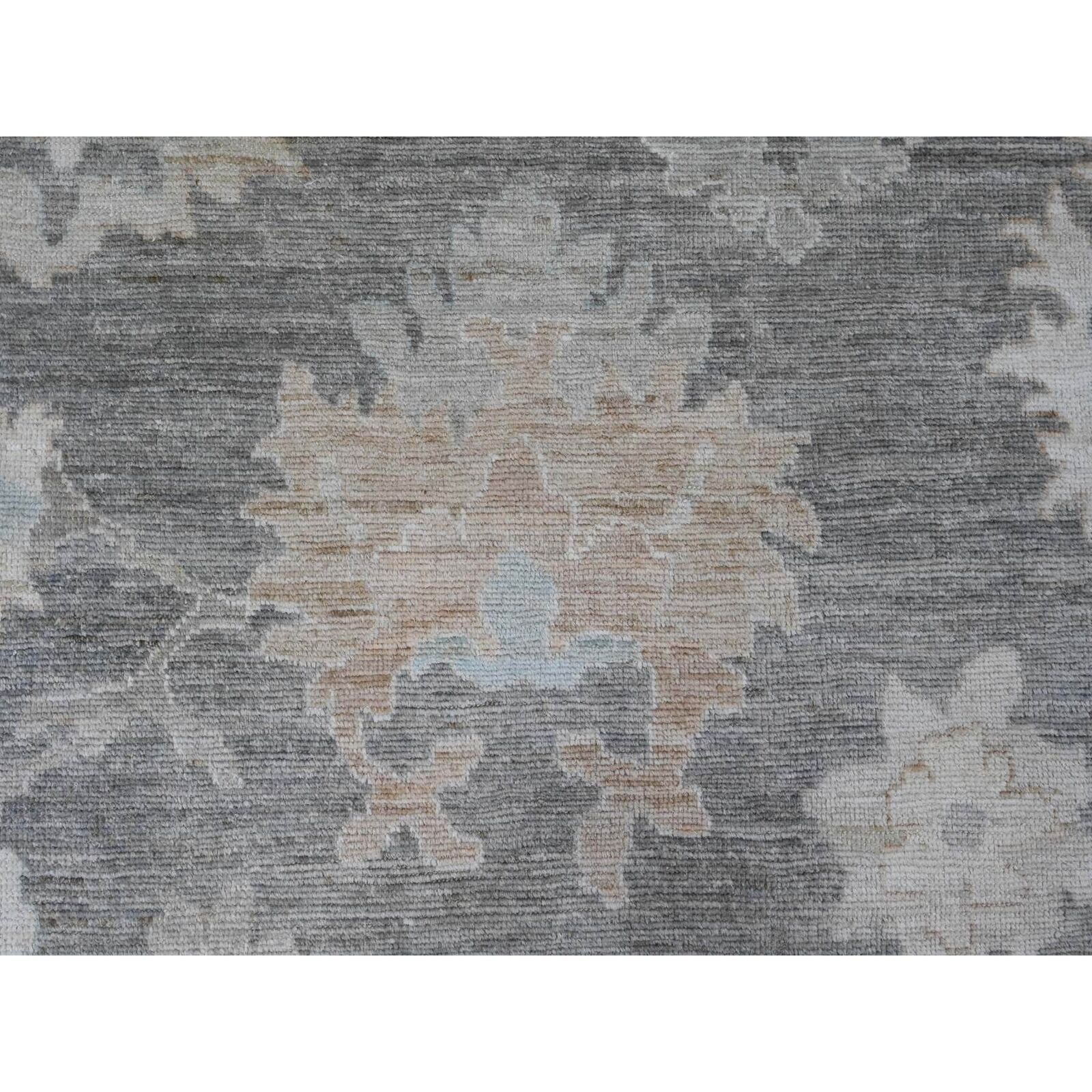 8'10"X11'10" Gray Afghan Angora Oushak Leaf Pattern Hand Knotted Wool Rug