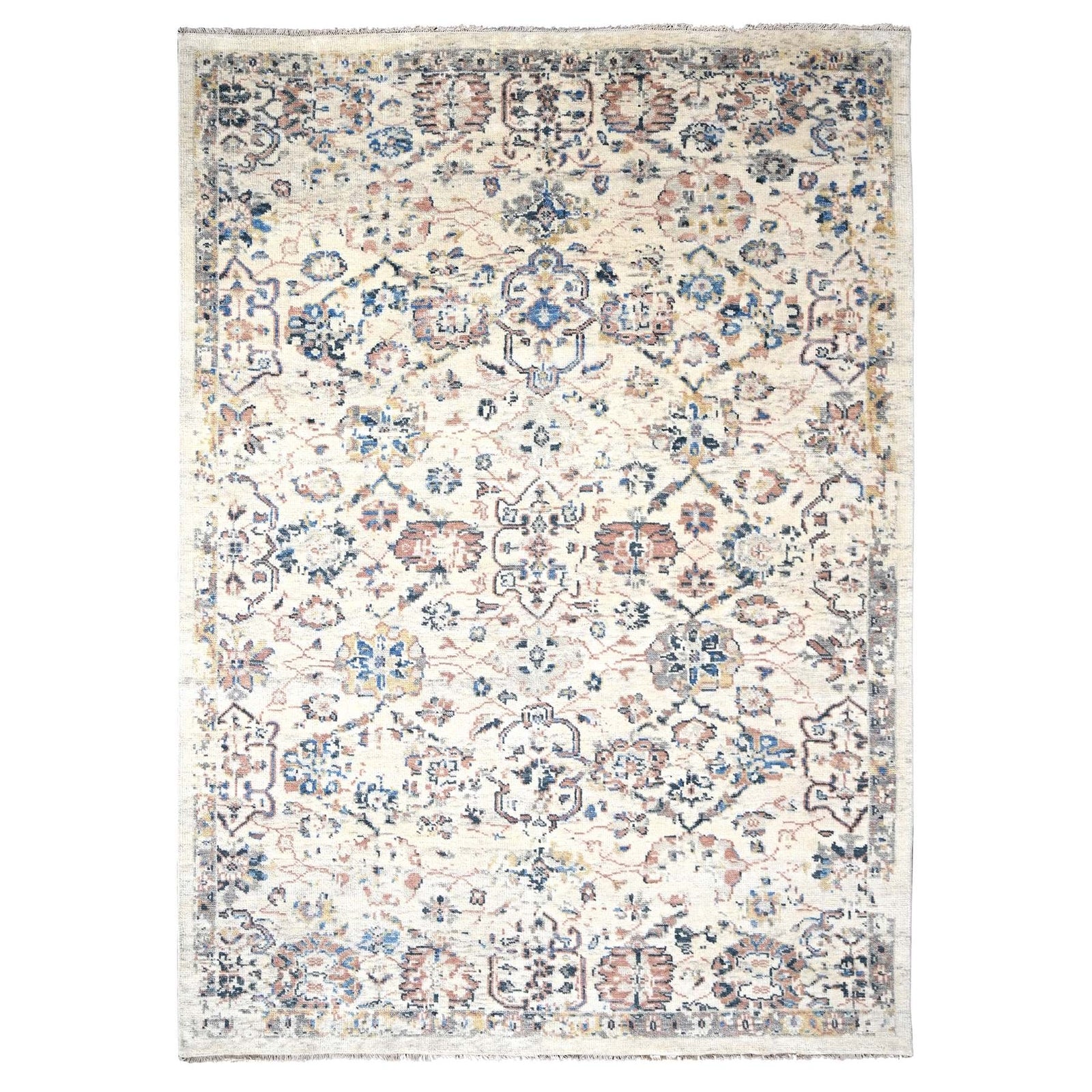 8'10"X11'10" Ivory Pure Wool Hand Knotted Mahal Design Oriental Rug
