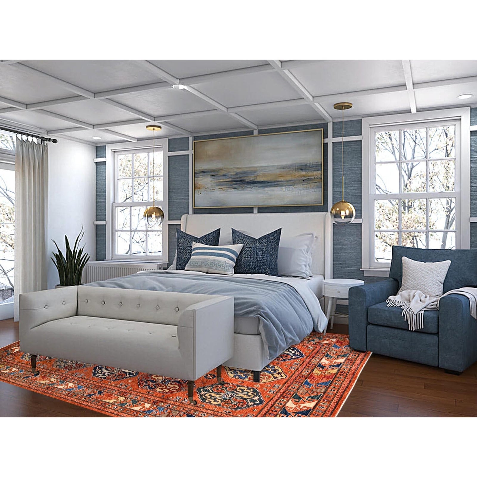 8'10"X11'10" Sun Orange Super Kazak Geometric Wool Hand Knotted Rug