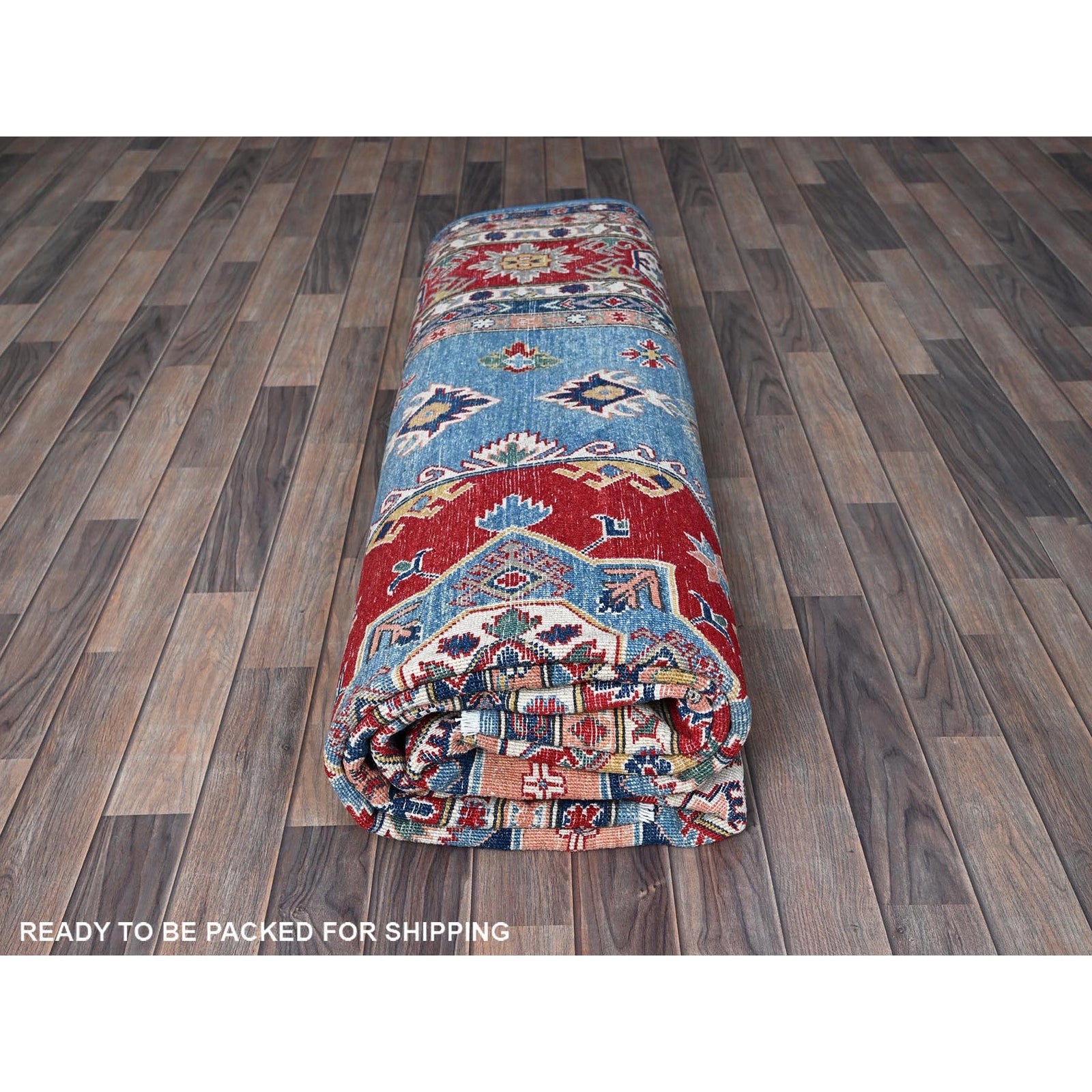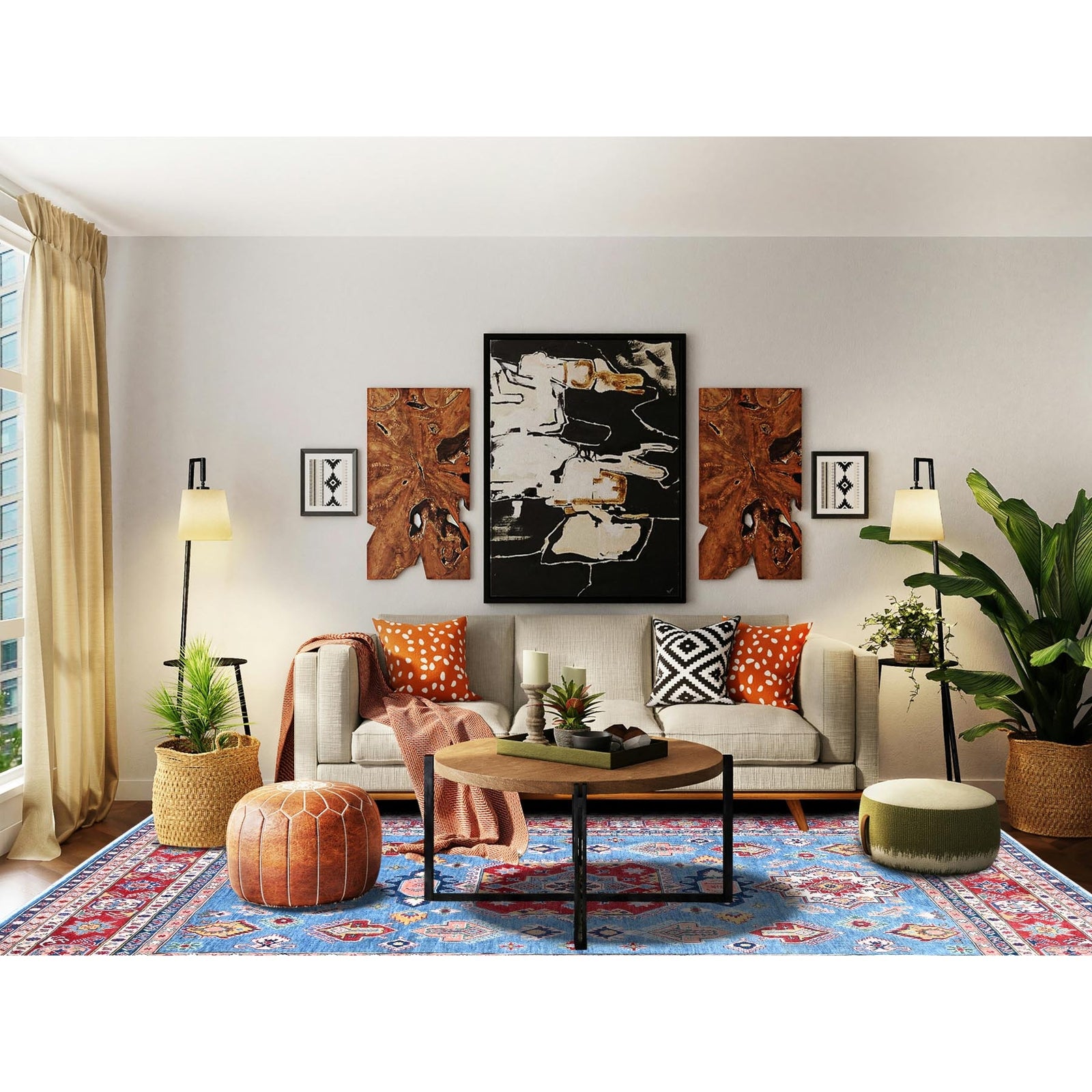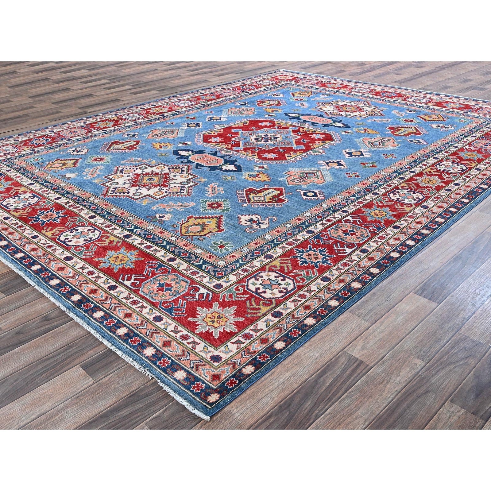 8'10"X11'8" Blue Kazak With Geometric Design Hand Knotted Soft Wool Rug