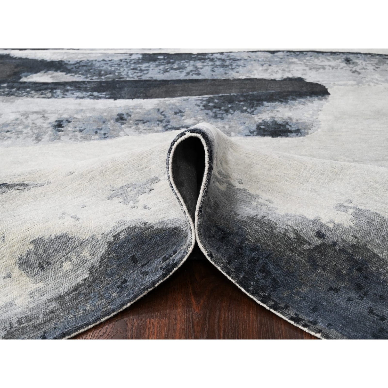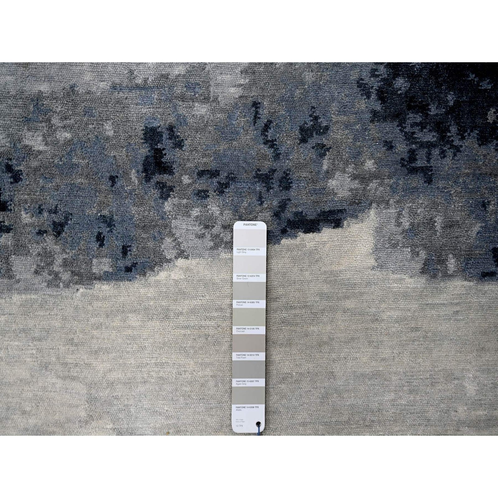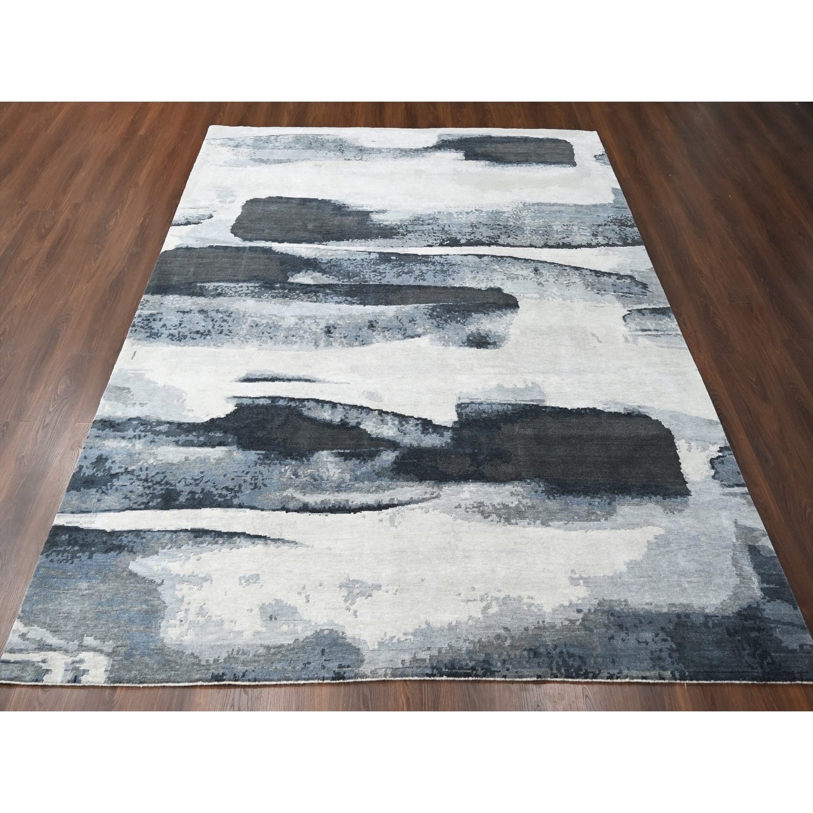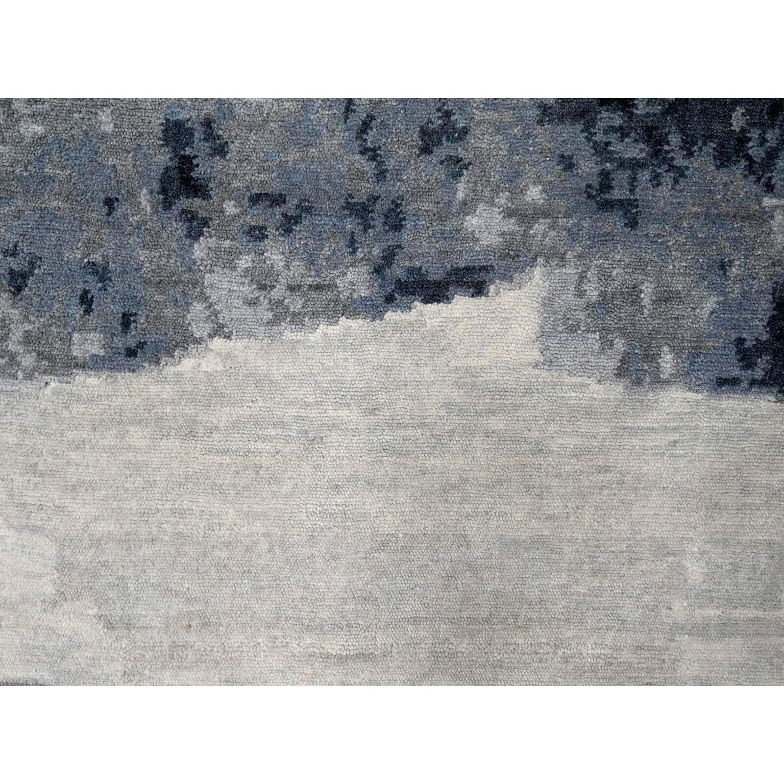 8'10"X11'9" Asphalt Black Abstract Design Organic Wool Hand Knotted Rug