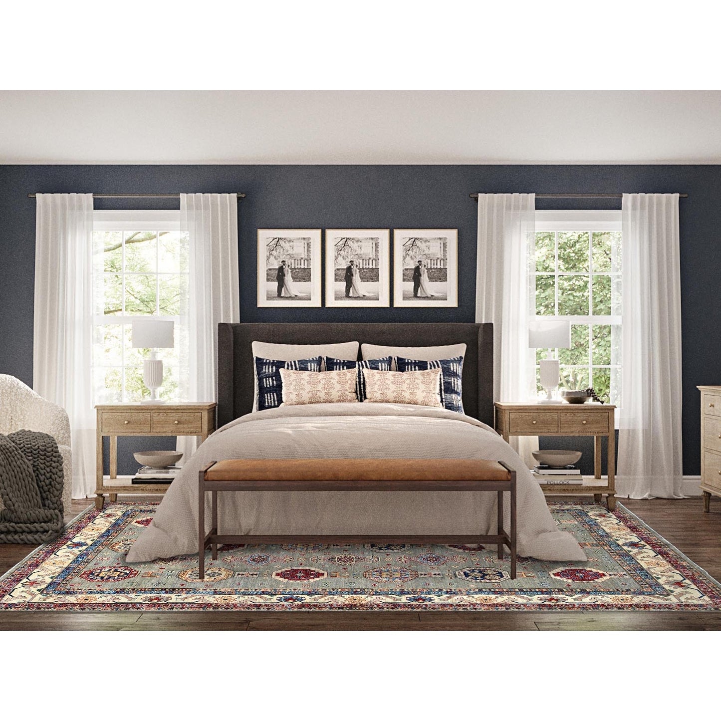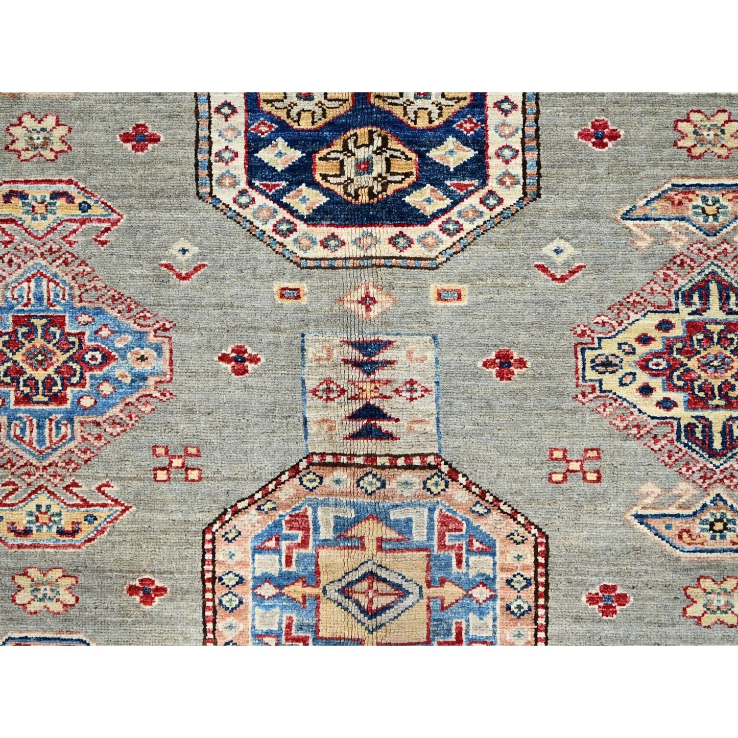 8'10"X11'9" Wrought Iron Gray Soft Pure Wool Hand Knotted Super Kazak Rug