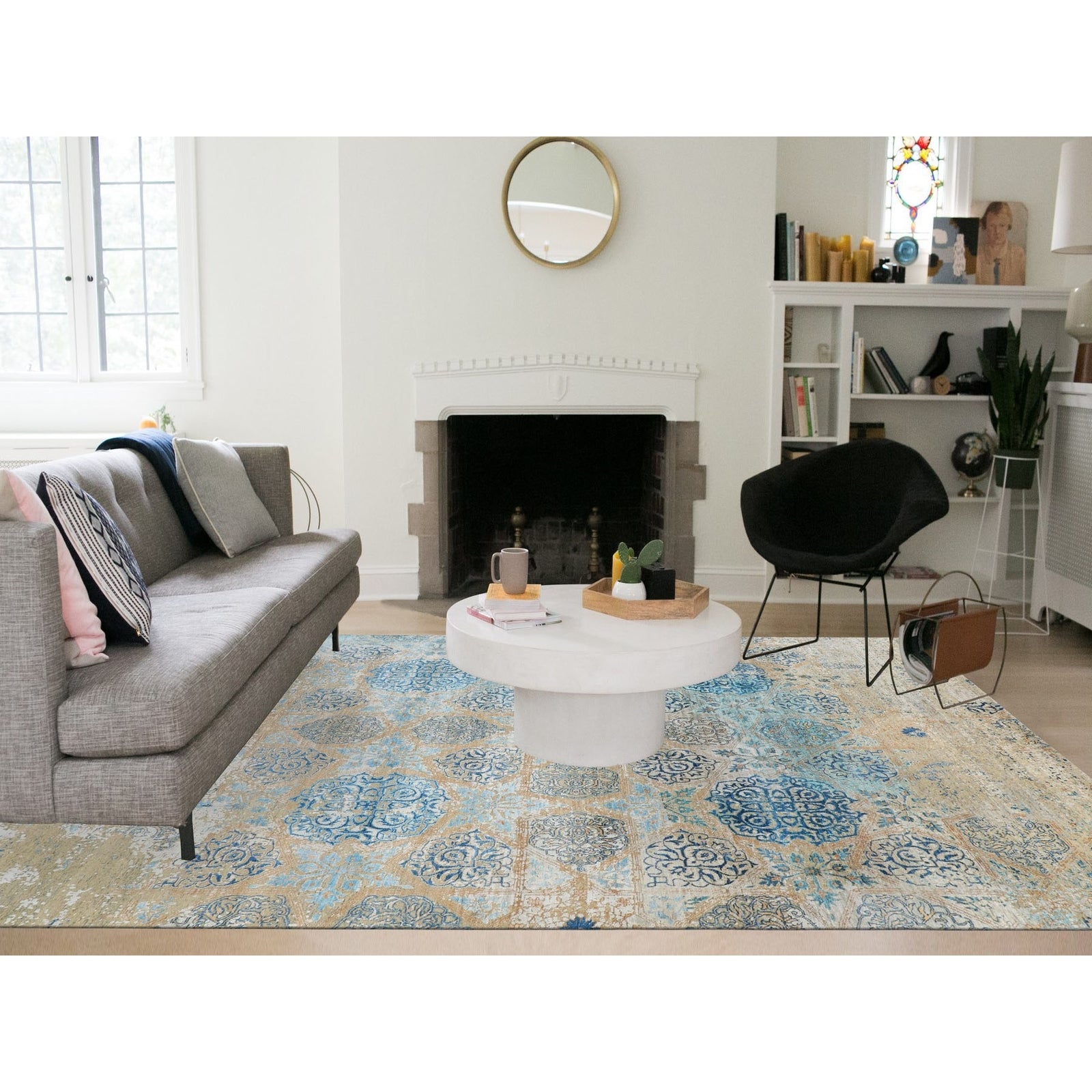 8'10"X12' Gray Snowflake Silk With Textured Wool Oriental Rug