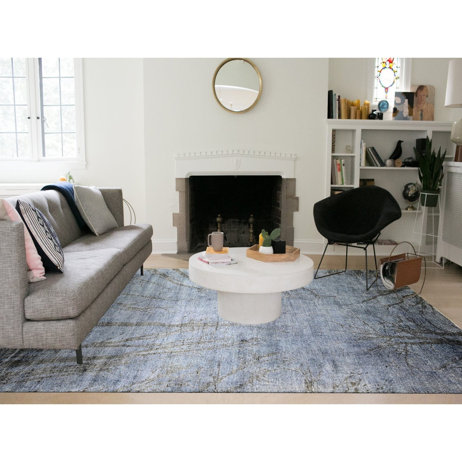8'10"X12'1" Blue Gray Modern Tree Design 100% Wool Hand Knotted Rug